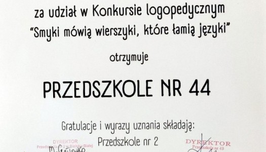 Wielkim sukcesem dla naszych przedszkolaków zakończył się konkurs - "Smyki mówią wierszyki, które łamią języki". Był on organizowany przez p...