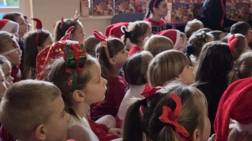Dzieci były zadowolone, roześmiane, postanowiły "zagadać" Mikołaja. W salach było dużo rozmów dotyczących przedstawienia i prezentów.