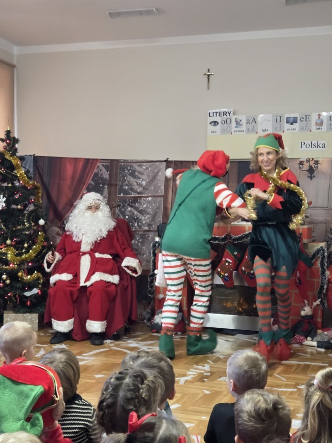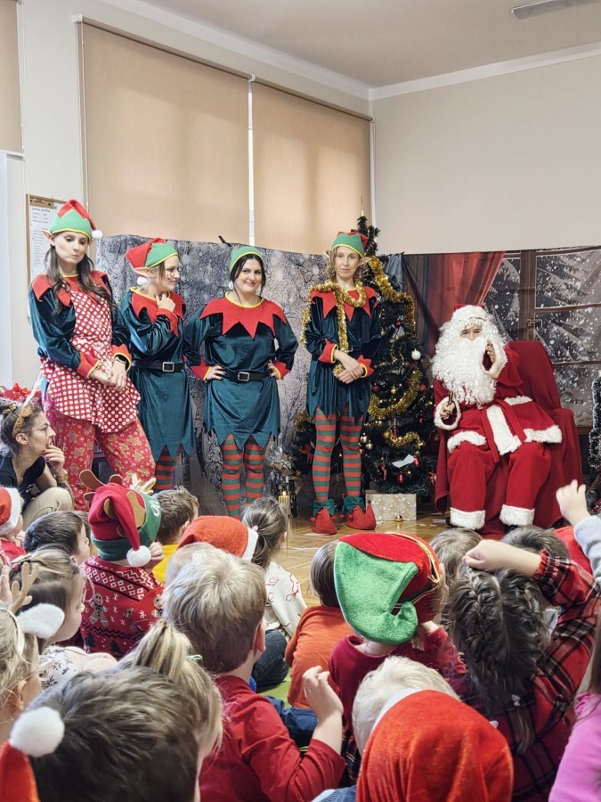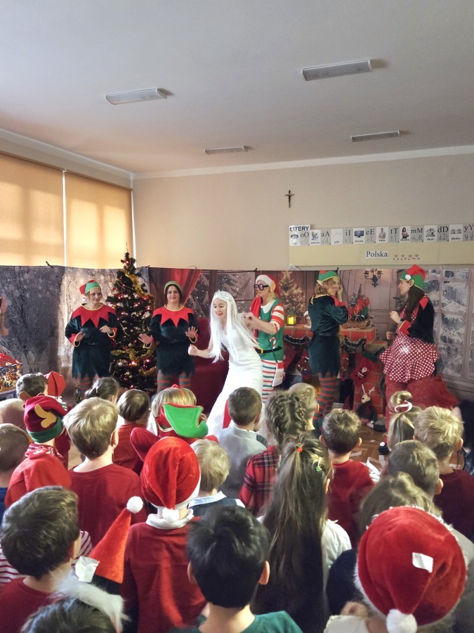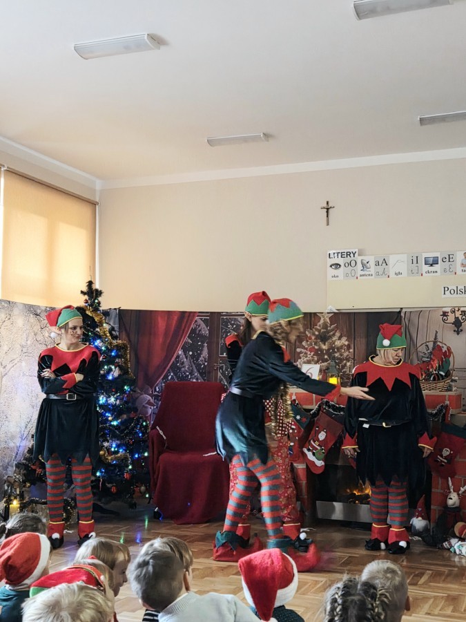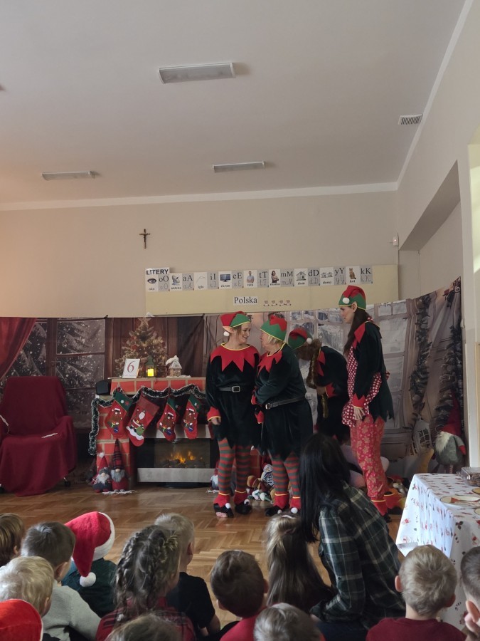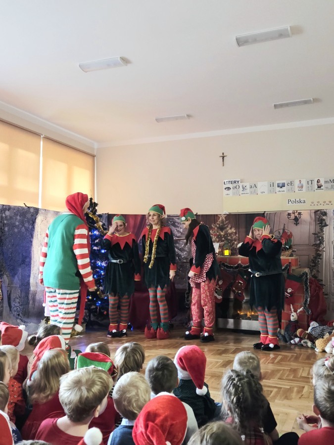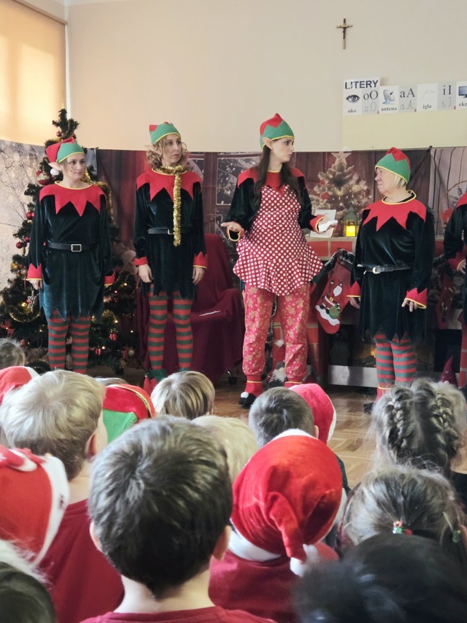 Wszystko rozpoczęło się od przedstawienia pt. Drużyna Mikołaja. Aktorami była kadra a reżyserem i pomysłodawcą pani Monika z Lisków. Po telefonie wykonanym do Mikołaja przez elfa Ambrożego, czyli panią Magdę z grupy Biedronek, przyjechał do nas PRAWDZIWY MIKOŁAJ.