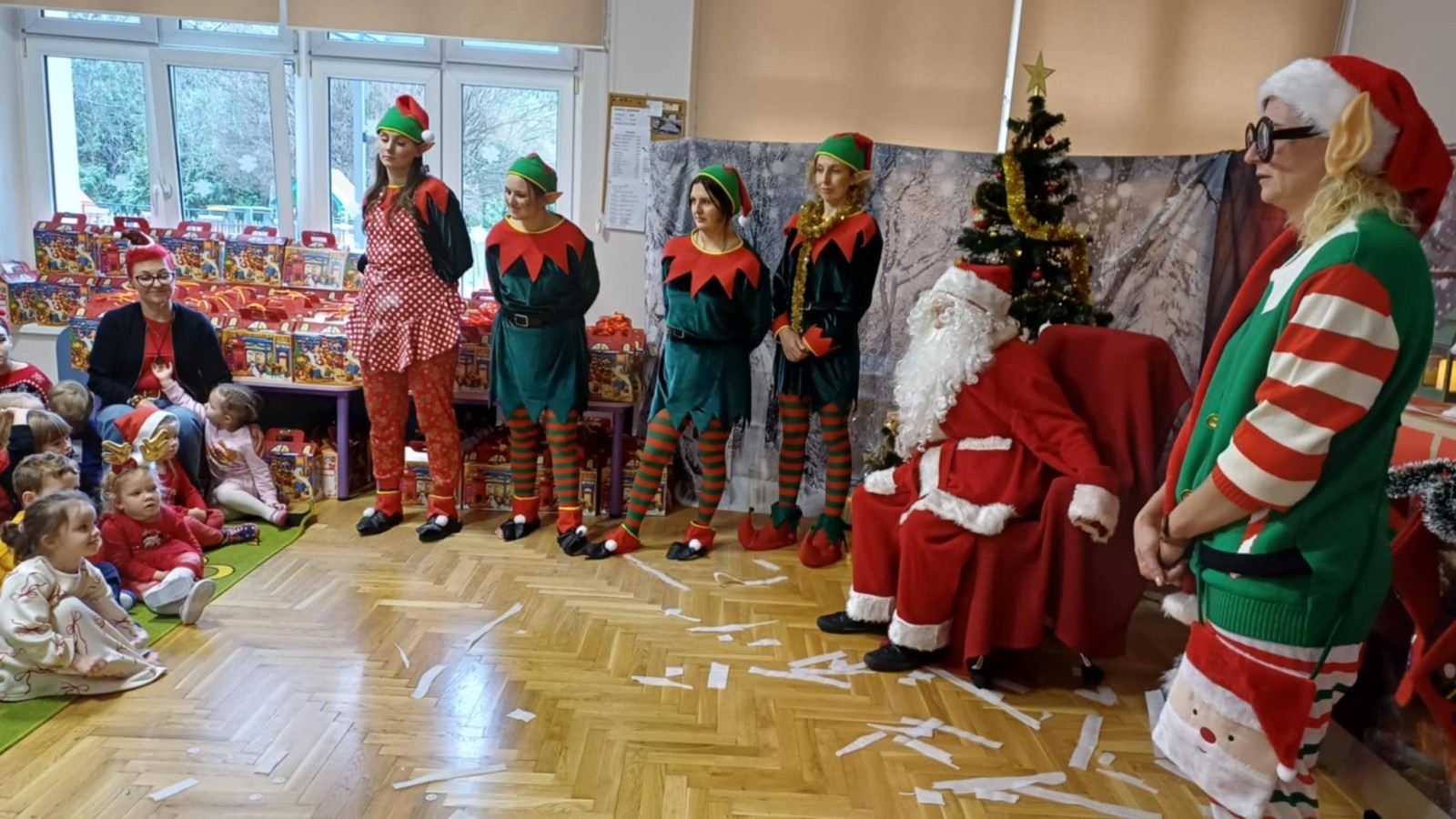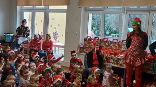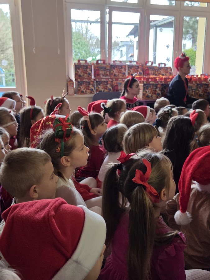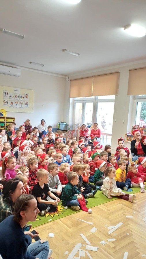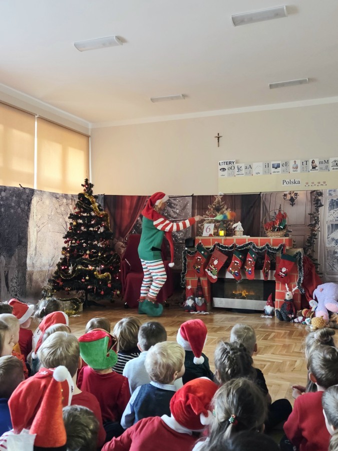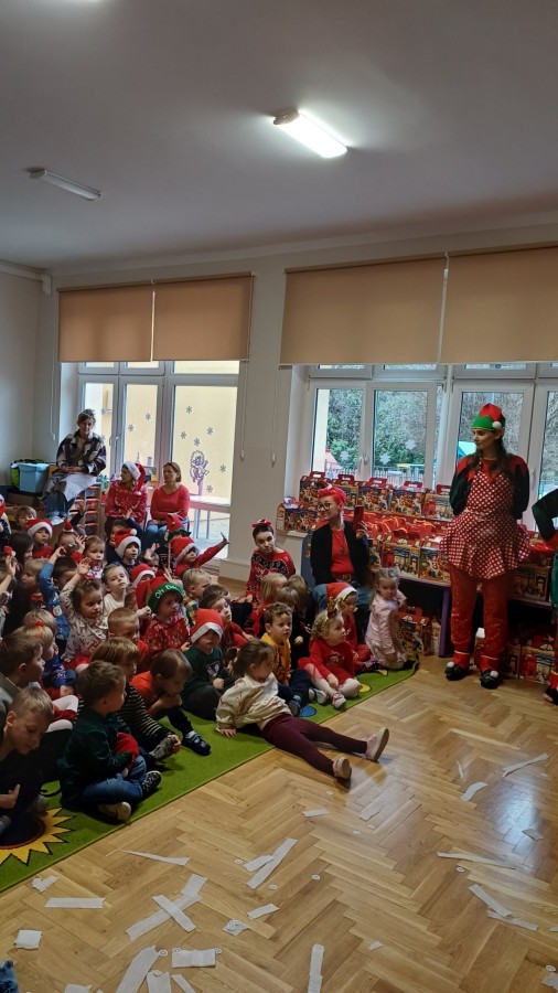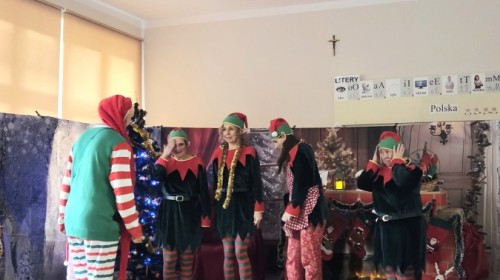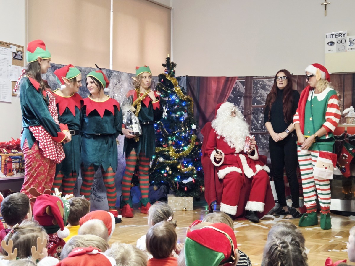 Wszystko rozpoczęło się od przedstawienia pt. Drużyna Mikołaja. Aktorami była kadra a reżyserem i pomysłodawcą pani Monika z Lisków. Po telefonie wykonanym do Mikołaja przez elfa Ambrożego, czyli panią Magdę z grupy Biedronek, przyjechał do nas PRAWDZIWY MIKOŁAJ.
