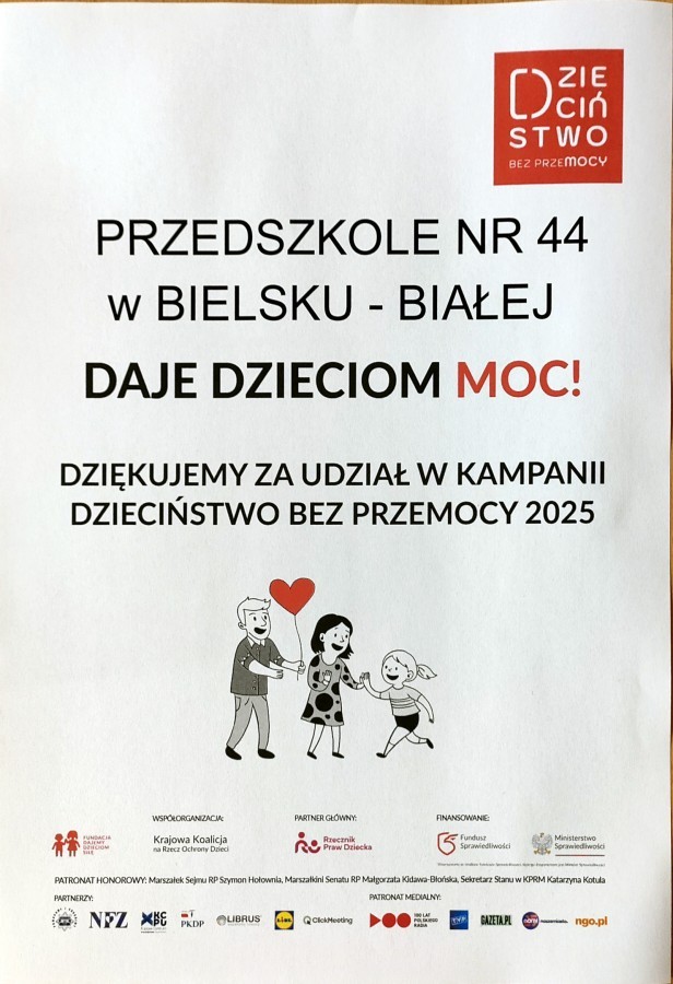 DZIECIŃSTWO BEZ PRZEMOCY - PODZIĘKOWANIA