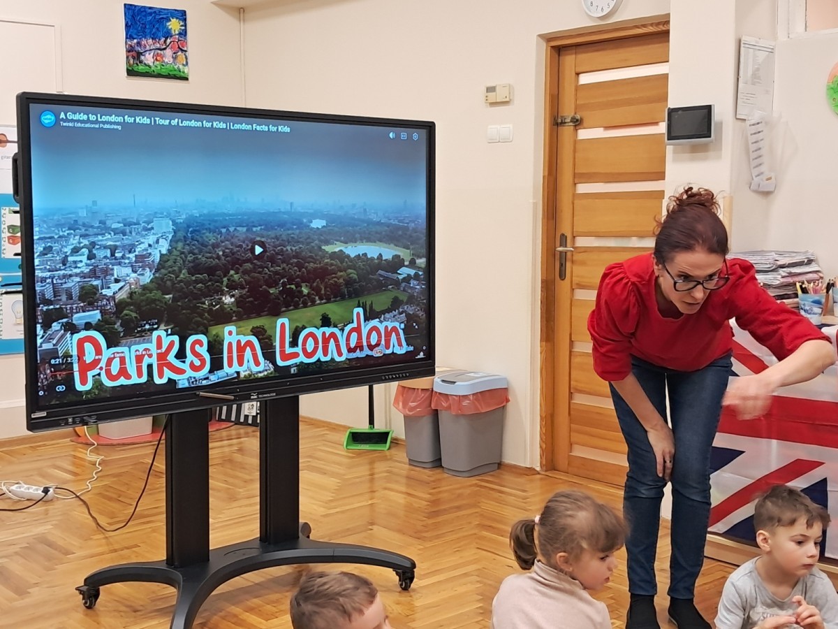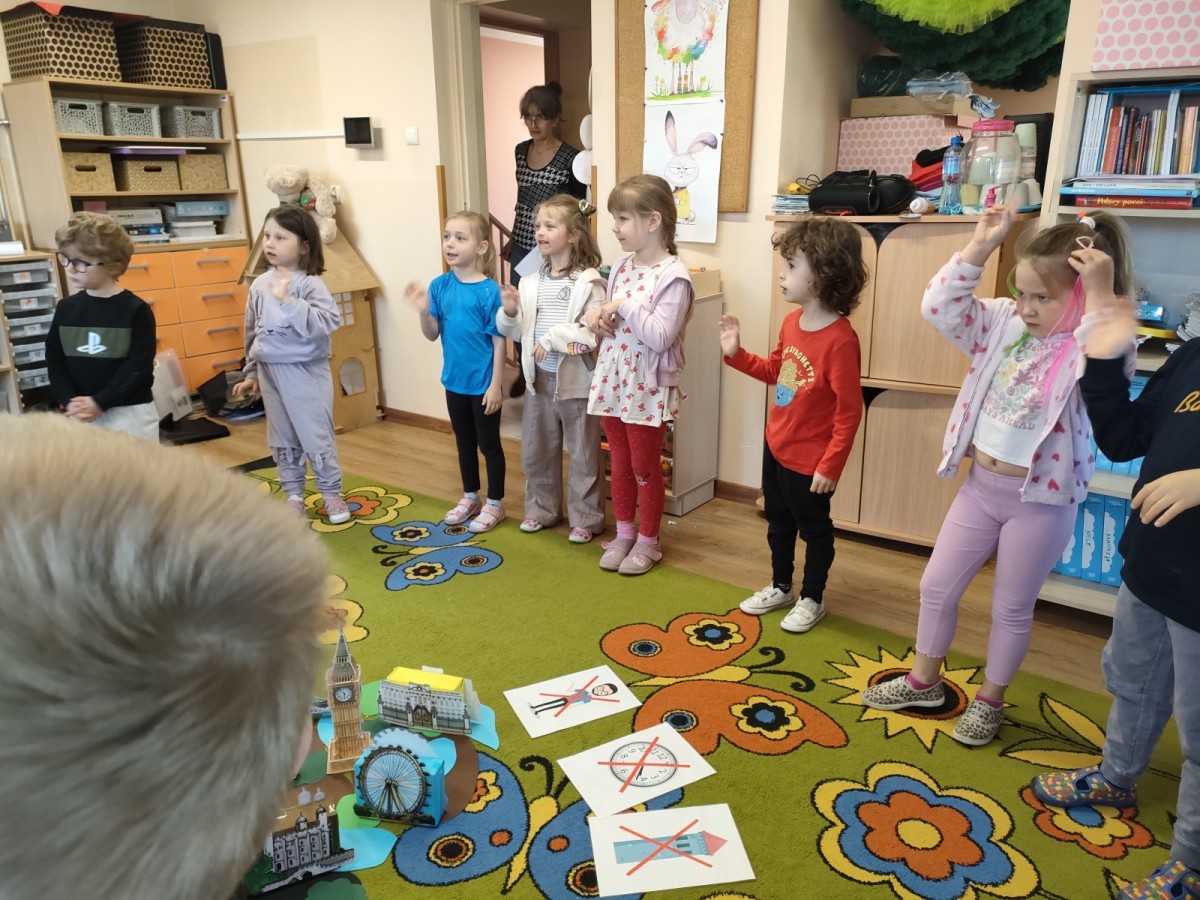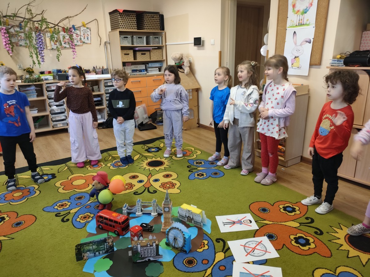 Dodatkowo starsze przedszkolaki miały okazję oglądać krótki film o londyńskim atrakcjach i wykonały zadania z nimi związane.