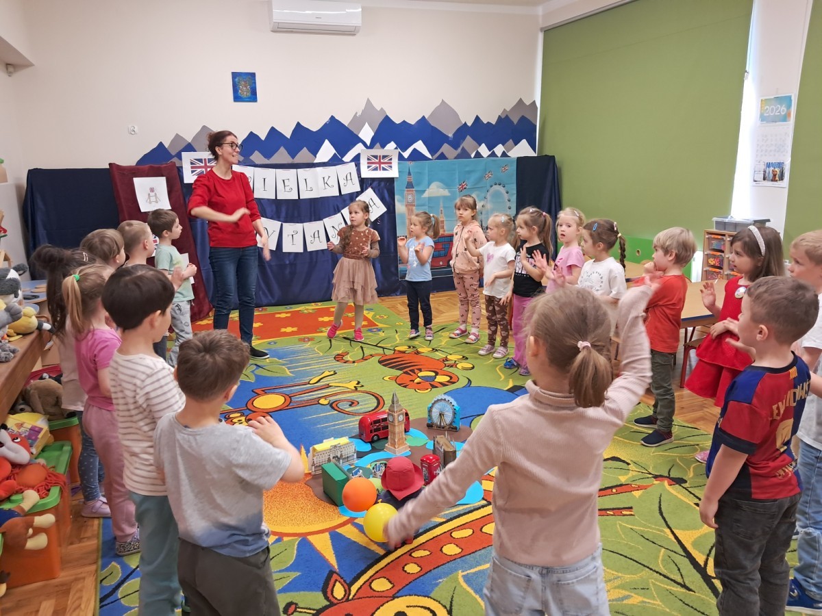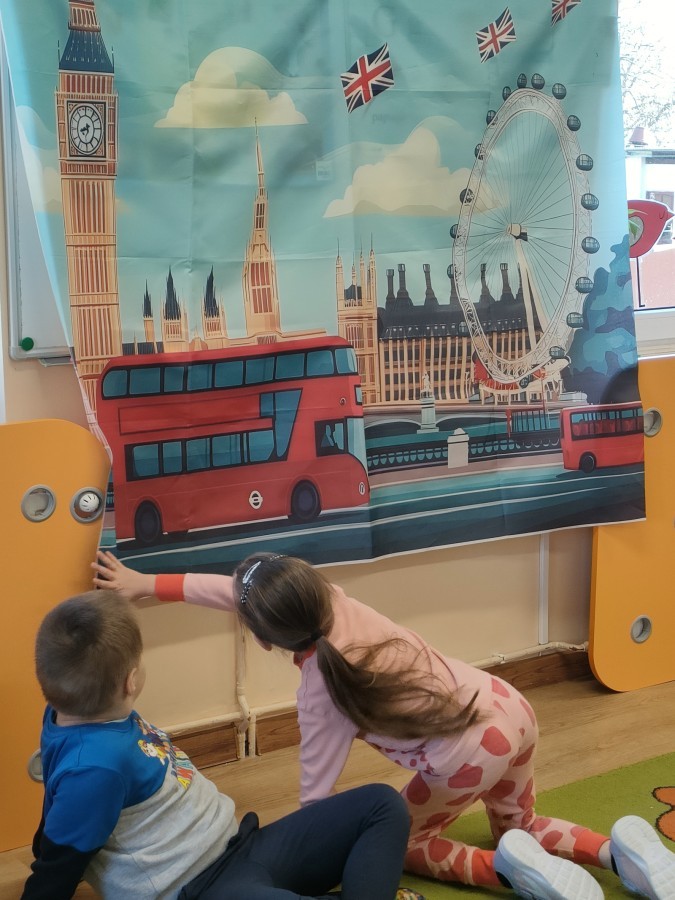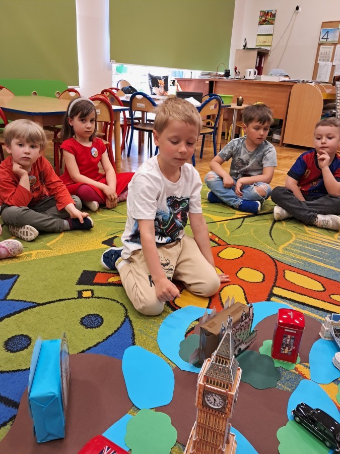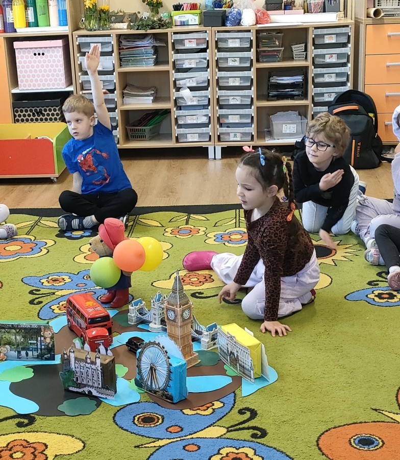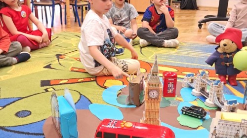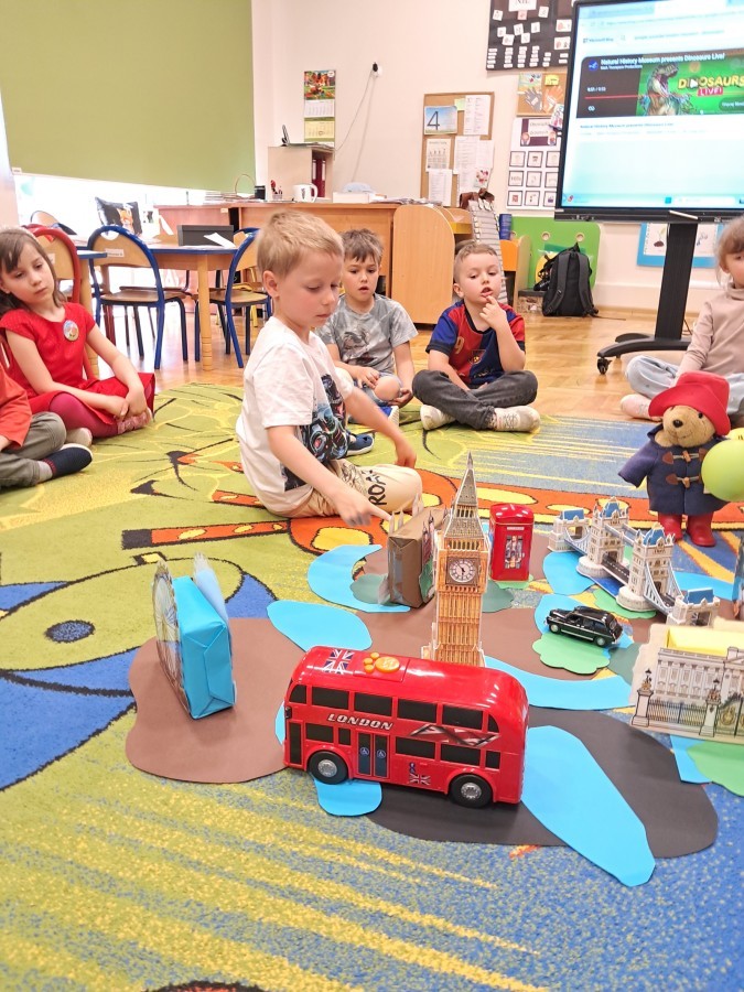 Dodatkowo starsze przedszkolaki miały okazję oglądać krótki film o londyńskim atrakcjach i wykonały zadania z nimi związane.