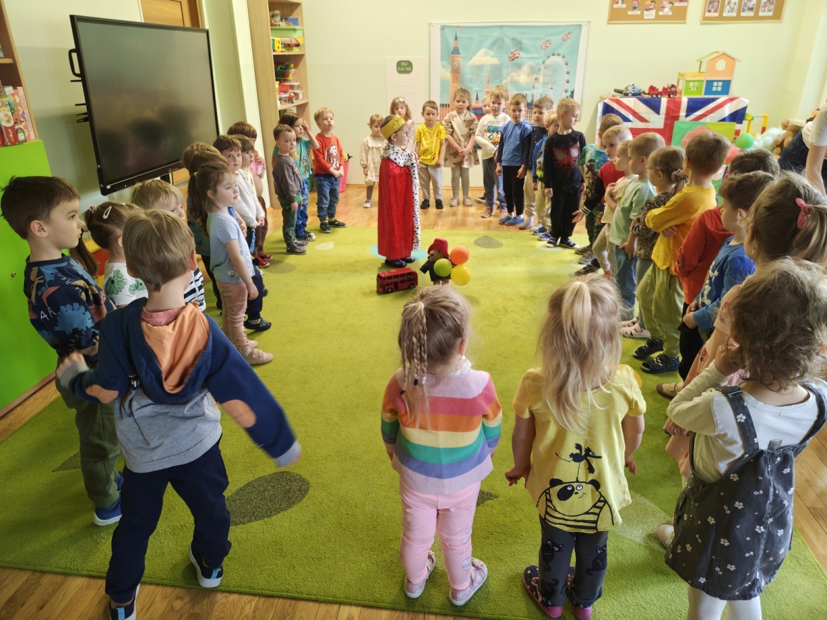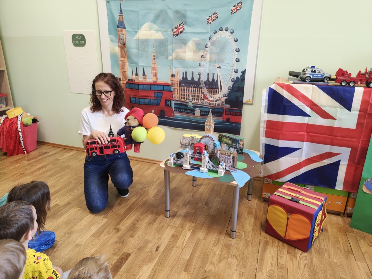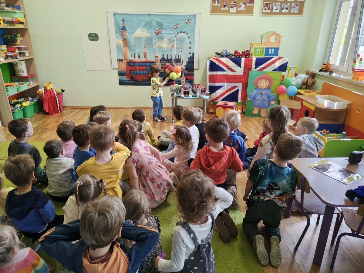 W naszym przedszkolu w dniu 24 kwietnia odbył się Dzień Języka Angielskiego, który dostarczył dzieciom wielu wrażeń. Podczas zajęć maluchy wcielały się w postać króla, rozwijając swoją wyobraźnię i wydając rozkazy w języku angielskim. Poznały historię misia Paddingtona i jego przygody w Londynie, co było świetną okazją do nauki nowych słów. Dzieci rozmawiały z Paddingtonem o emocjach oraz wyrażały je w języku angielskim. W trakcie zabawy szukały ukrytego misia na planszach i odśpiewały piosenkę ‘Wheels on the bus’.