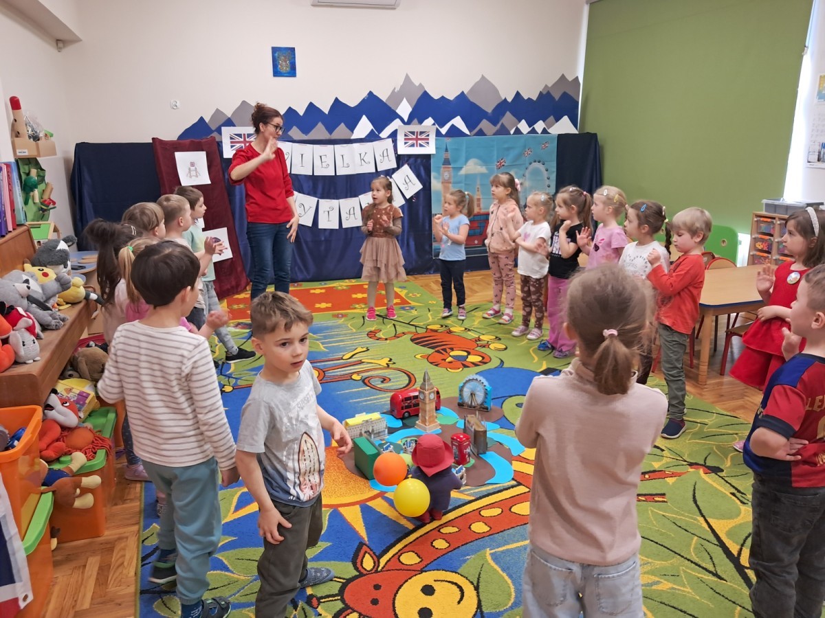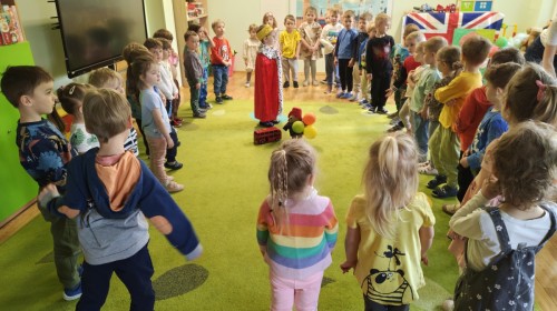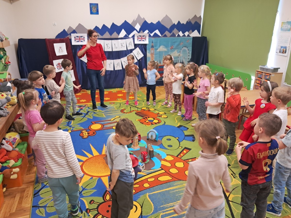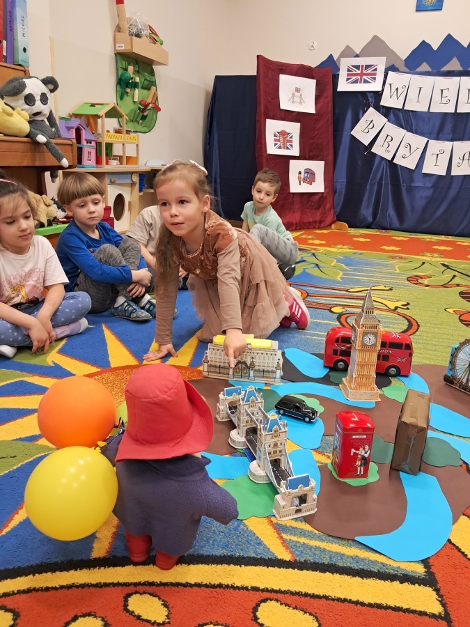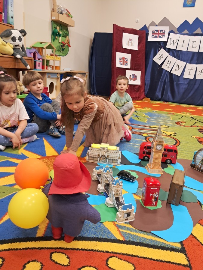 W naszym przedszkolu w dniu 24 kwietnia odbył się Dzień Języka Angielskiego, który dostarczył dzieciom wielu wrażeń. Podczas zajęć maluchy wcielały się w postać króla, rozwijając swoją wyobraźnię i wydając rozkazy w języku angielskim. Poznały historię misia Paddingtona i jego przygody w Londynie, co było świetną okazją do nauki nowych słów. Dzieci rozmawiały z Paddingtonem o emocjach oraz wyrażały je w języku angielskim. W trakcie zabawy szukały ukrytego misia na planszach i odśpiewały piosenkę ‘Wheels on the bus’.