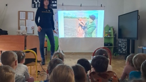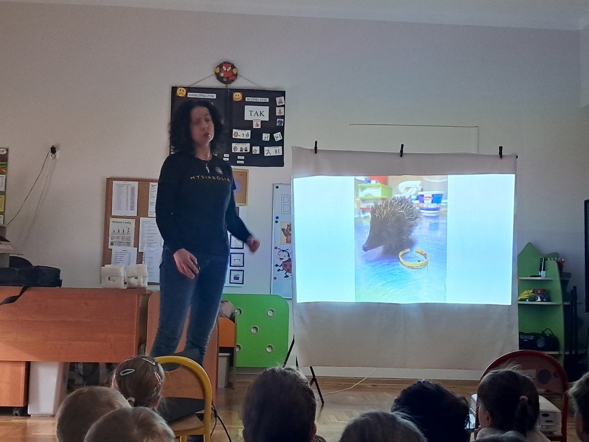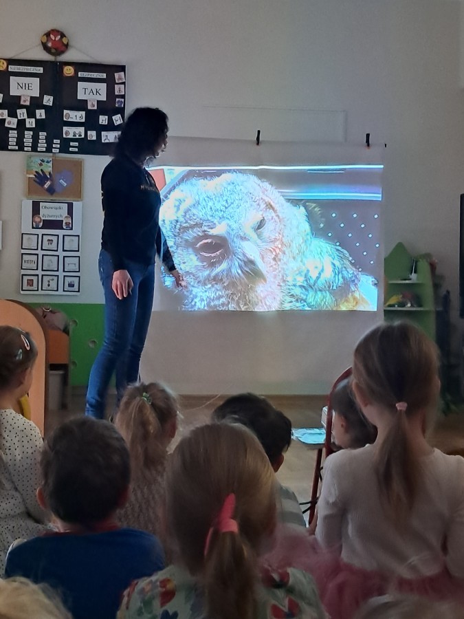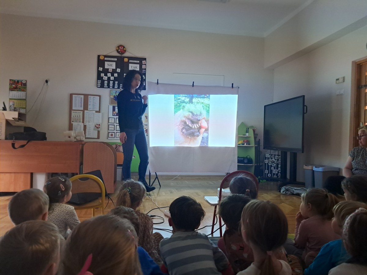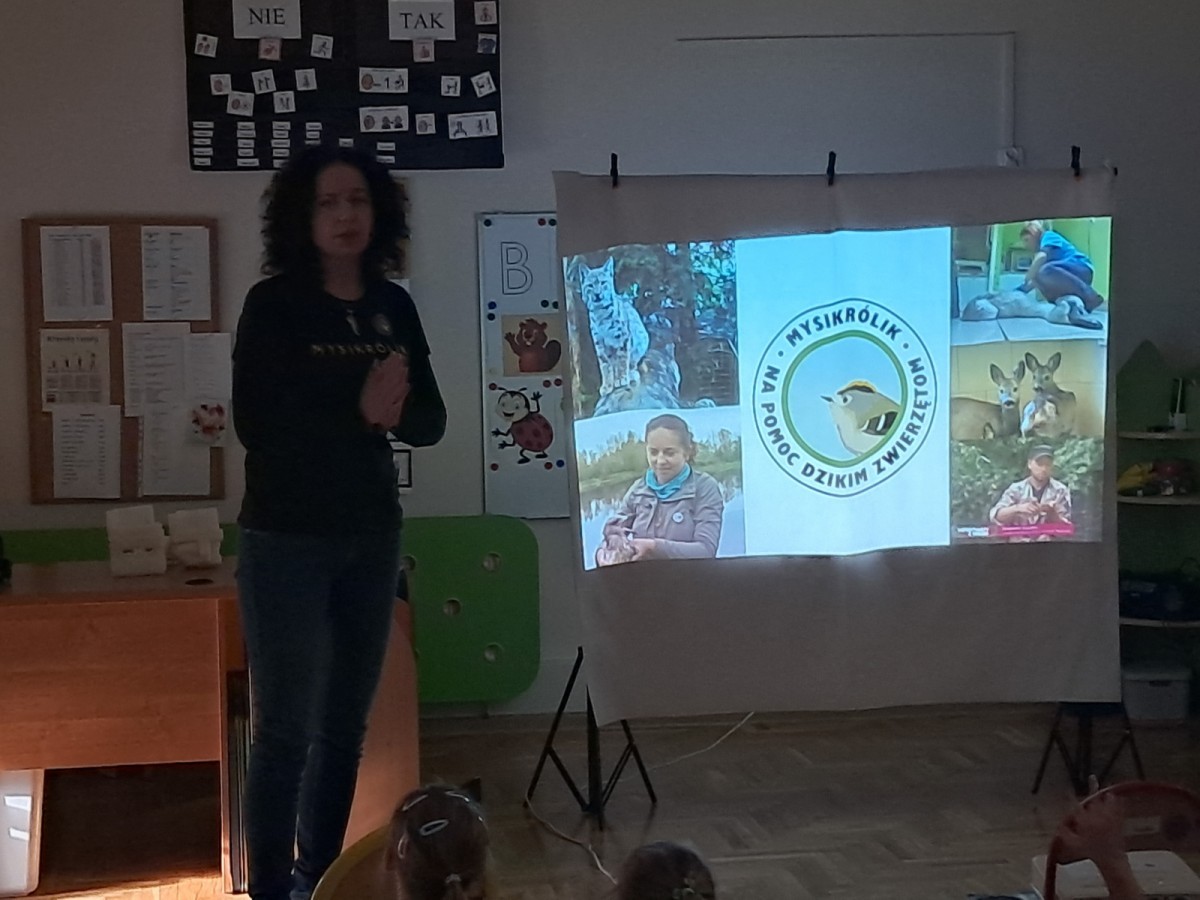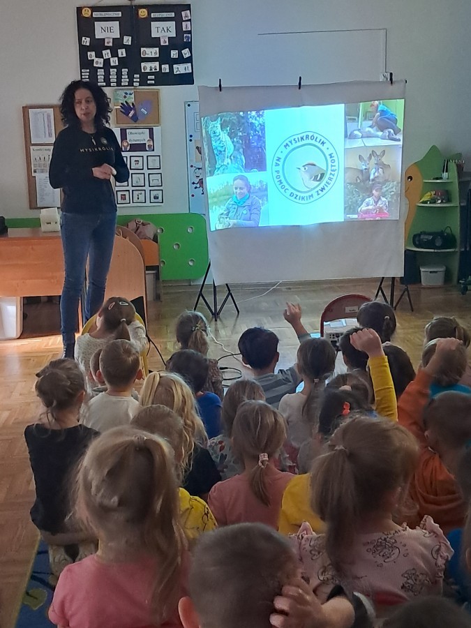 W naszym przedszkolu dla najstarszych grup odbyła się prelekcja Pani Agnieszki Łyczko, współzałożycielki Ośrodka Rehabilitacji Dzikich Zwierząt ,,Mysikrólik". Pani Agnieszka, z ogromną pasją, opowiadała nam o swoim ośrodku, który prowadzi wraz z mężem na terenie naszego miasta. Ośrodek zapewnia pomoc potrzebującym zwierzętom, a następnie przywraca je do naturalnego środowiska. W szpitaliku hospitalizowane są dzikie zwierzęta- małe i duże, o których mogliśmy się dowiedzieć podczas prelekcji. Serdecznie dziękujemy Pani Agnieszce za wspaniałe zajęcia, które dostarczyły nam ogromnej wiedzy przyrodniczej, a także uwrażliwiły nas na potrzeby dzikich zwierząt.