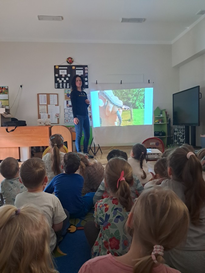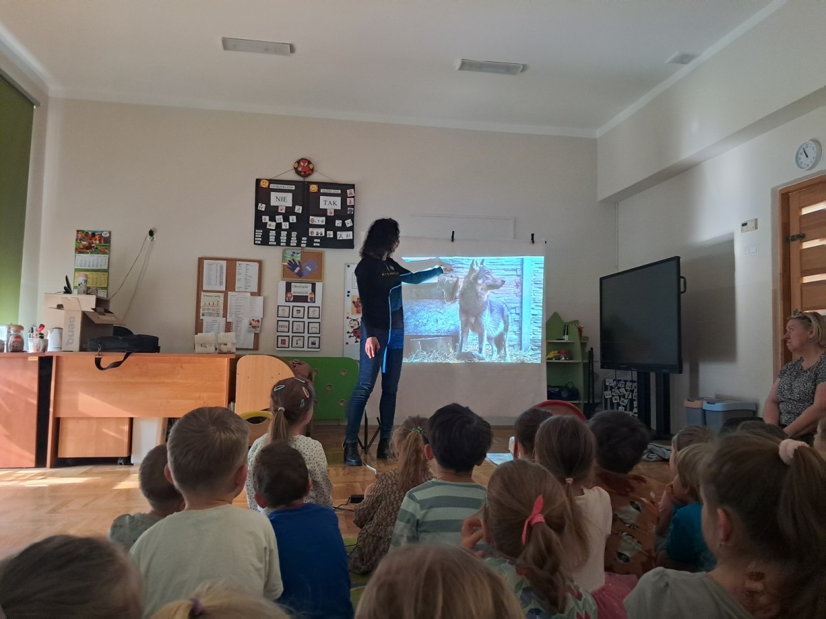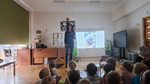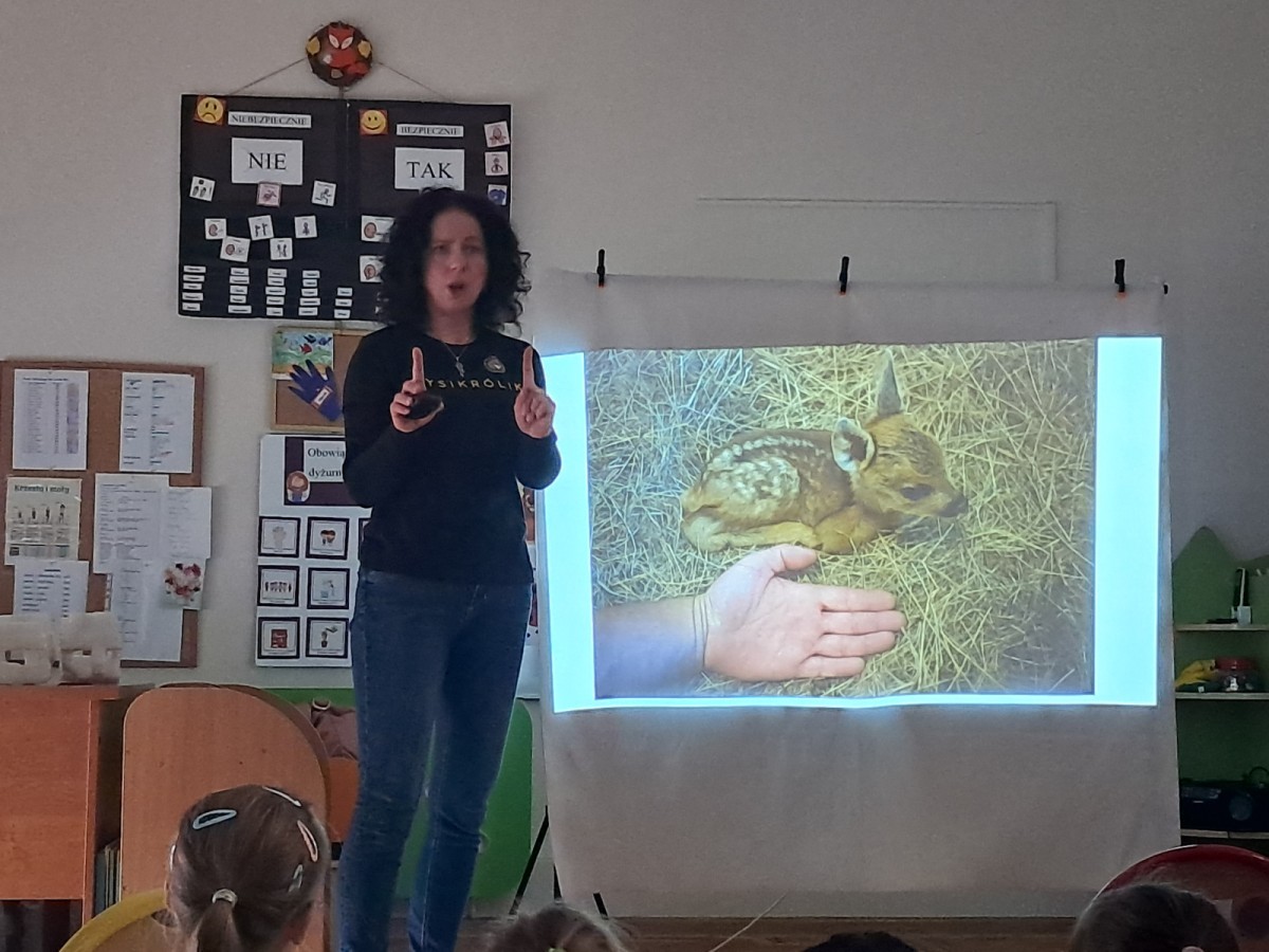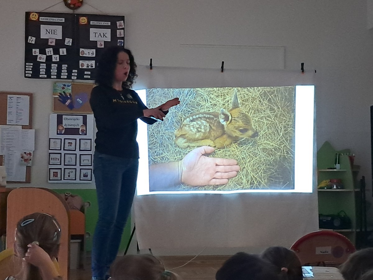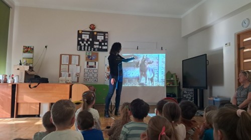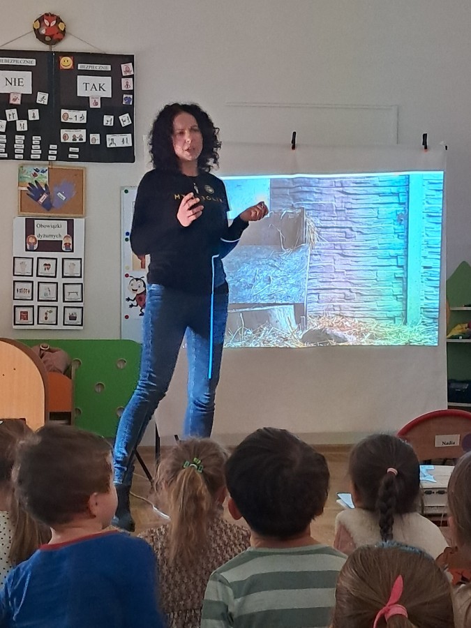 W naszym przedszkolu dla najstarszych grup odbyła się prelekcja Pani Agnieszki Łyczko, współzałożycielki Ośrodka Rehabilitacji Dzikich Zwierząt ,,Mysikrólik". Pani Agnieszka, z ogromną pasją, opowiadała nam o swoim ośrodku, który prowadzi wraz z mężem na terenie naszego miasta. Ośrodek zapewnia pomoc potrzebującym zwierzętom, a następnie przywraca je do naturalnego środowiska. W szpitaliku hospitalizowane są dzikie zwierzęta- małe i duże, o których mogliśmy się dowiedzieć podczas prelekcji. Serdecznie dziękujemy Pani Agnieszce za wspaniałe zajęcia, które dostarczyły nam ogromnej wiedzy przyrodniczej, a także uwrażliwiły nas na potrzeby dzikich zwierząt.