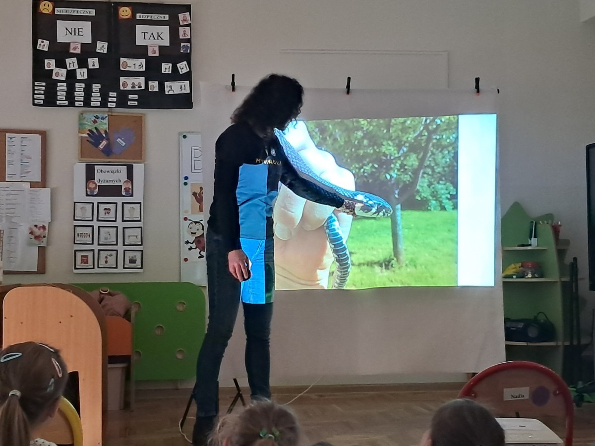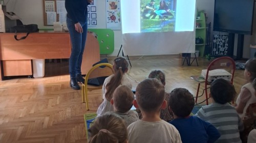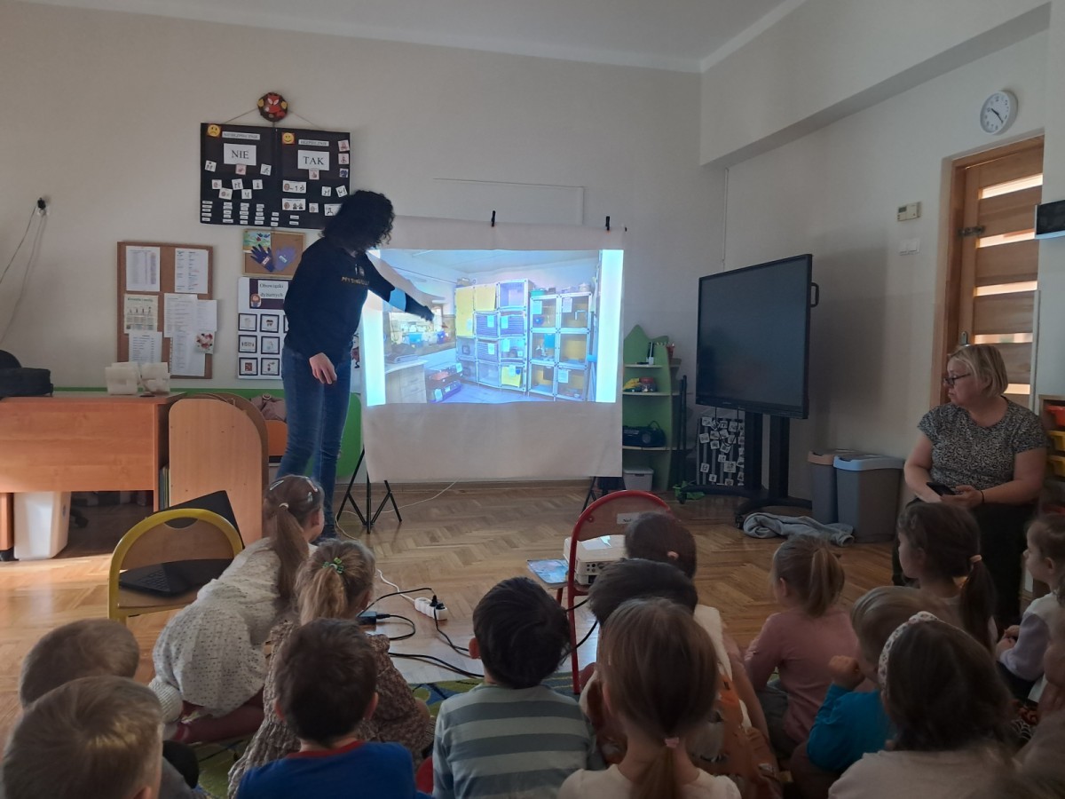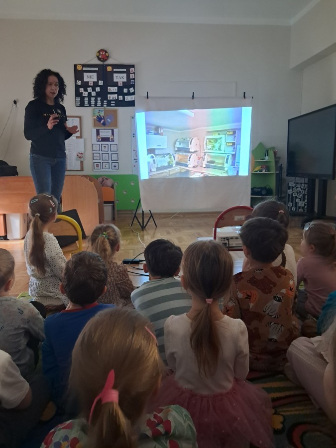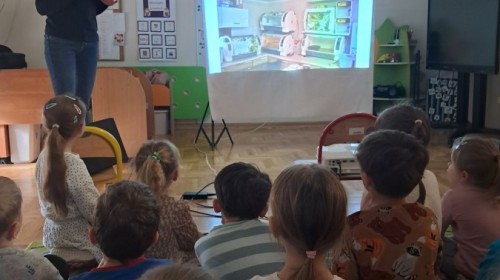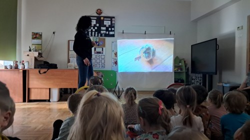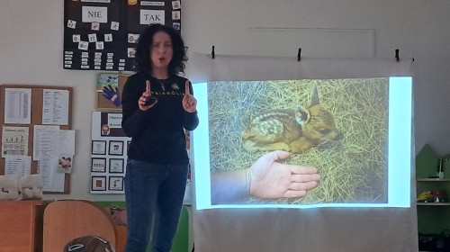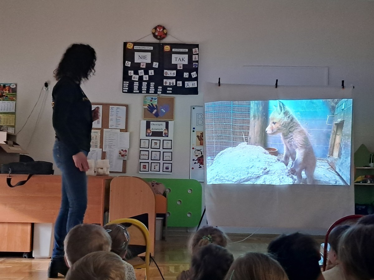 W naszym przedszkolu dla najstarszych grup odbyła się prelekcja Pani Agnieszki Łyczko, współzałożycielki Ośrodka Rehabilitacji Dzikich Zwierząt ,,Mysikrólik". Pani Agnieszka, z ogromną pasją, opowiadała nam o swoim ośrodku, który prowadzi wraz z mężem na terenie naszego miasta. Ośrodek zapewnia pomoc potrzebującym zwierzętom, a następnie przywraca je do naturalnego środowiska. W szpitaliku hospitalizowane są dzikie zwierzęta- małe i duże, o których mogliśmy się dowiedzieć podczas prelekcji. Serdecznie dziękujemy Pani Agnieszce za wspaniałe zajęcia, które dostarczyły nam ogromnej wiedzy przyrodniczej, a także uwrażliwiły nas na potrzeby dzikich zwierząt.