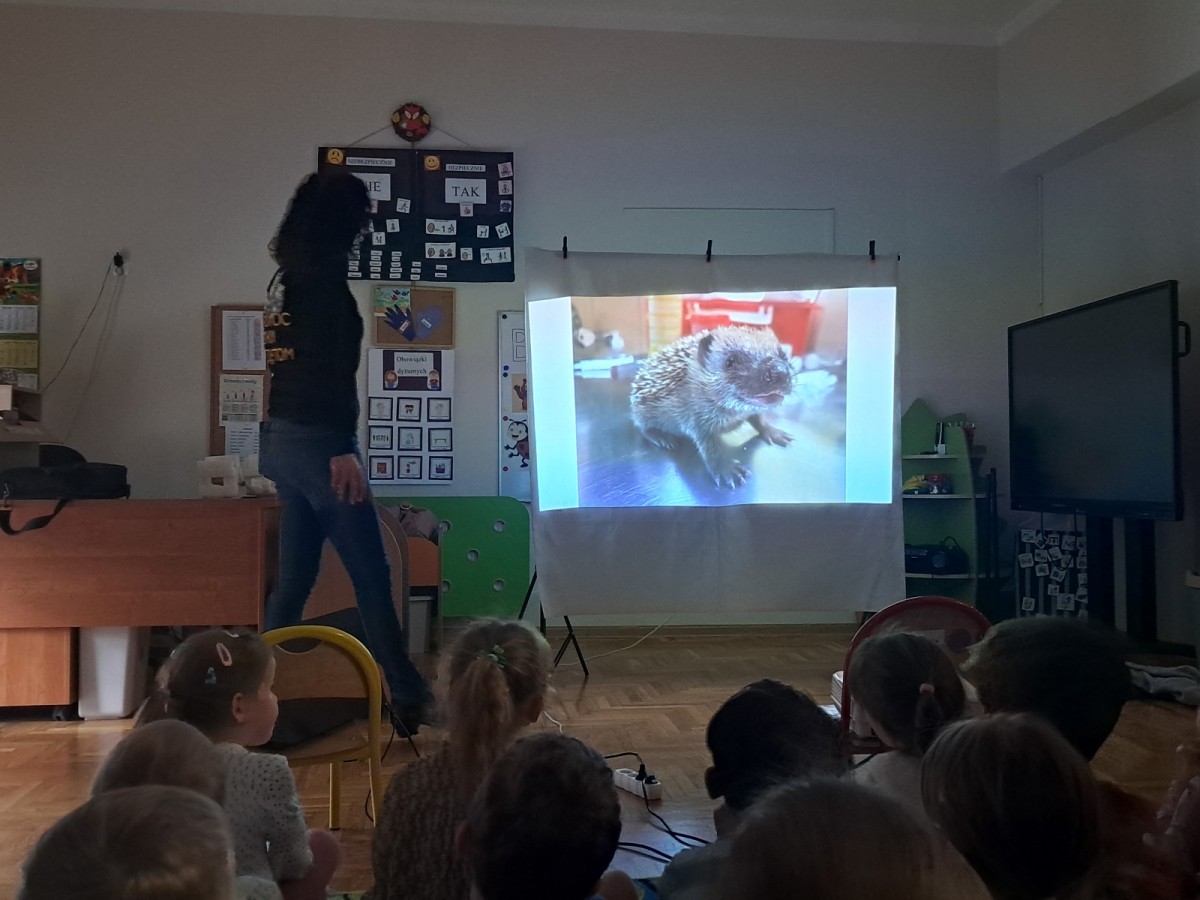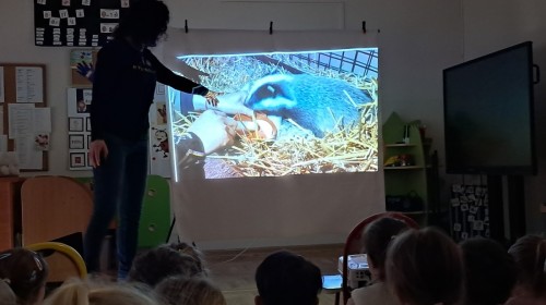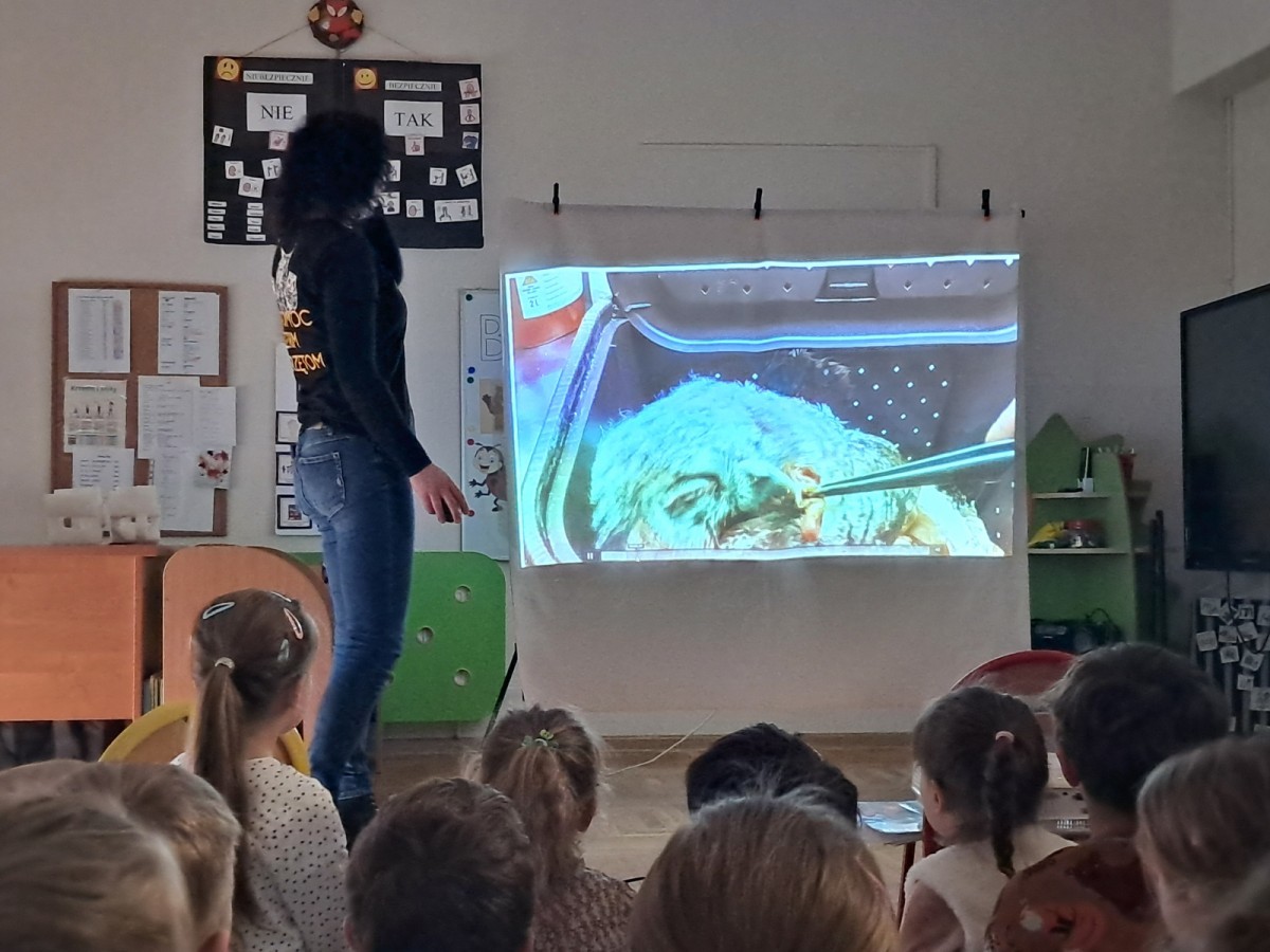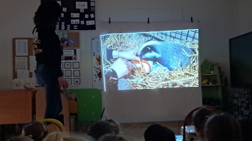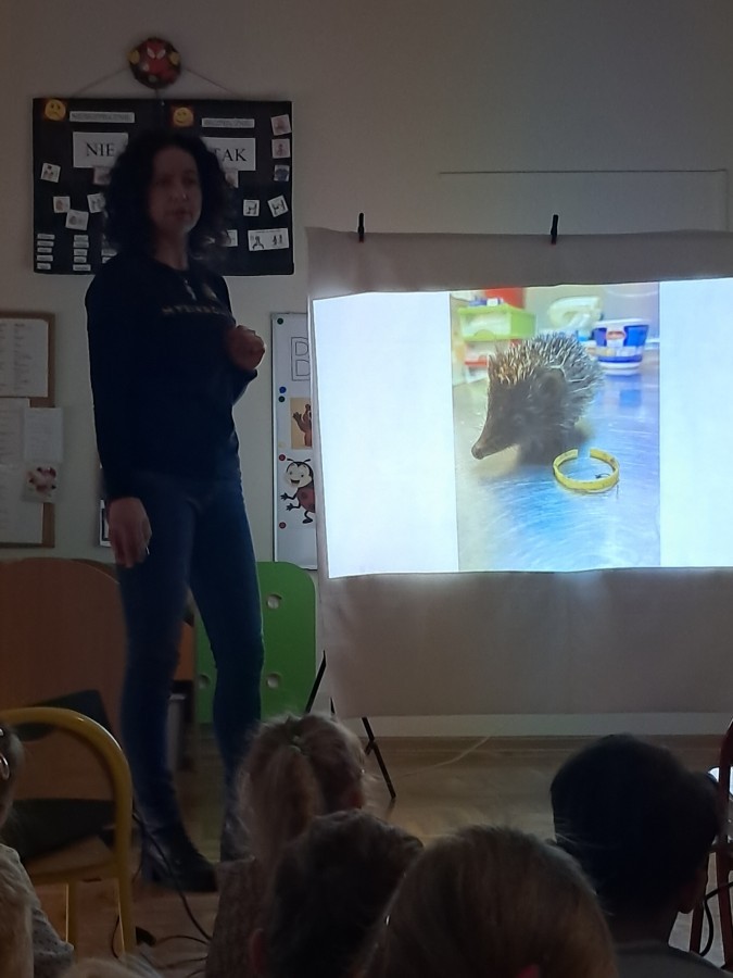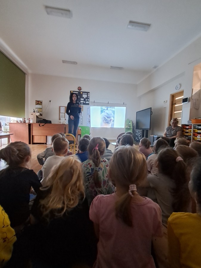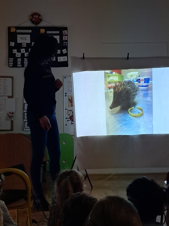 W trakcie spotkania Pani Agnieszka z ogromną pasją opowiadała nam o pomocy udzielanej hospitalizowanym zwierzętom i ich przywracaniu do naturalnego środowiska. Uwrażliwiła nas na potrzeby dzikich zwierząt oraz dostarczyła ogromnej wiedzy przyrodniczej.