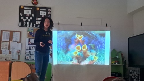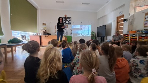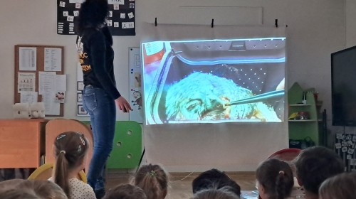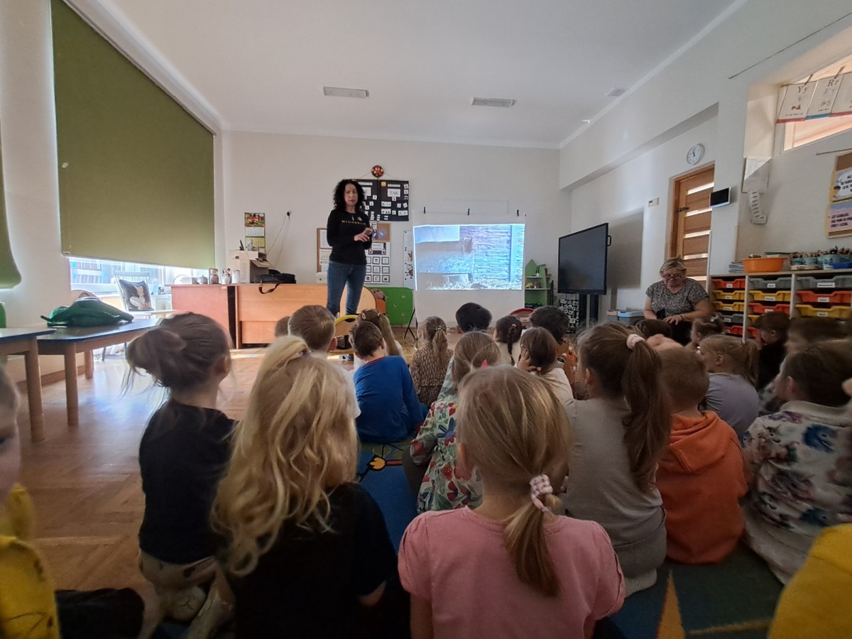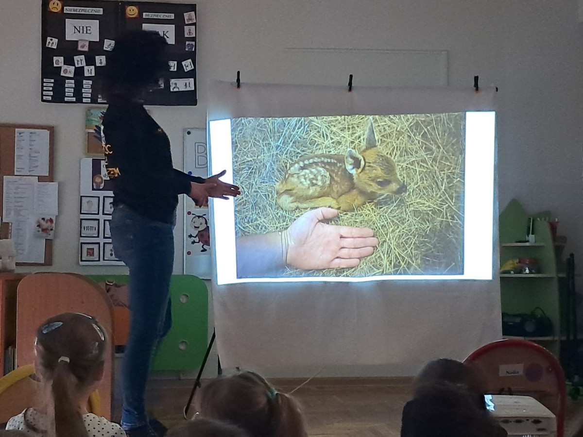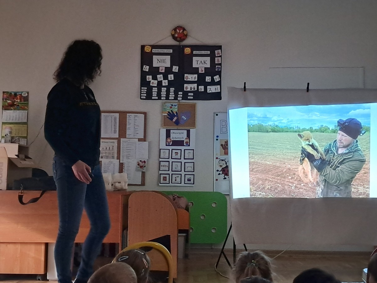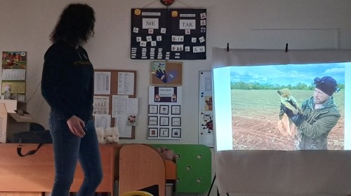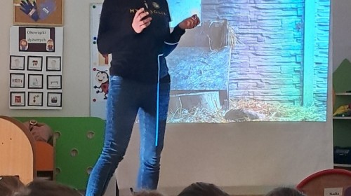 W trakcie spotkania Pani Agnieszka z ogromną pasją opowiadała nam o pomocy udzielanej hospitalizowanym zwierzętom i ich przywracaniu do naturalnego środowiska. Uwrażliwiła nas na potrzeby dzikich zwierząt oraz dostarczyła ogromnej wiedzy przyrodniczej.