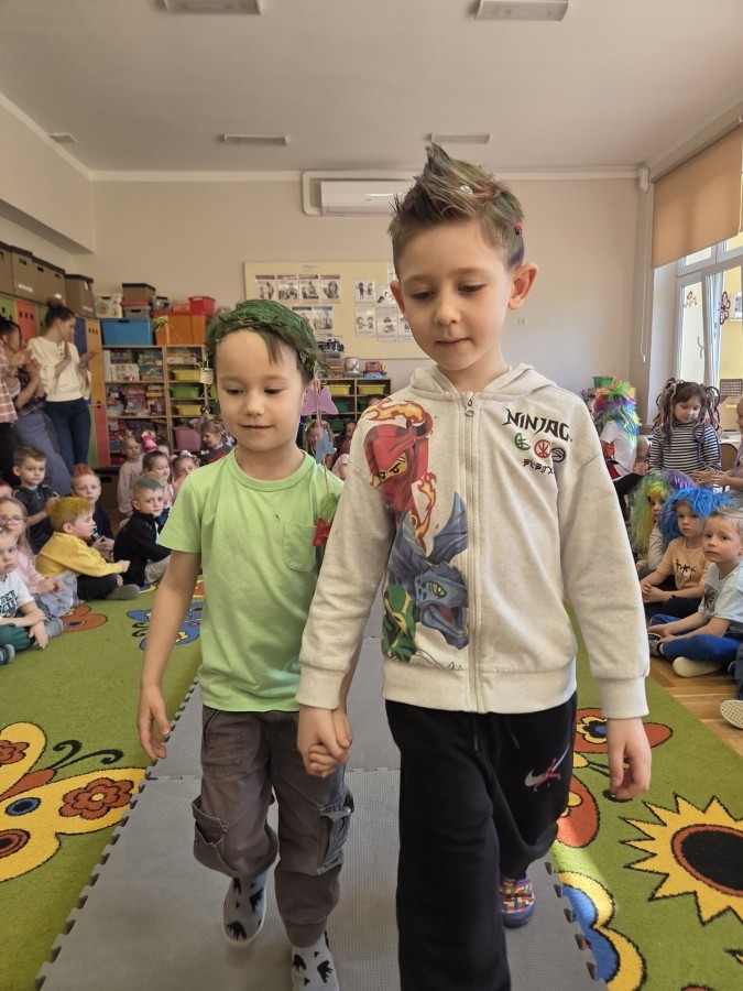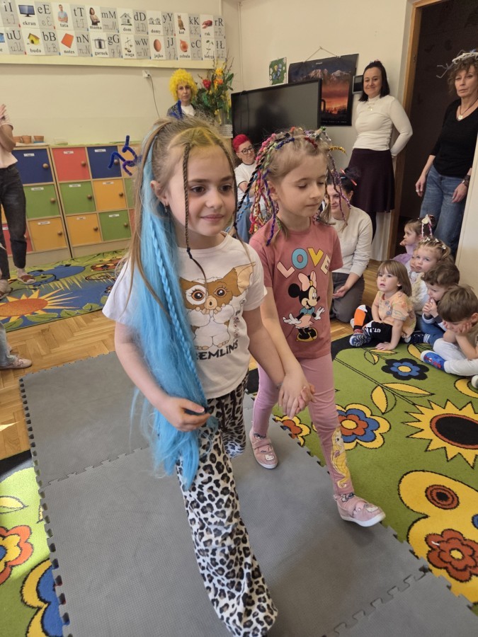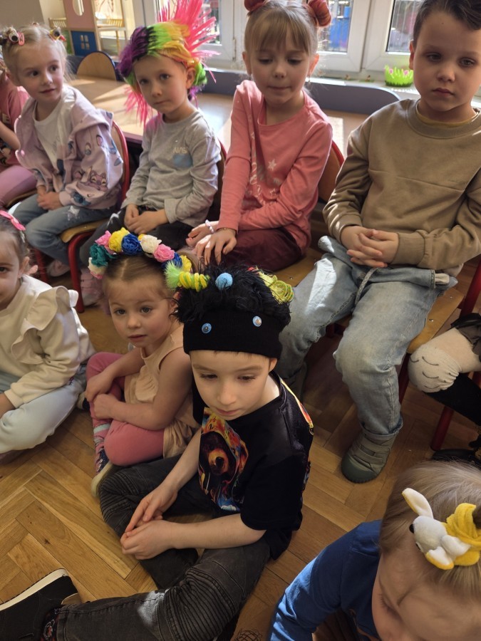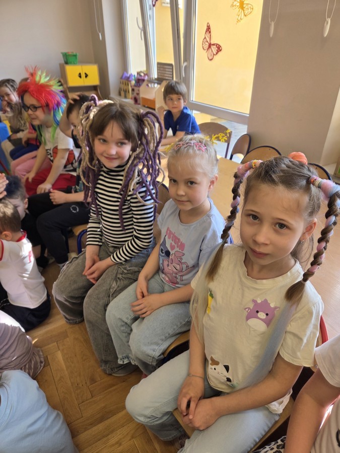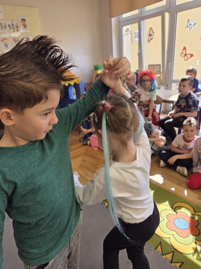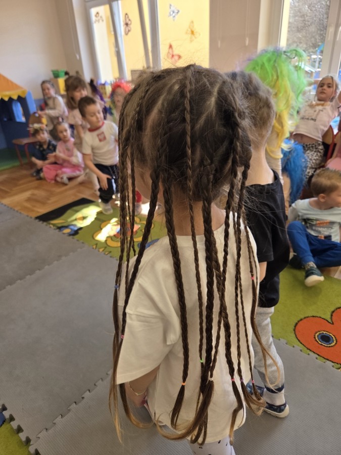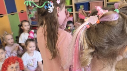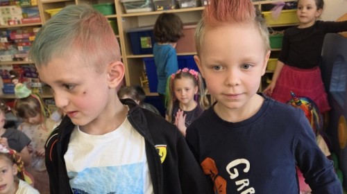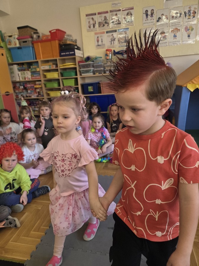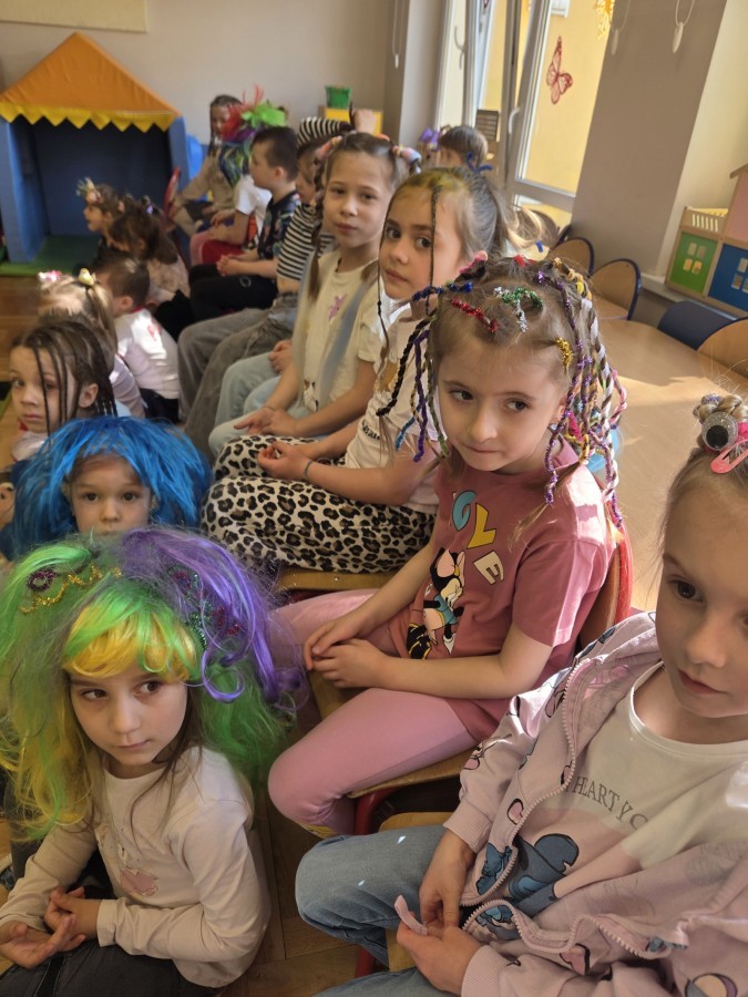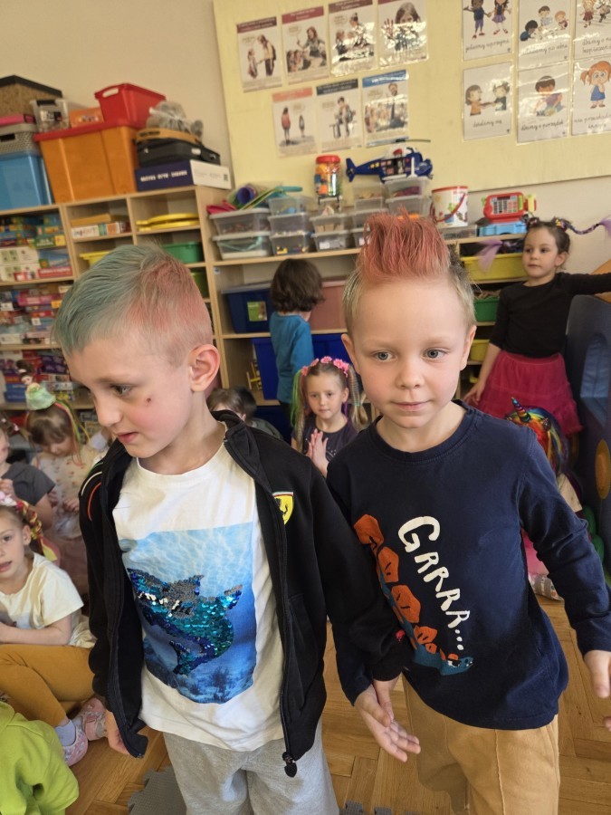 W poniedziałek 23 marca na głowach naszych przedszkolaków zagościły najbardziej szalone fryzury :-) dzieci przyszły uczesane w niezwykle pomysłowy i kolorowy sposób- pojawiły się min. fale, loki, koki, piórka, kwiaty, dredy i pająki. W ten sposób chcieliśmy uczcić nadejście wiosny :-) dziękujemy Rodzicom za współpracę i zaangażowanie.