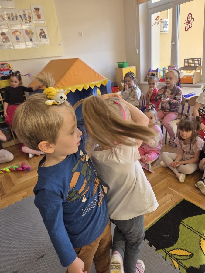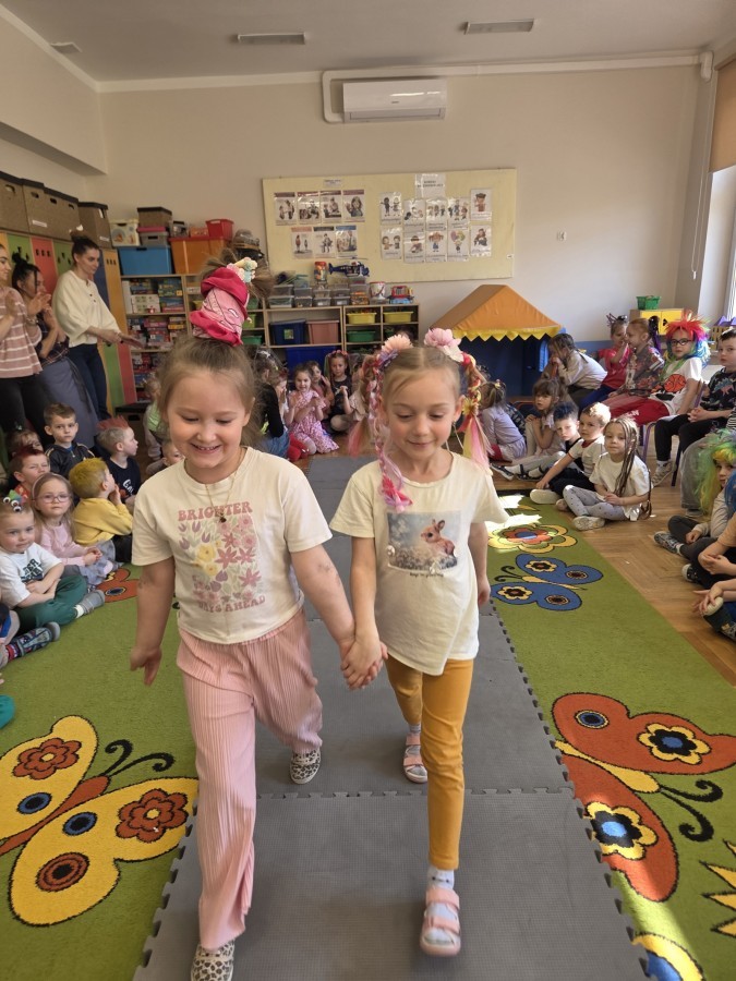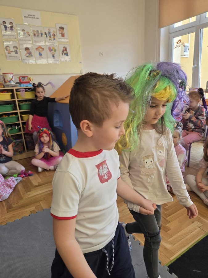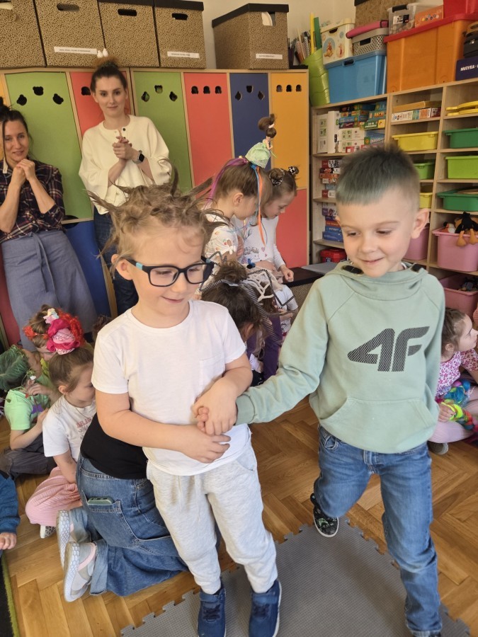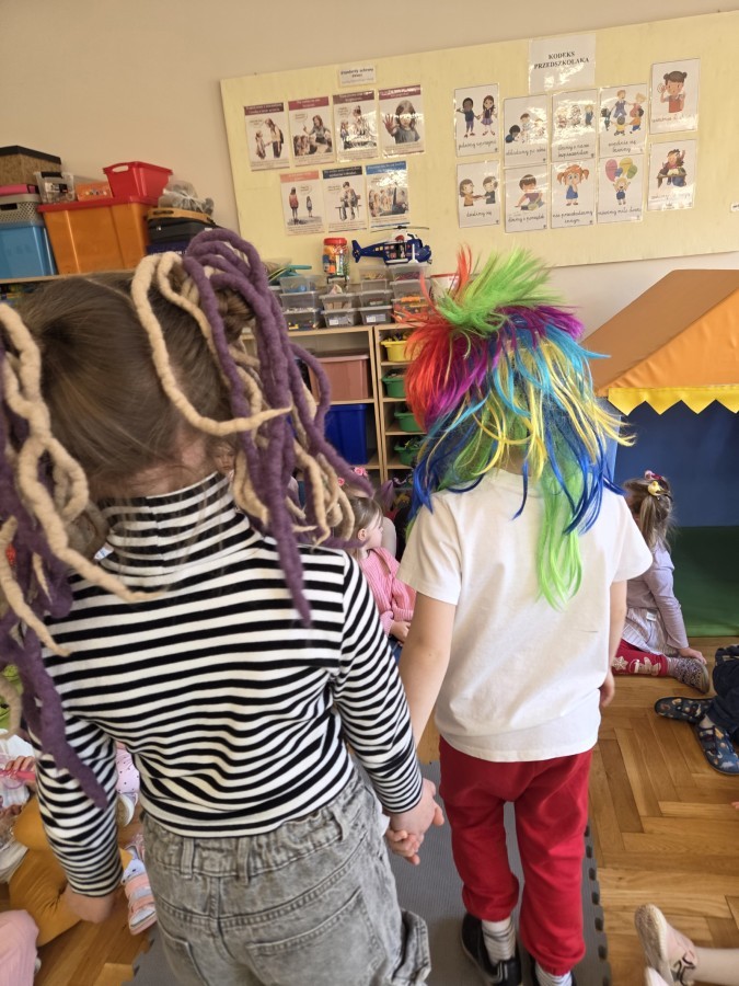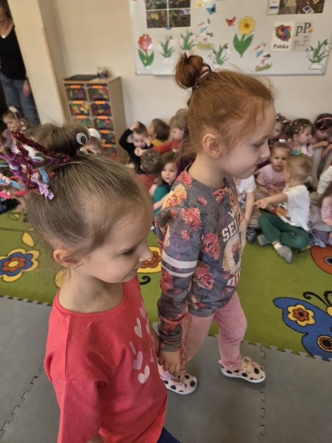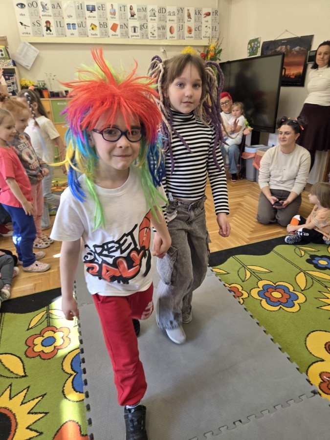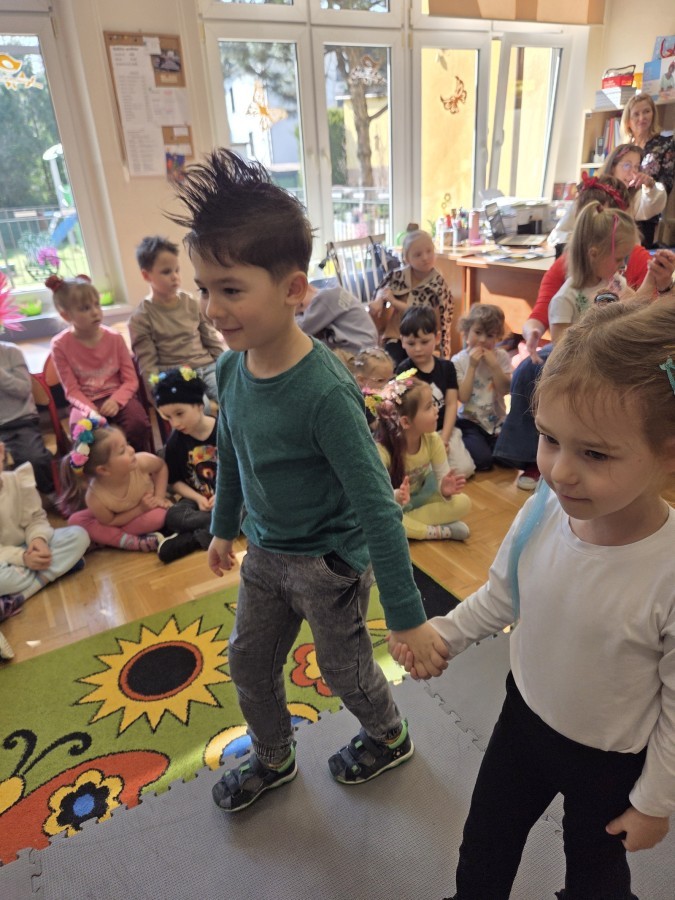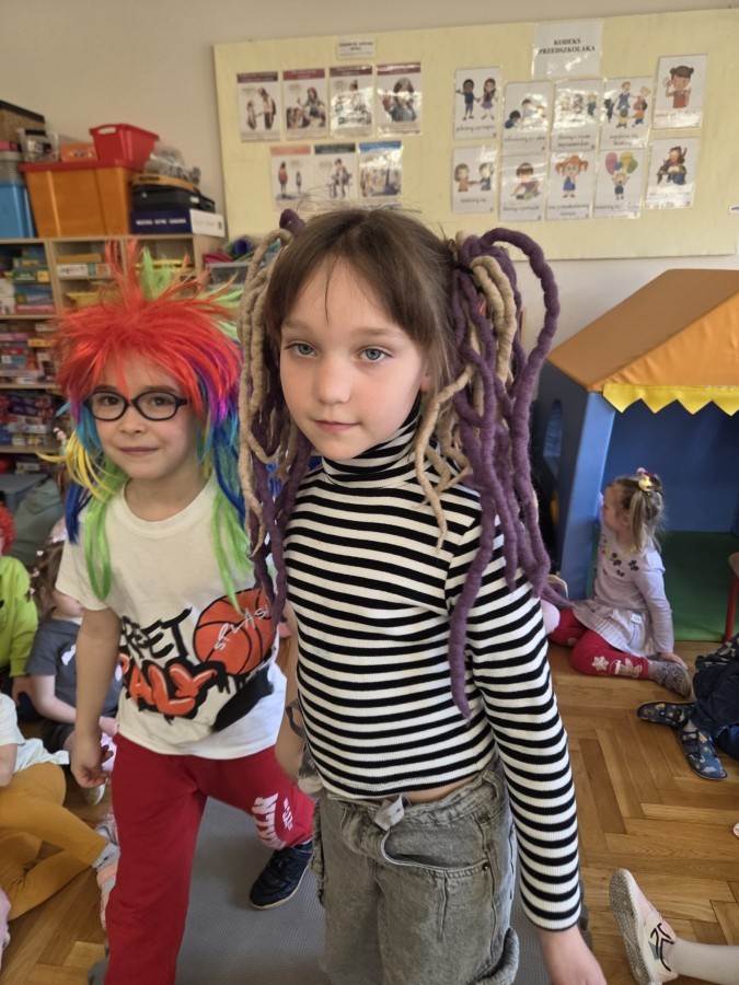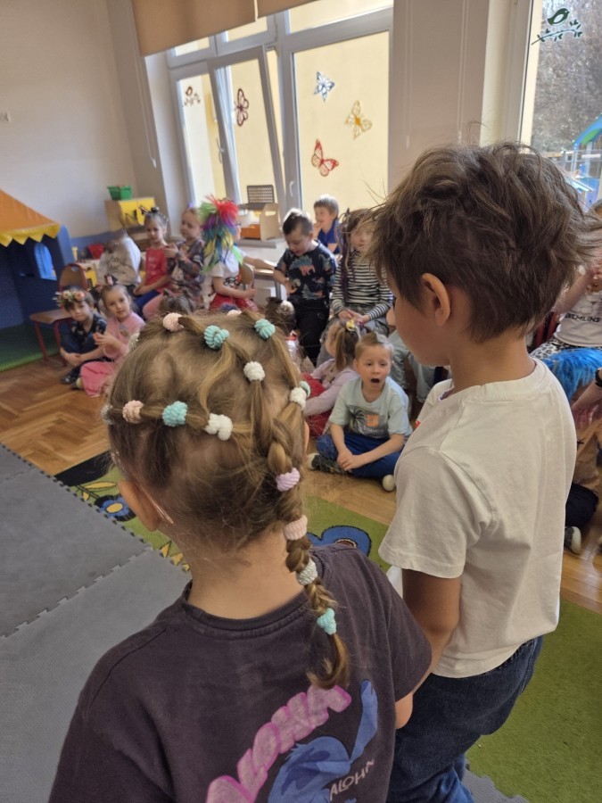 W poniedziałek 23 marca na głowach naszych przedszkolaków zagościły najbardziej szalone fryzury :-) dzieci przyszły uczesane w niezwykle pomysłowy i kolorowy sposób- pojawiły się min. fale, loki, koki, piórka, kwiaty, dredy i pająki. W ten sposób chcieliśmy uczcić nadejście wiosny :-) dziękujemy Rodzicom za współpracę i zaangażowanie.