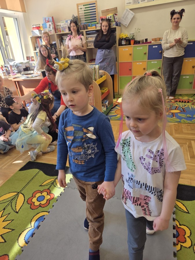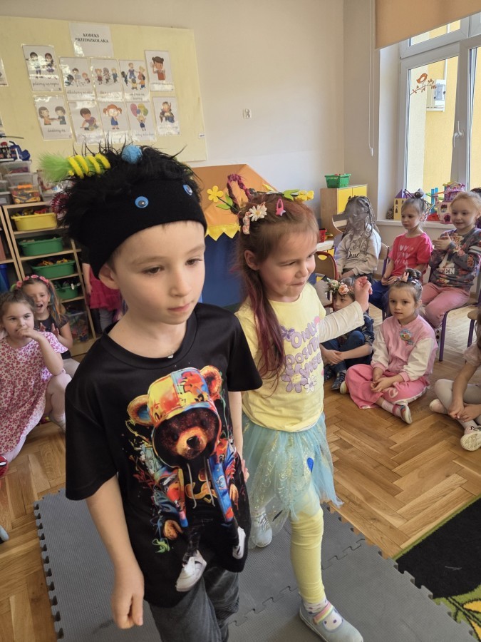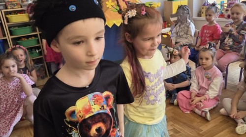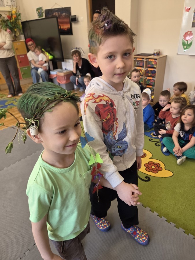 Nietypowo powitaliśmy wiosnę w tym roku. Zamiast bratków, kwiatków i krzaczków do sadzenia były fryzury. I muszę przyznać, że Rodzice spisali się na na szóstkę...i to z plusem. Było pomysłowo i kolorowo. Kwiaty, pająki, drzewa, dinozaury i jeszcze wiele innych różnych postaci. Nasze Nauczycielki też wzięły udział w zabawie i ich głowy były równie ciekawe, jak te dziecięce.