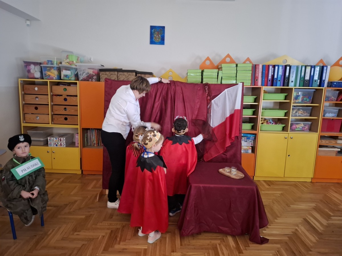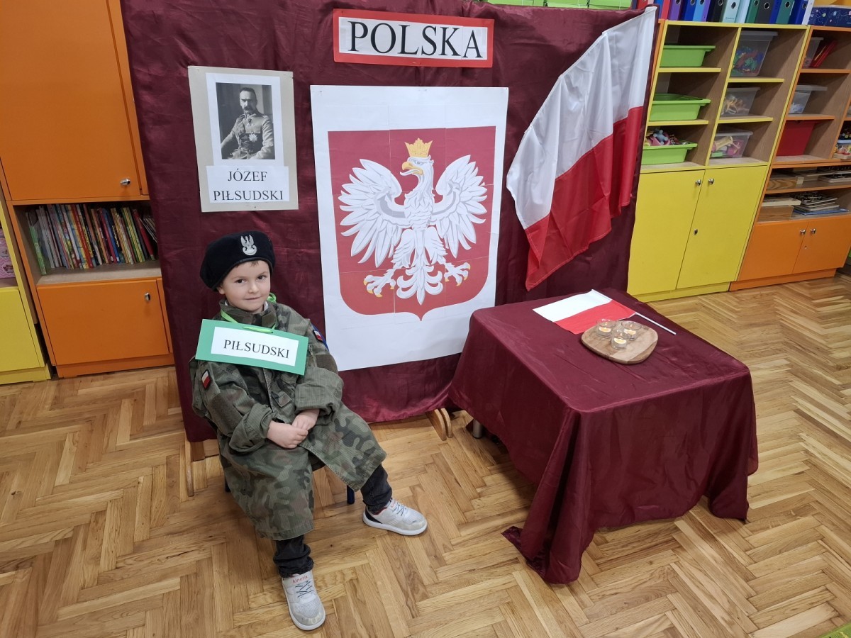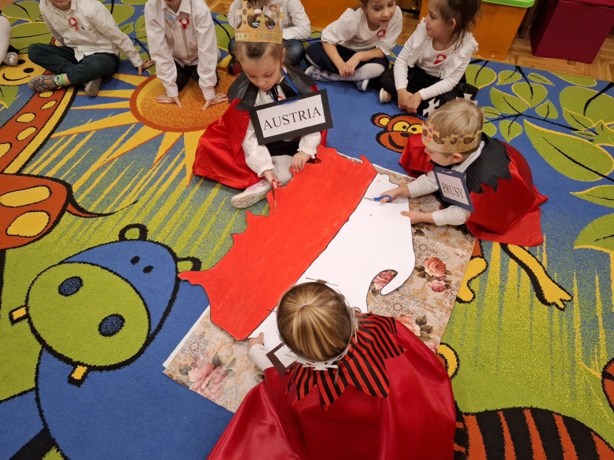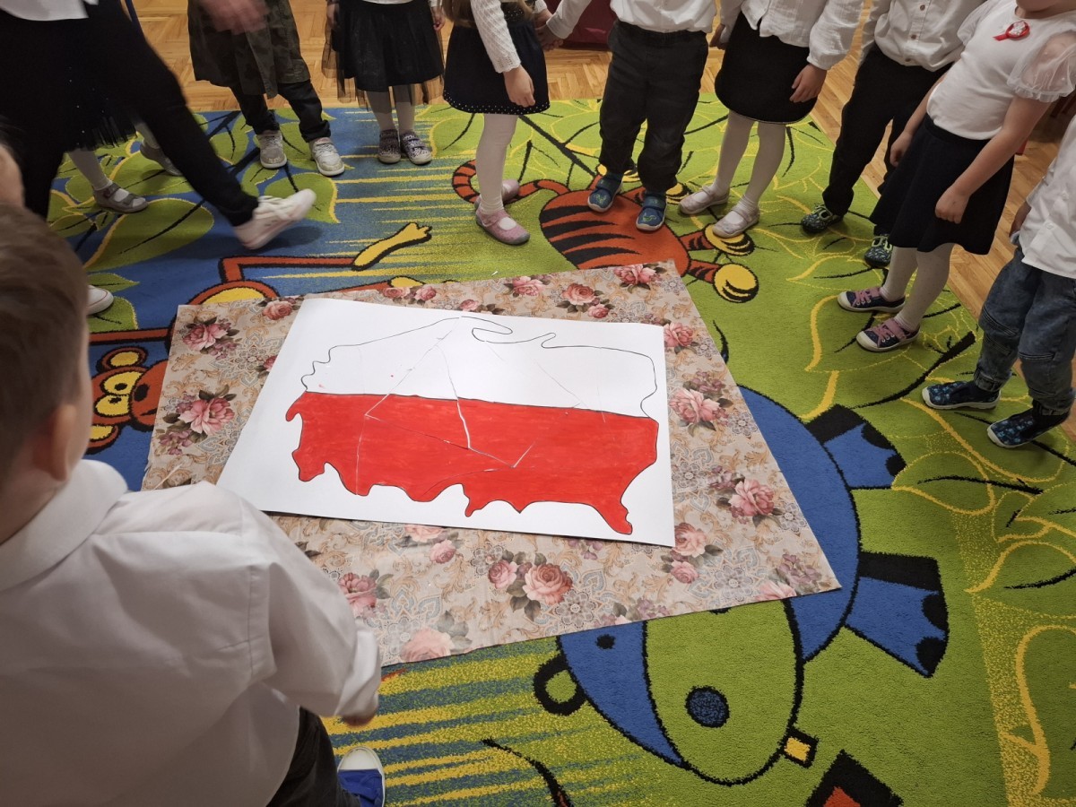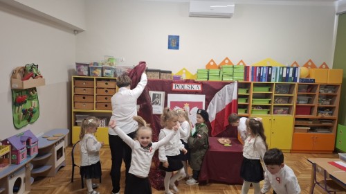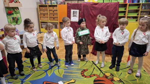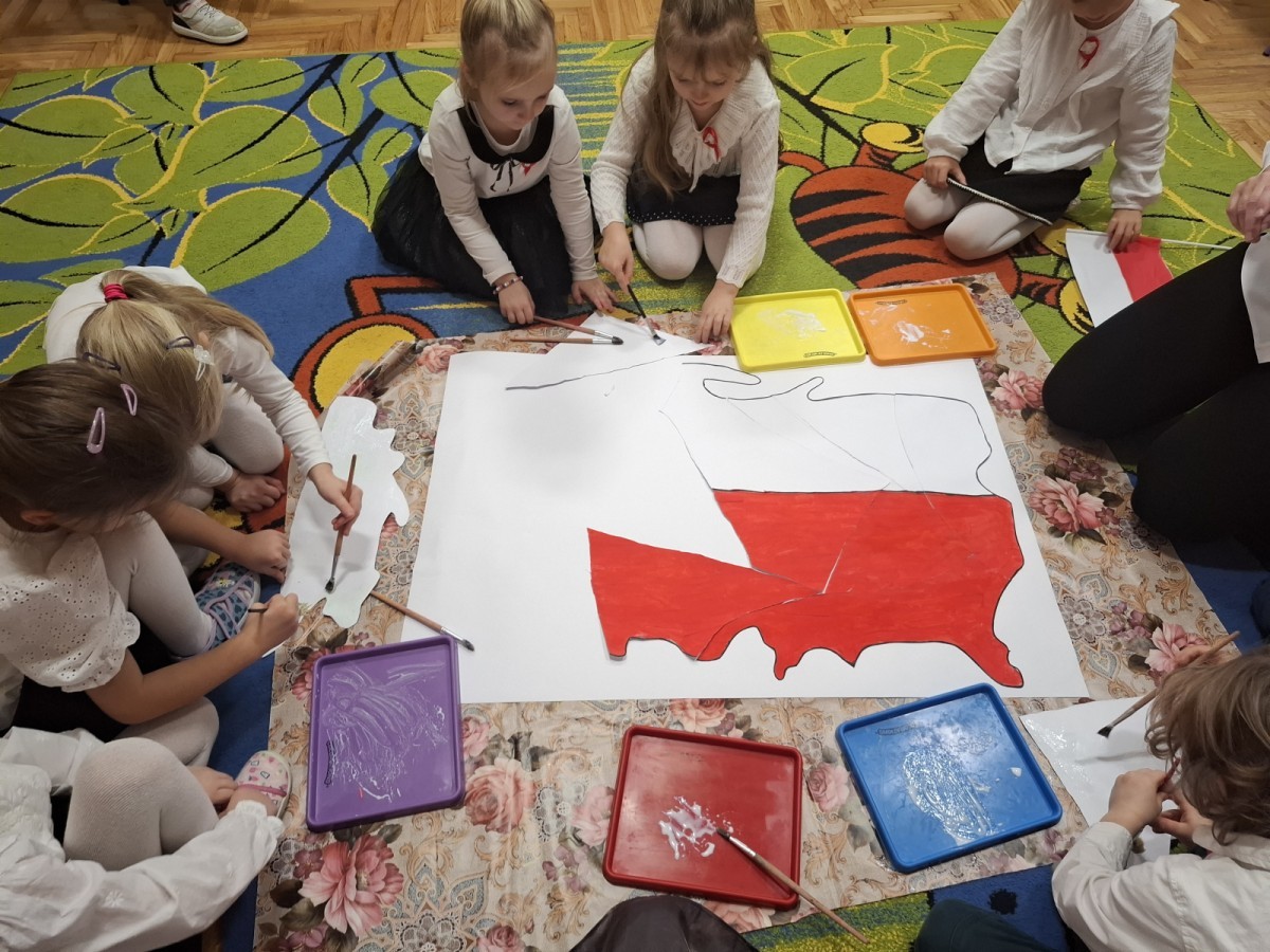 Odbyły się zajęcia patriotyczne, podczas których zainscenizowana została utrata niepodległości przez Polskę i jej odzyskanie po 123 latach zaborów. W trakcie realizacji zadania ,,Polskę miłuję- śpiewam i prezentuję"- dzieci odśpiewały hymn państwowy i pieśń ,,My, Pierwsza Brygada", a w ramach zadania ,,Symbole tworzę- pamięć odtworzę"- wykonały kotyliony.