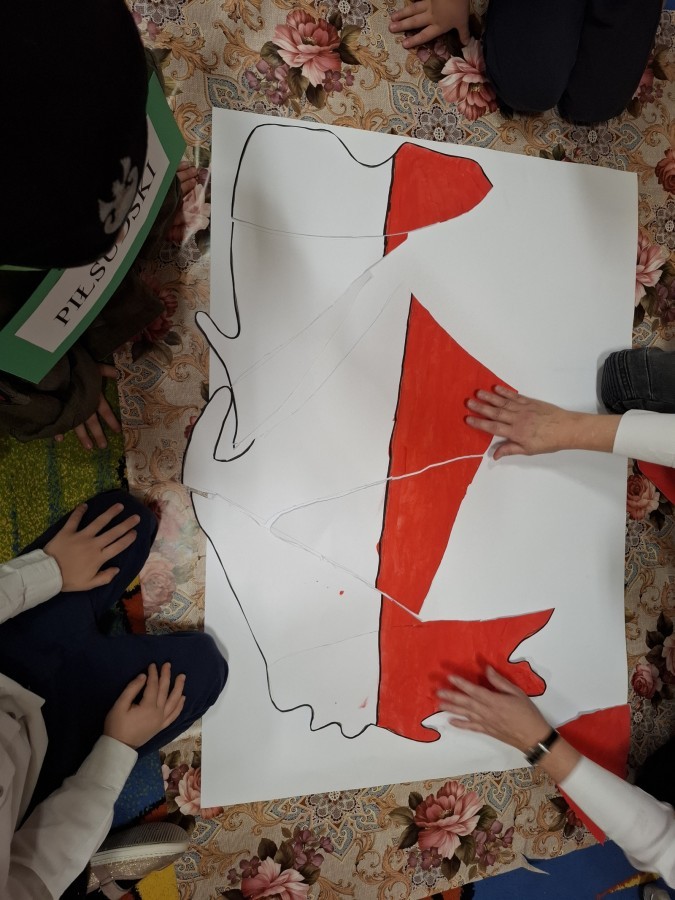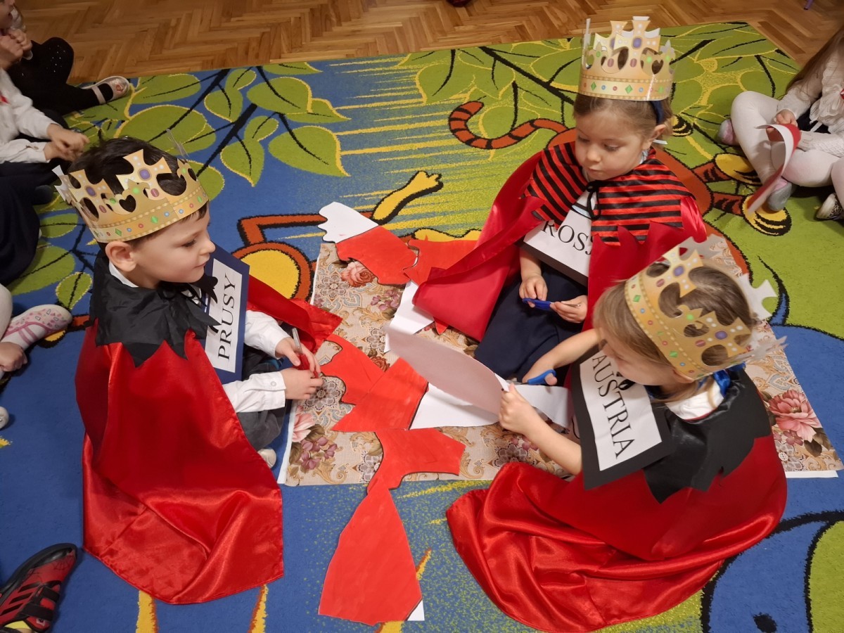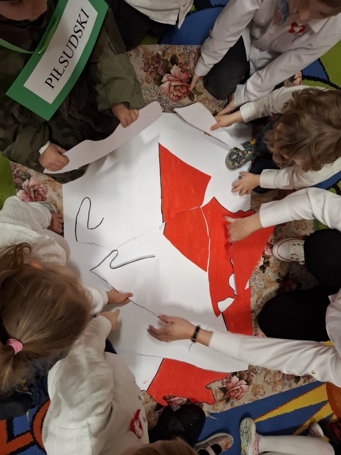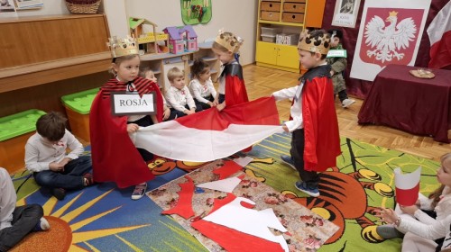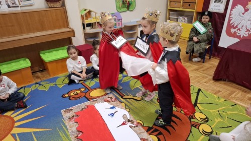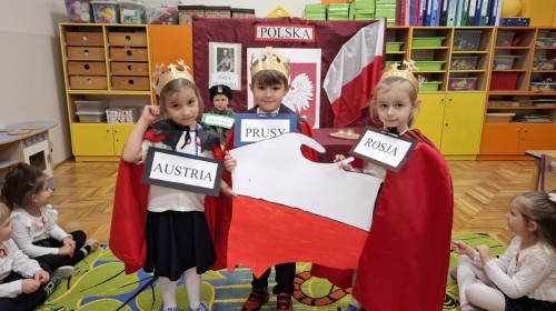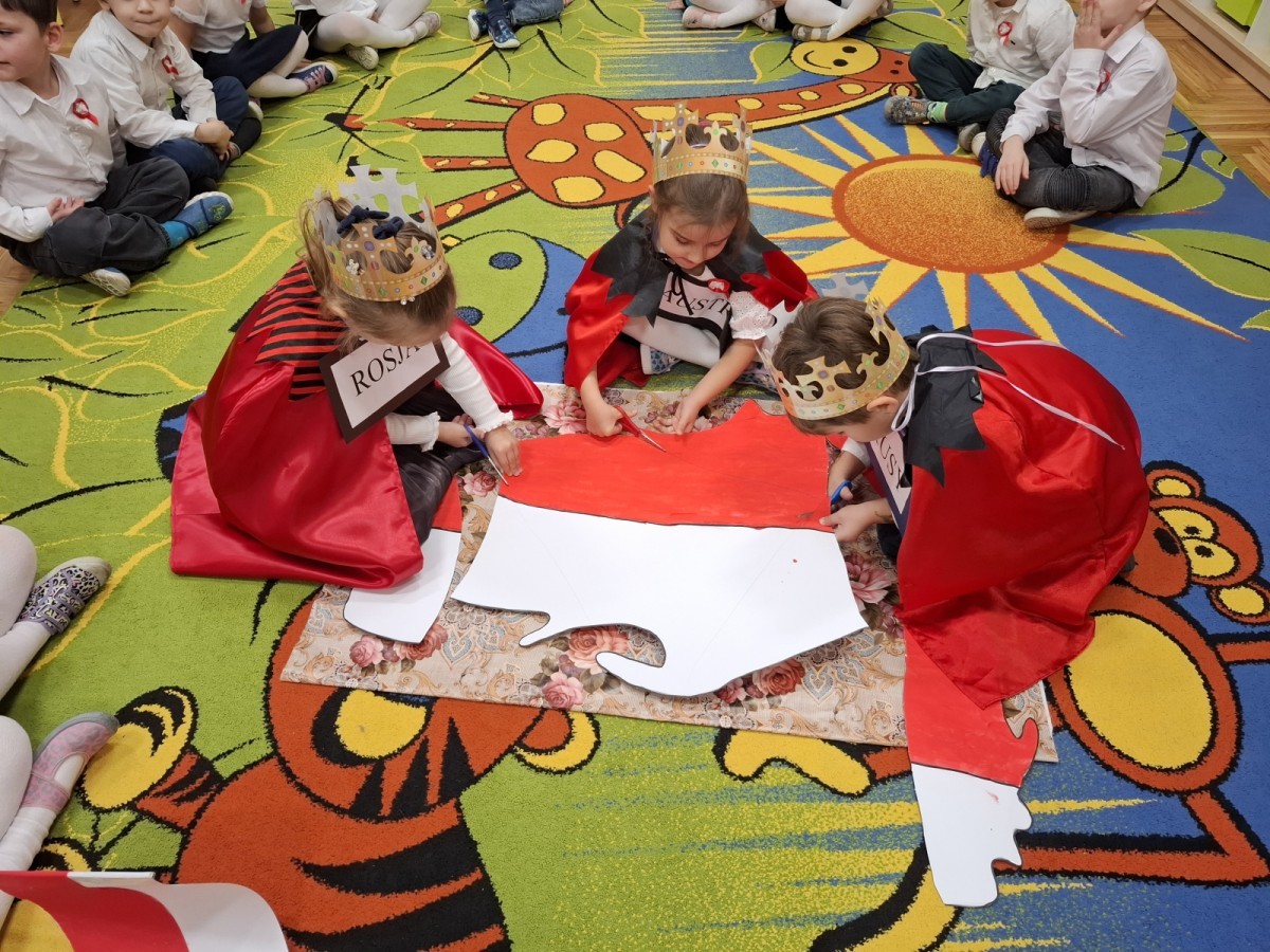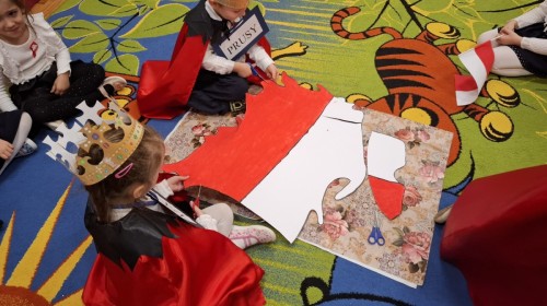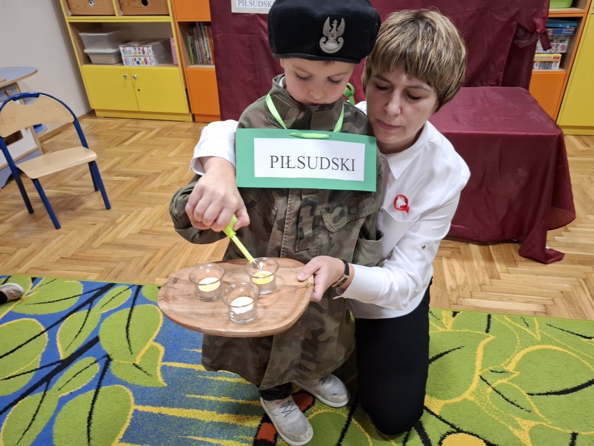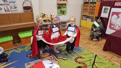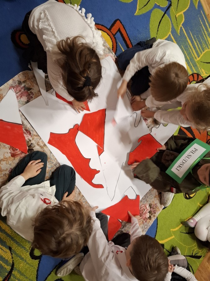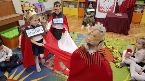 Odbyły się zajęcia patriotyczne, podczas których zainscenizowana została utrata niepodległości przez Polskę i jej odzyskanie po 123 latach zaborów. W trakcie realizacji zadania ,,Polskę miłuję- śpiewam i prezentuję"- dzieci odśpiewały hymn państwowy i pieśń ,,My, Pierwsza Brygada", a w ramach zadania ,,Symbole tworzę- pamięć odtworzę"- wykonały kotyliony.