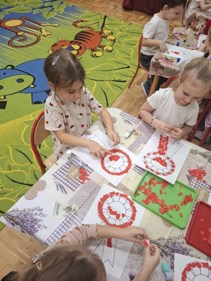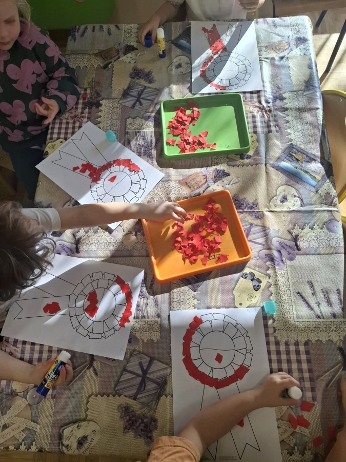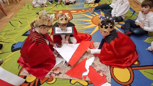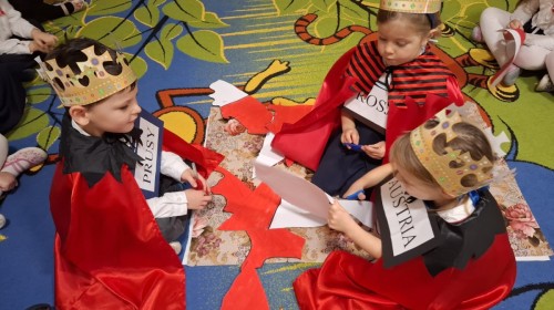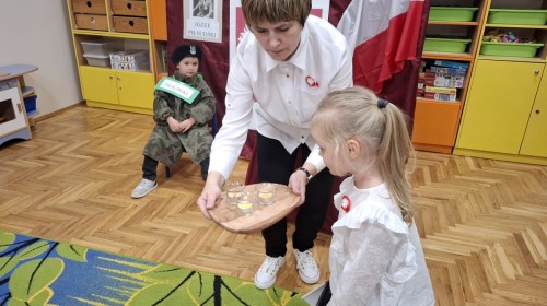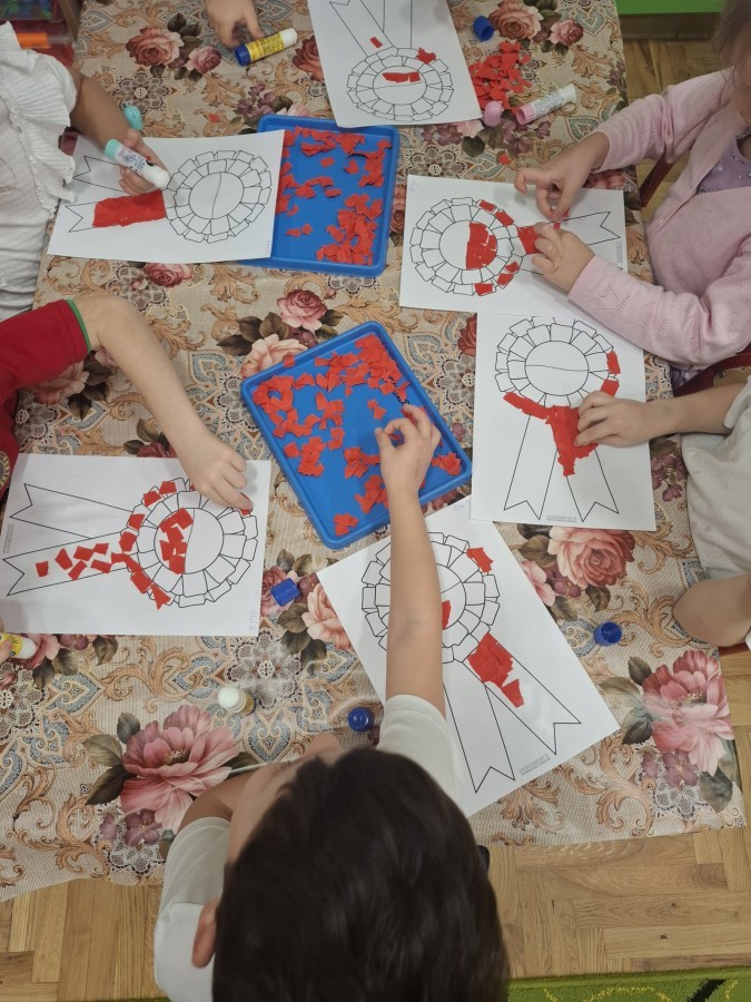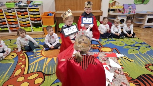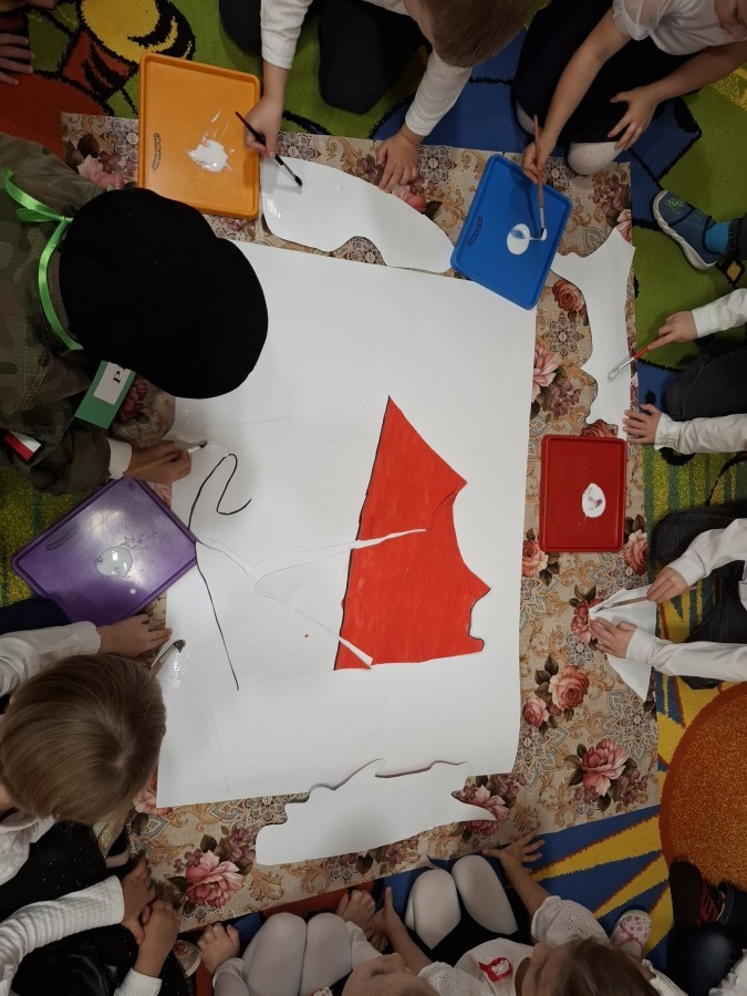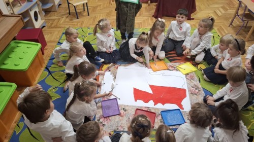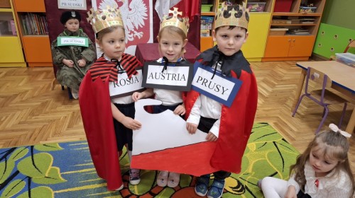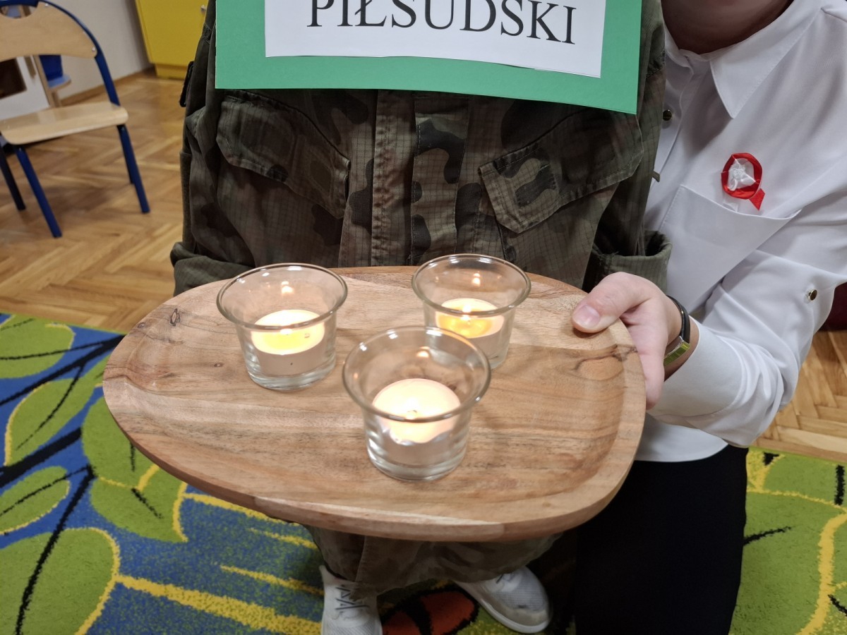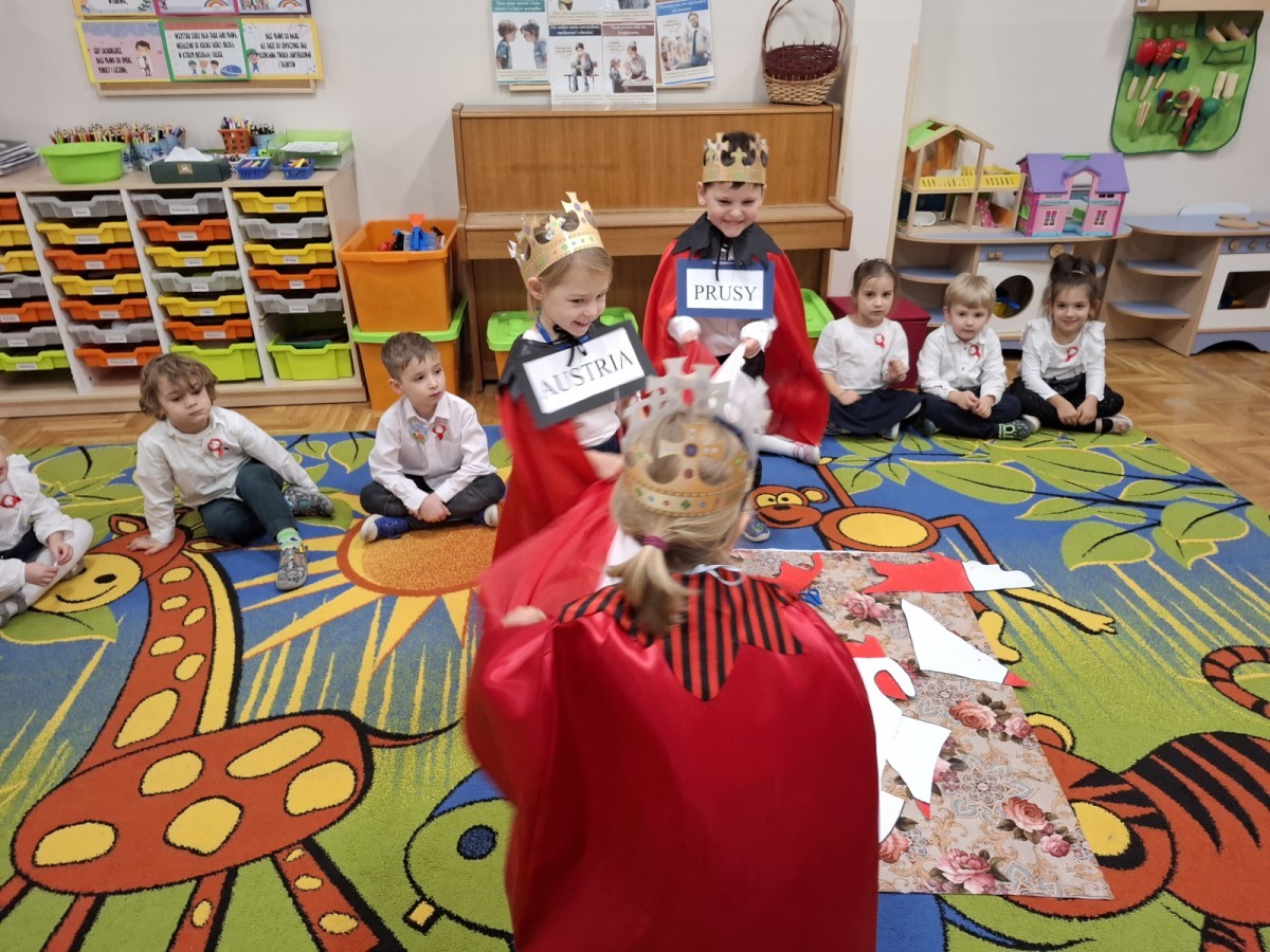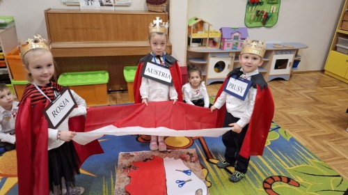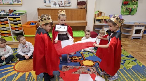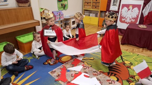 Odbyły się zajęcia patriotyczne, podczas których zainscenizowana została utrata niepodległości przez Polskę i jej odzyskanie po 123 latach zaborów. W trakcie realizacji zadania ,,Polskę miłuję- śpiewam i prezentuję"- dzieci odśpiewały hymn państwowy i pieśń ,,My, Pierwsza Brygada", a w ramach zadania ,,Symbole tworzę- pamięć odtworzę"- wykonały kotyliony.