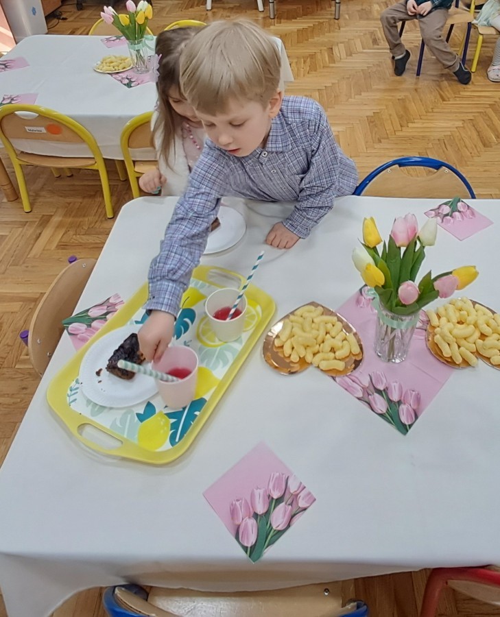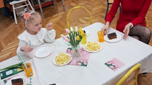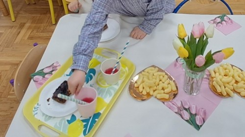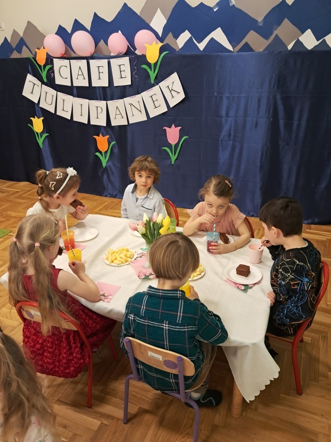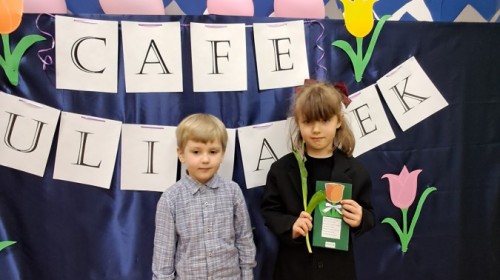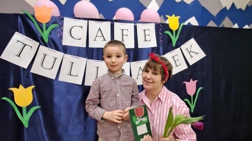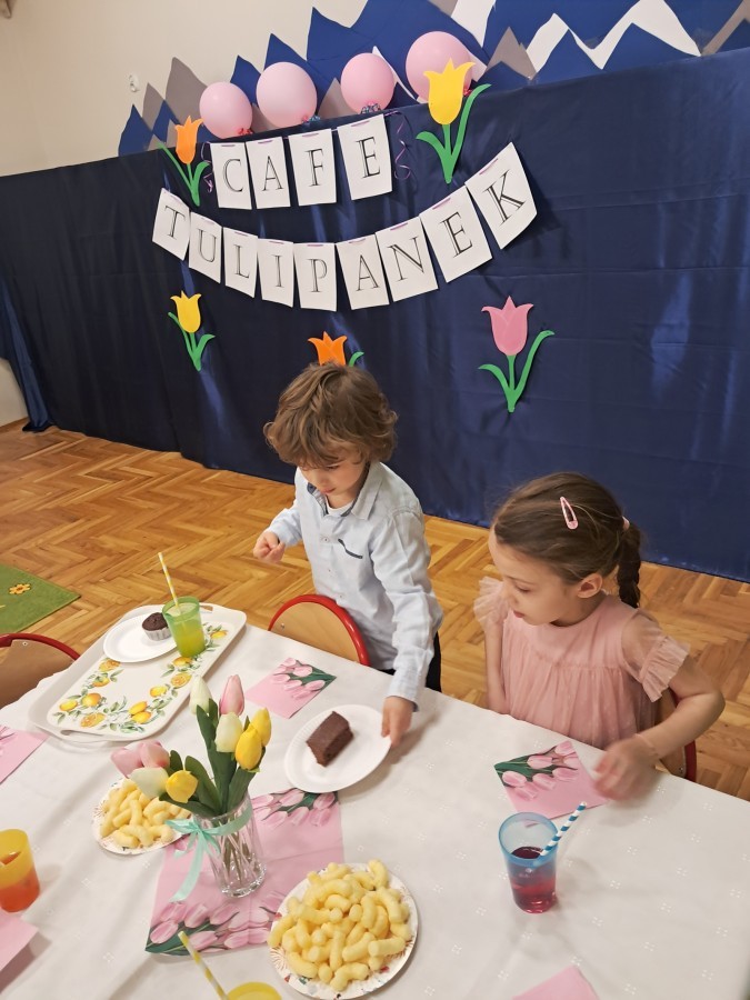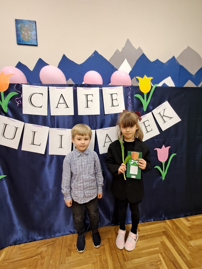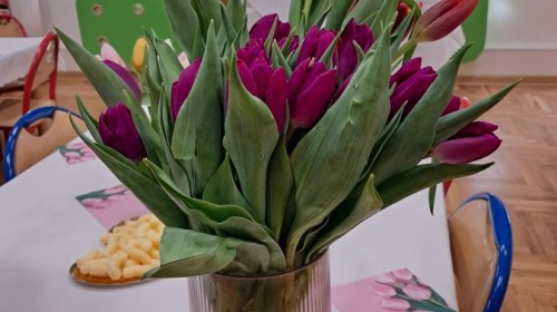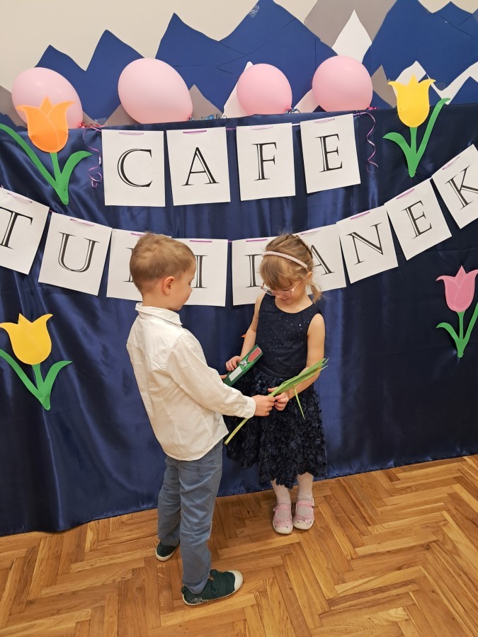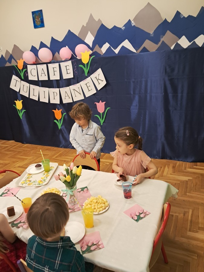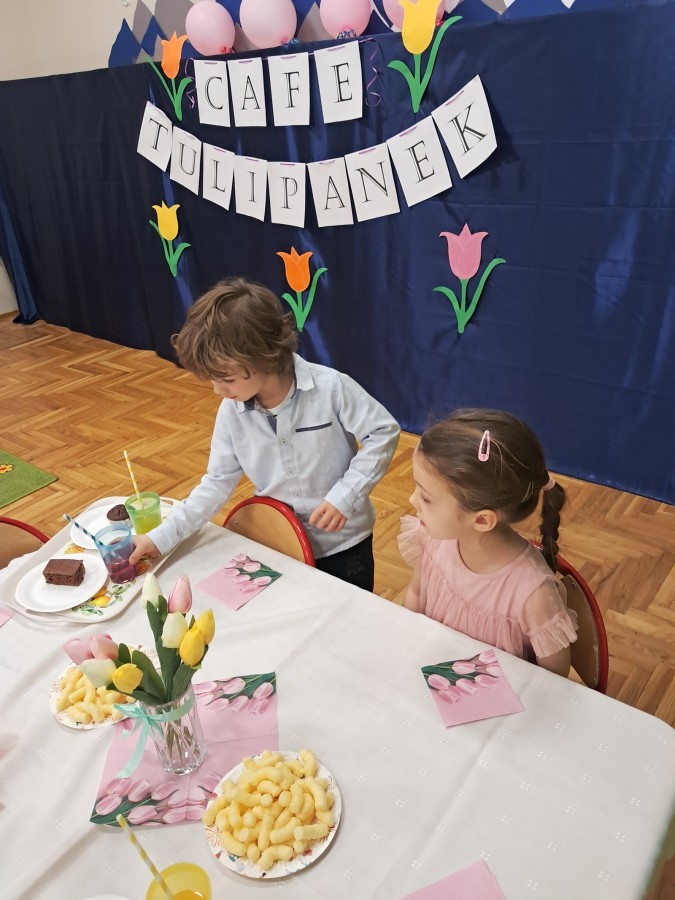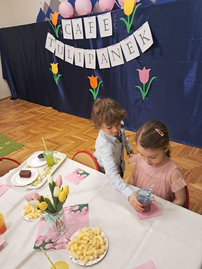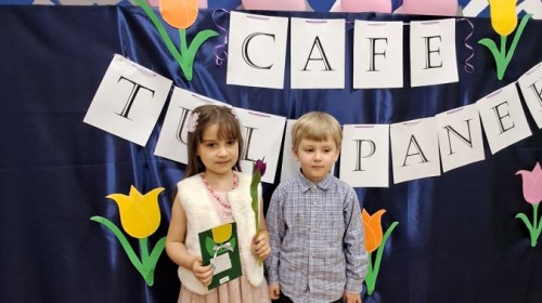 Z okazji Dnia Kobiet u Lisków odbyła się kawiarenka ,,Cafe Tulipanek". Wszystkim Dziewczynkom i Paniom chłopcy złożyli życzenia, wręczyli laurki i tulipanki, oraz zaprosili na poczęstunek do kawiarenki.