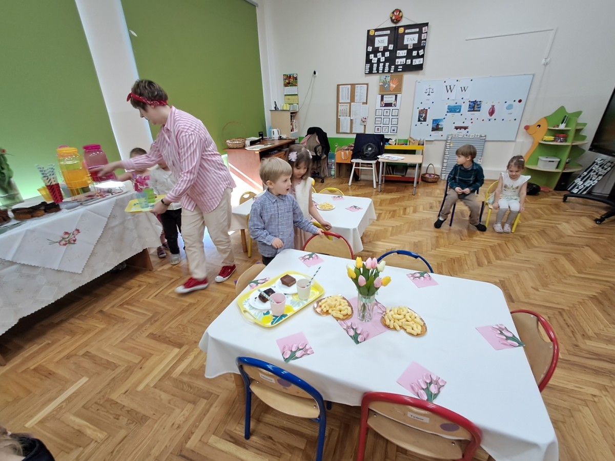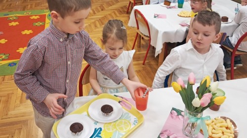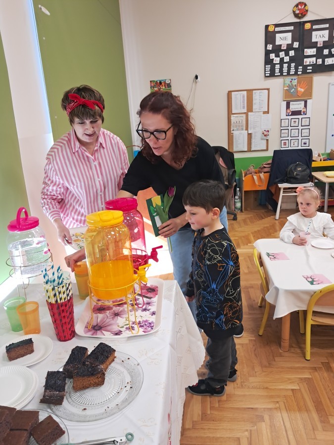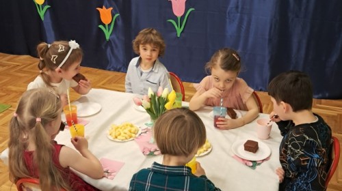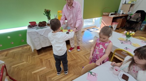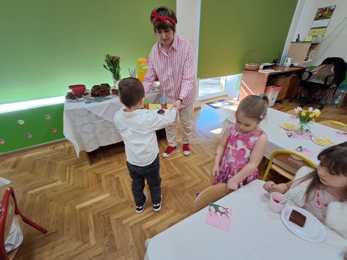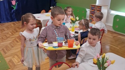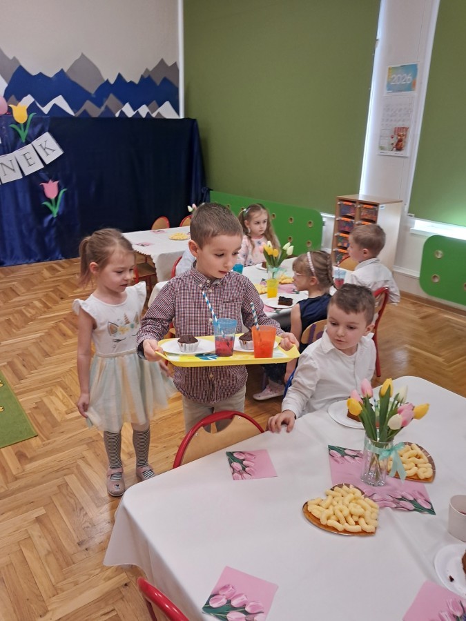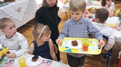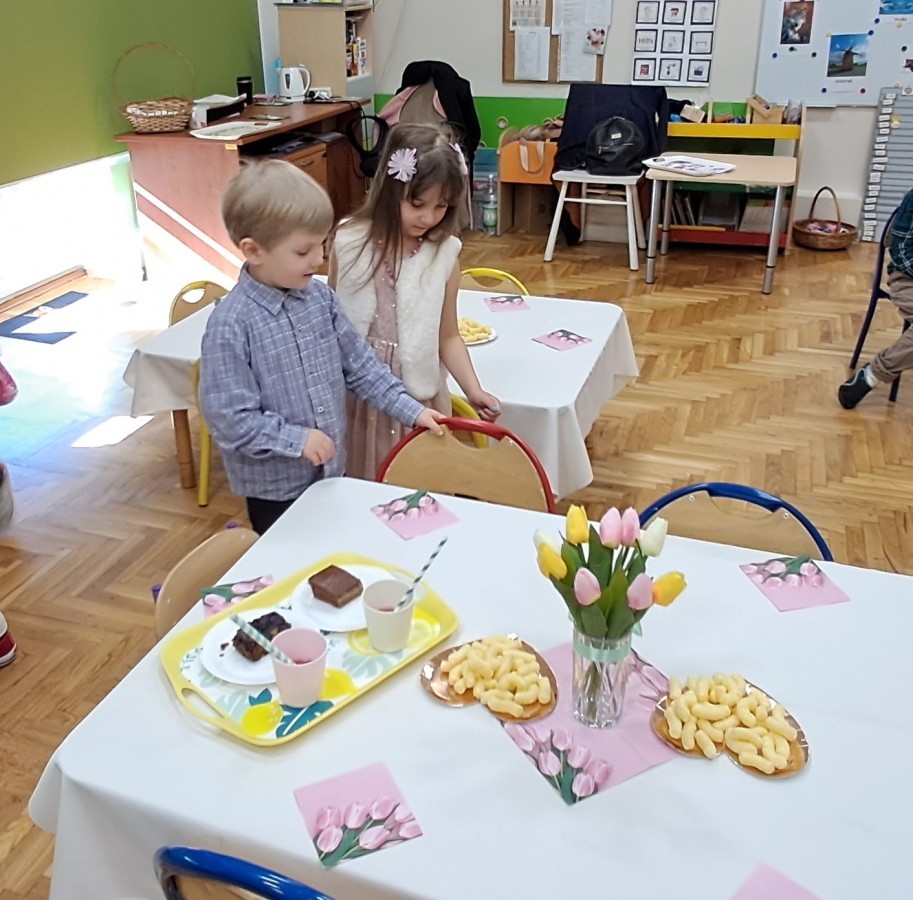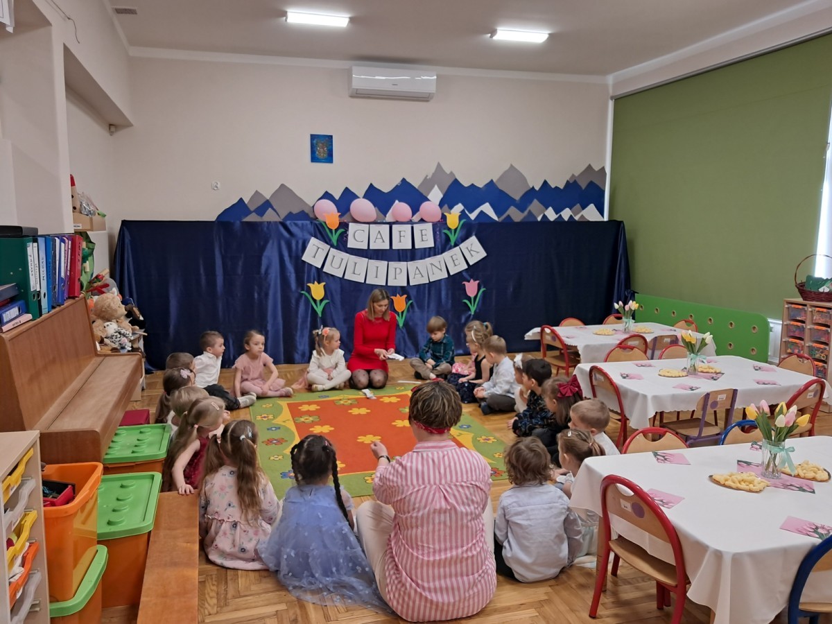 Z okazji Dnia Kobiet u Lisków odbyła się kawiarenka ,,Cafe Tulipanek". Wszystkim Dziewczynkom i Paniom chłopcy złożyli życzenia, wręczyli laurki i tulipanki, oraz zaprosili na poczęstunek do kawiarenki.