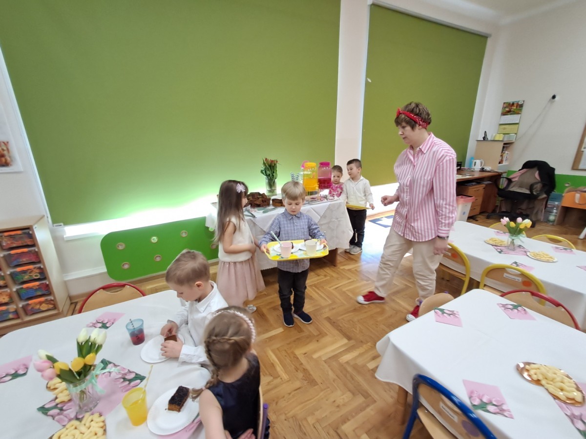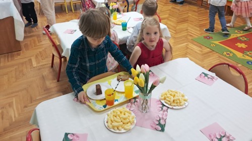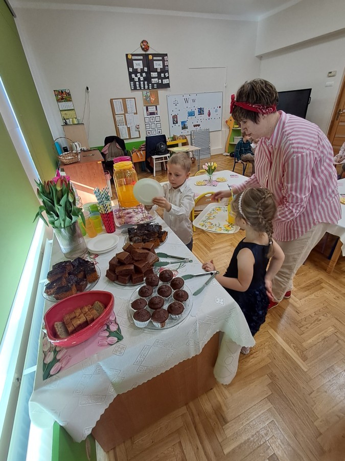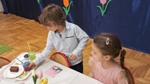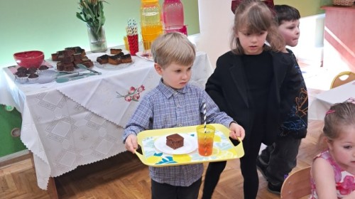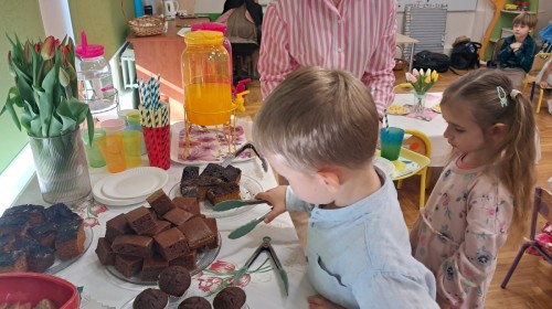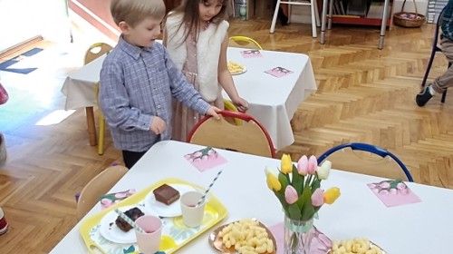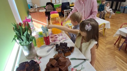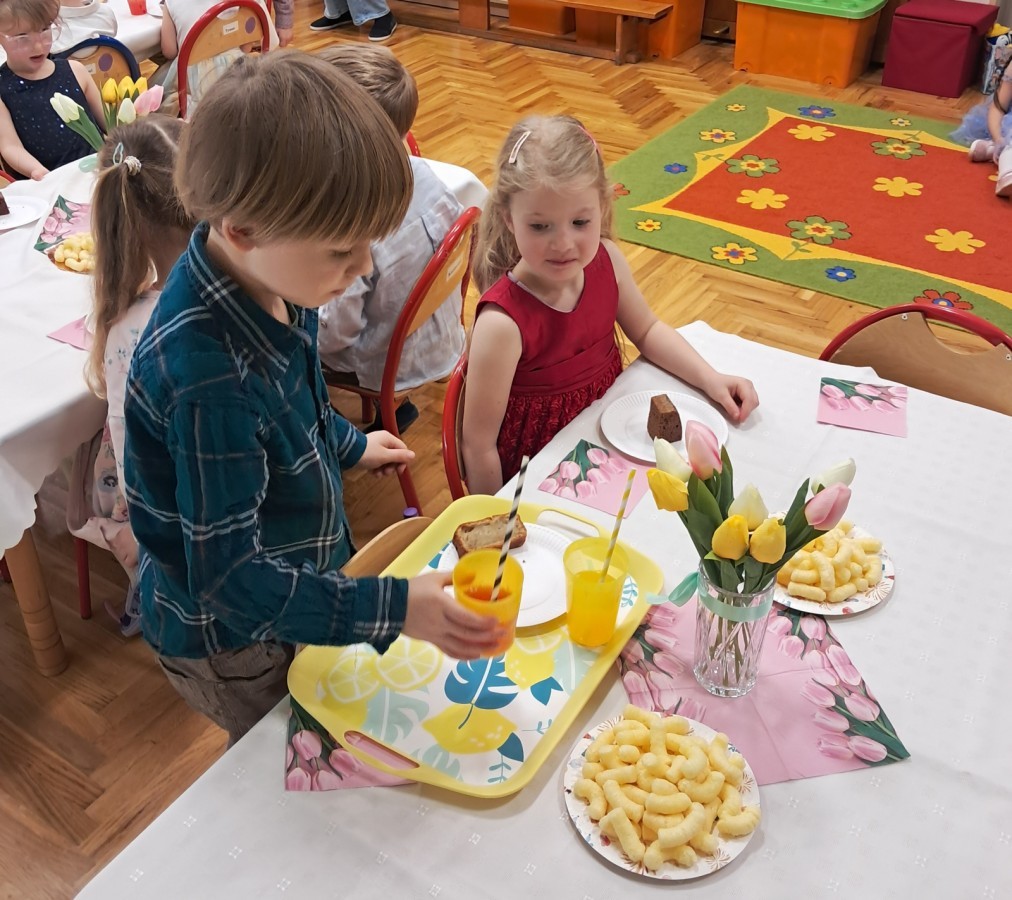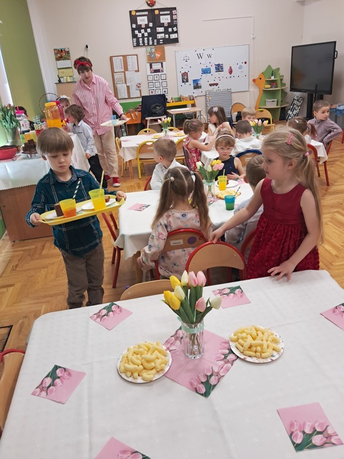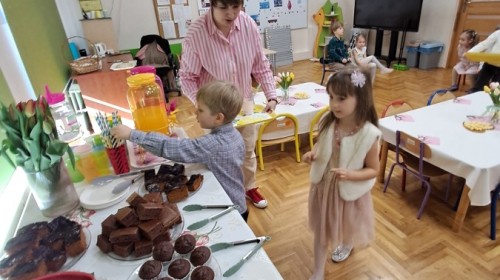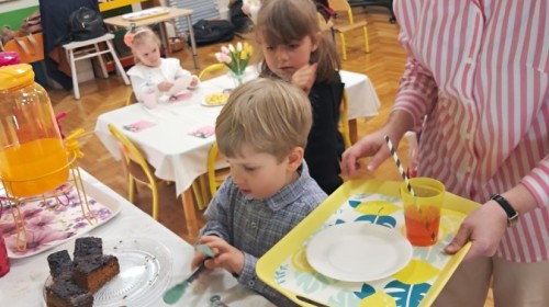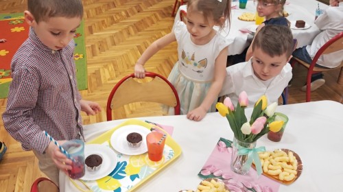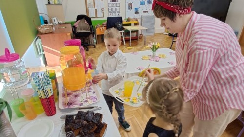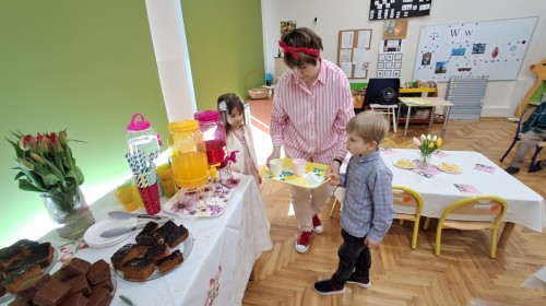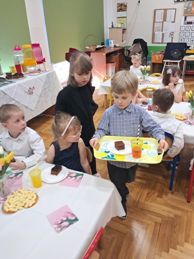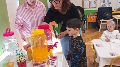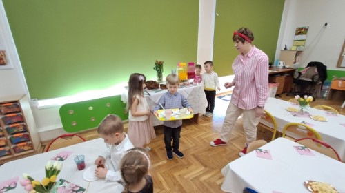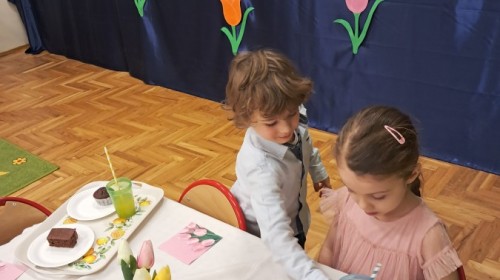 Z okazji Dnia Kobiet u Lisków odbyła się kawiarenka ,,Cafe Tulipanek". Wszystkim Dziewczynkom i Paniom chłopcy złożyli życzenia, wręczyli laurki i tulipanki, oraz zaprosili na poczęstunek do kawiarenki.
