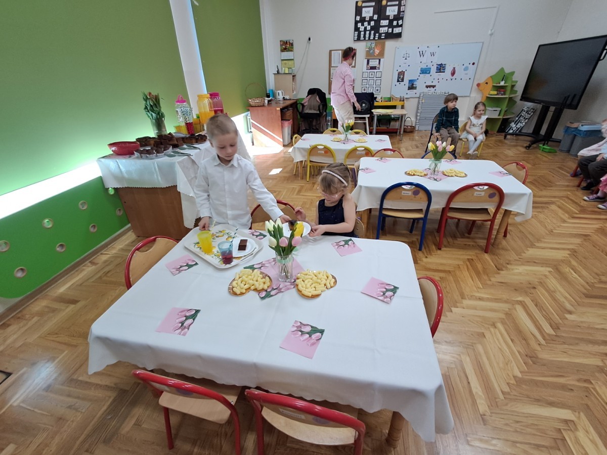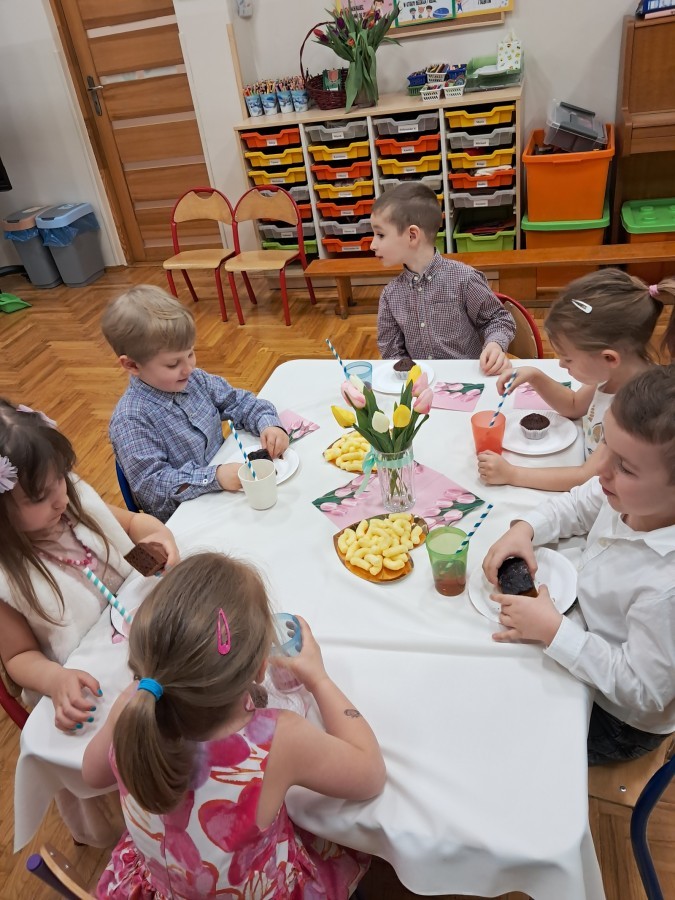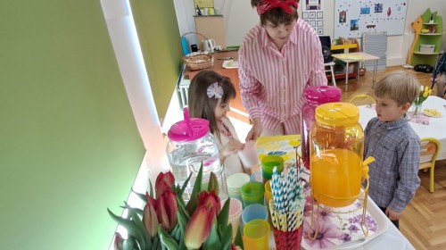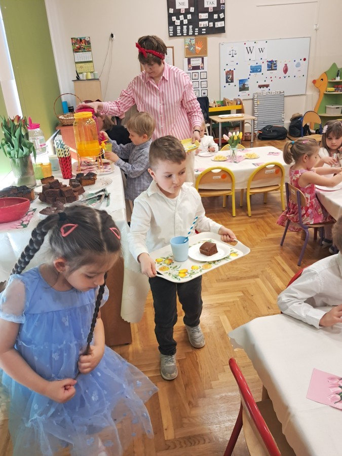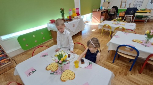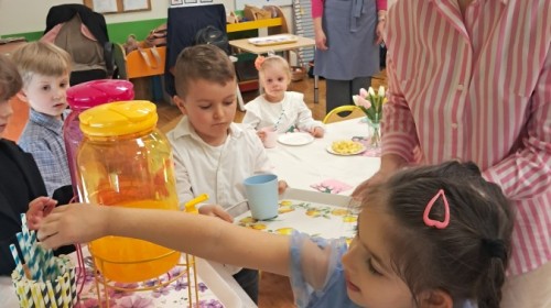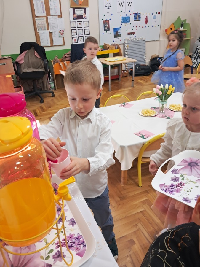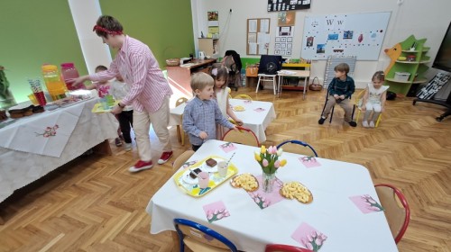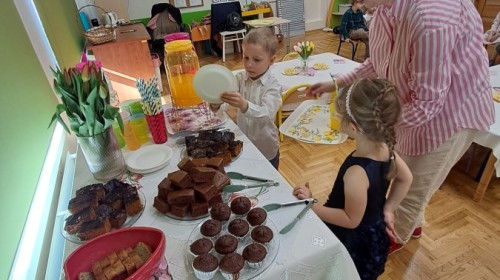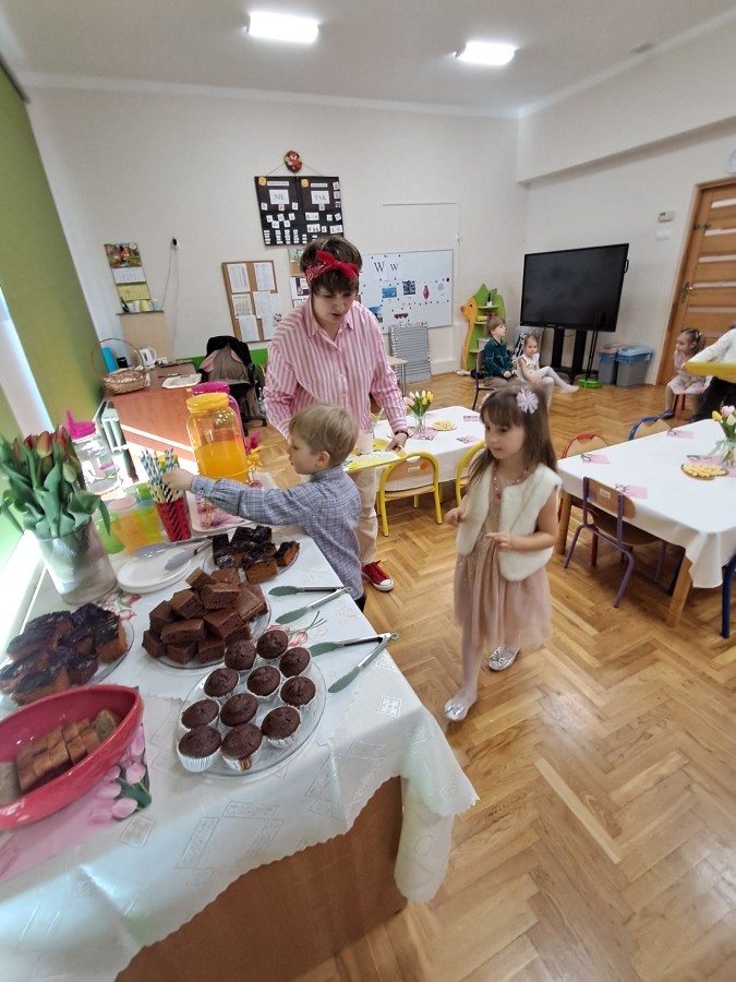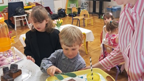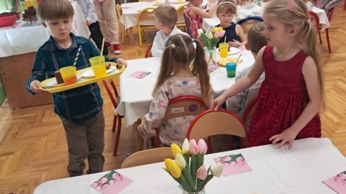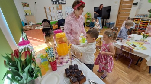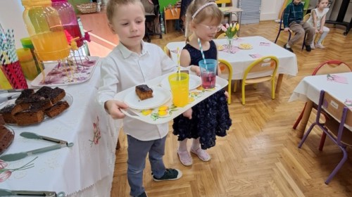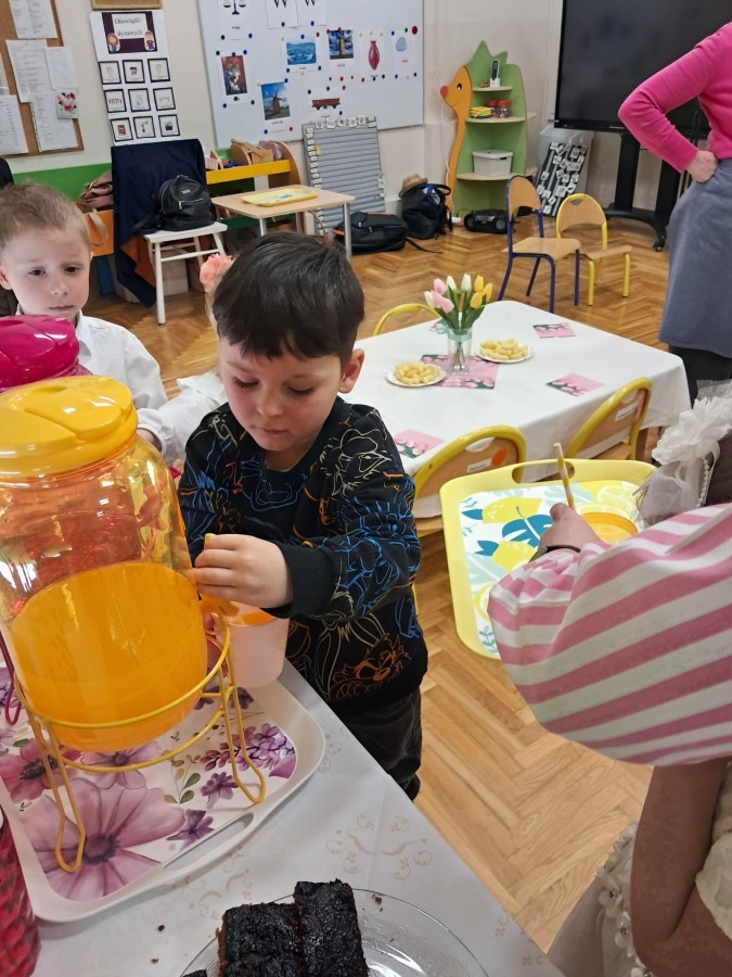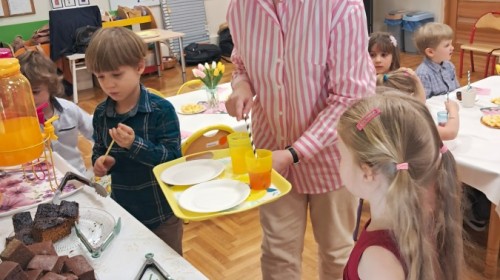 Z okazji Dnia Kobiet u Lisków odbyła się kawiarenka ,,Cafe Tulipanek". Wszystkim Dziewczynkom i Paniom chłopcy złożyli życzenia, wręczyli laurki i tulipanki, oraz zaprosili na poczęstunek do kawiarenki.