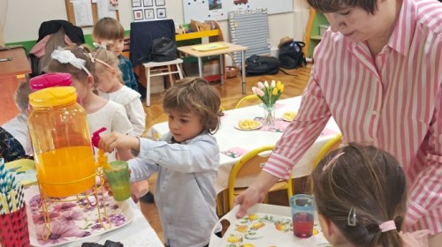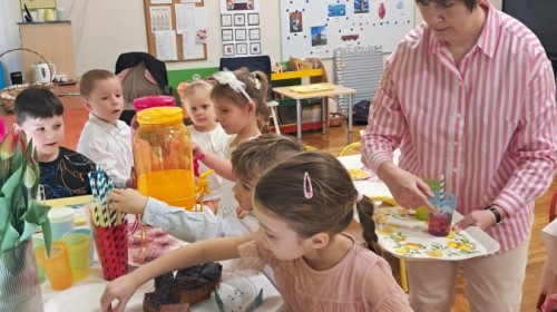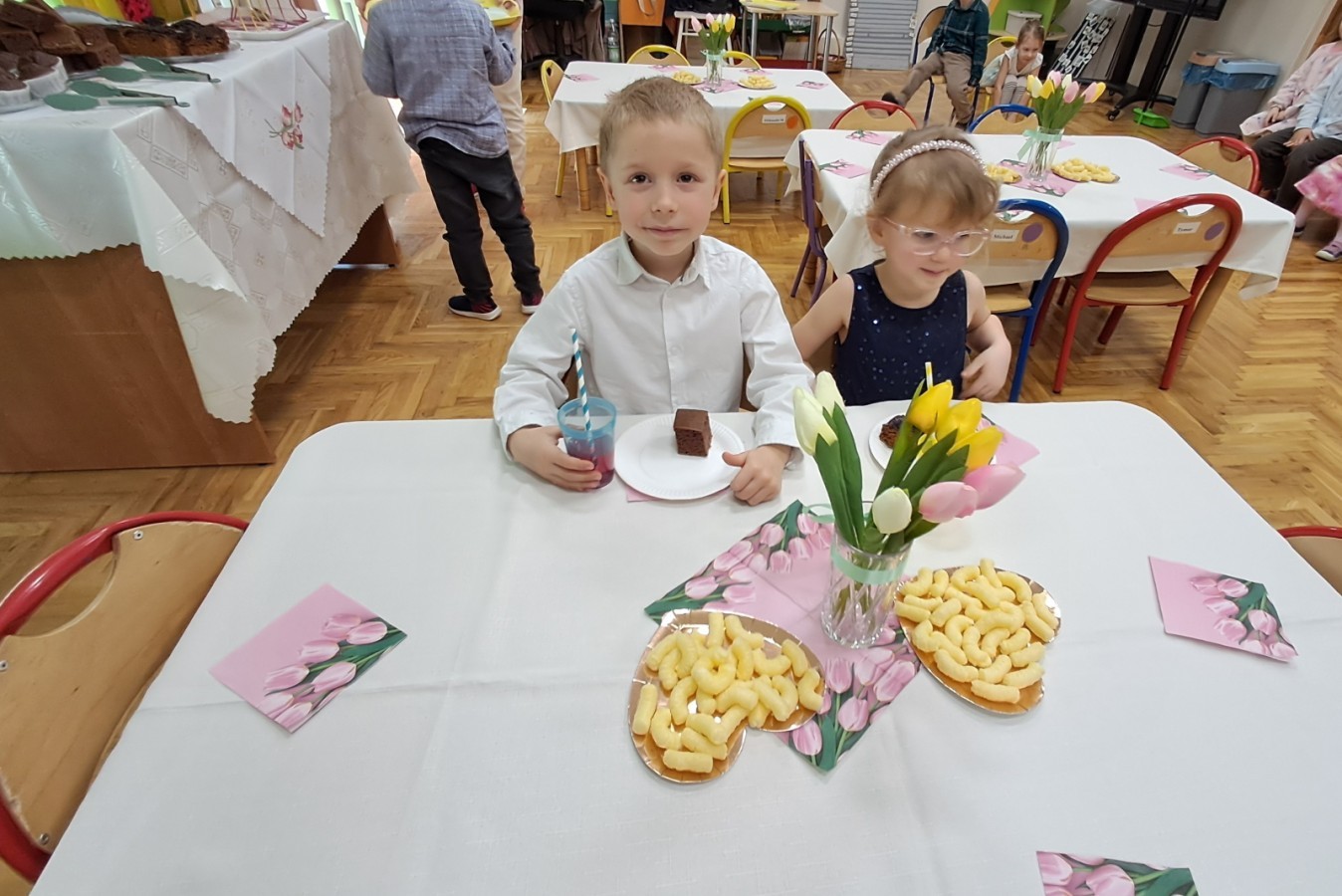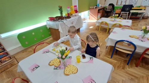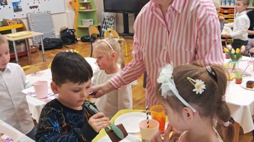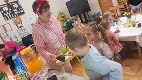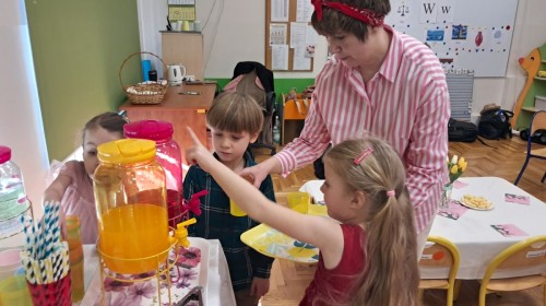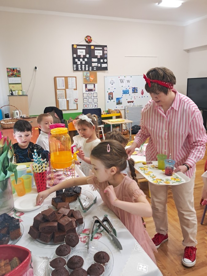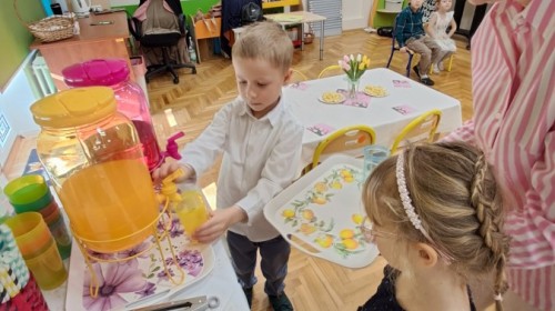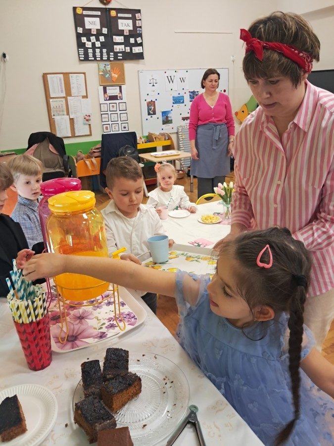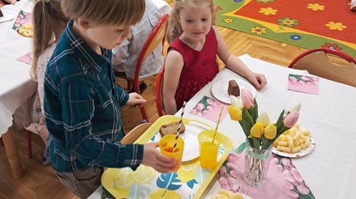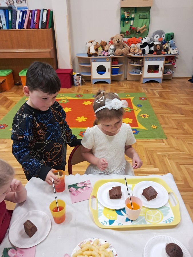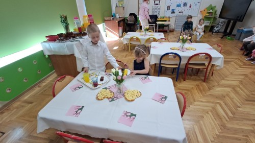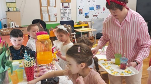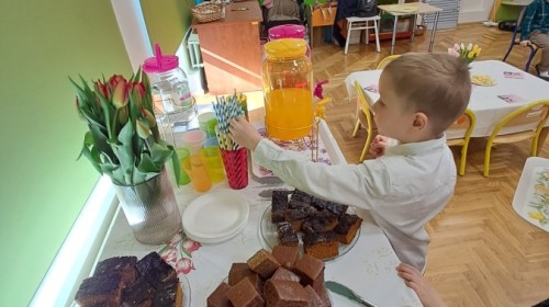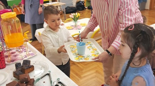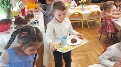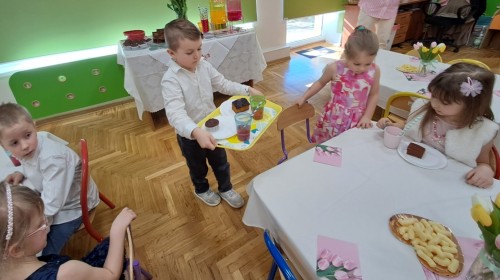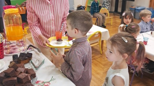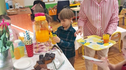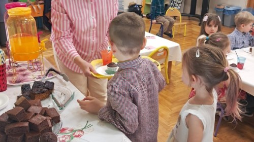 Z okazji Dnia Kobiet u Lisków odbyła się kawiarenka ,,Cafe Tulipanek". Wszystkim Dziewczynkom i Paniom chłopcy złożyli życzenia, wręczyli laurki i tulipanki, oraz zaprosili na poczęstunek do kawiarenki.