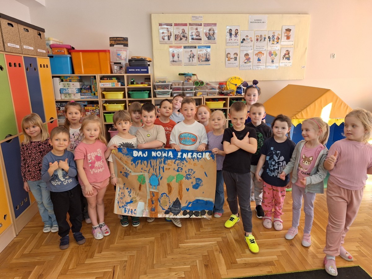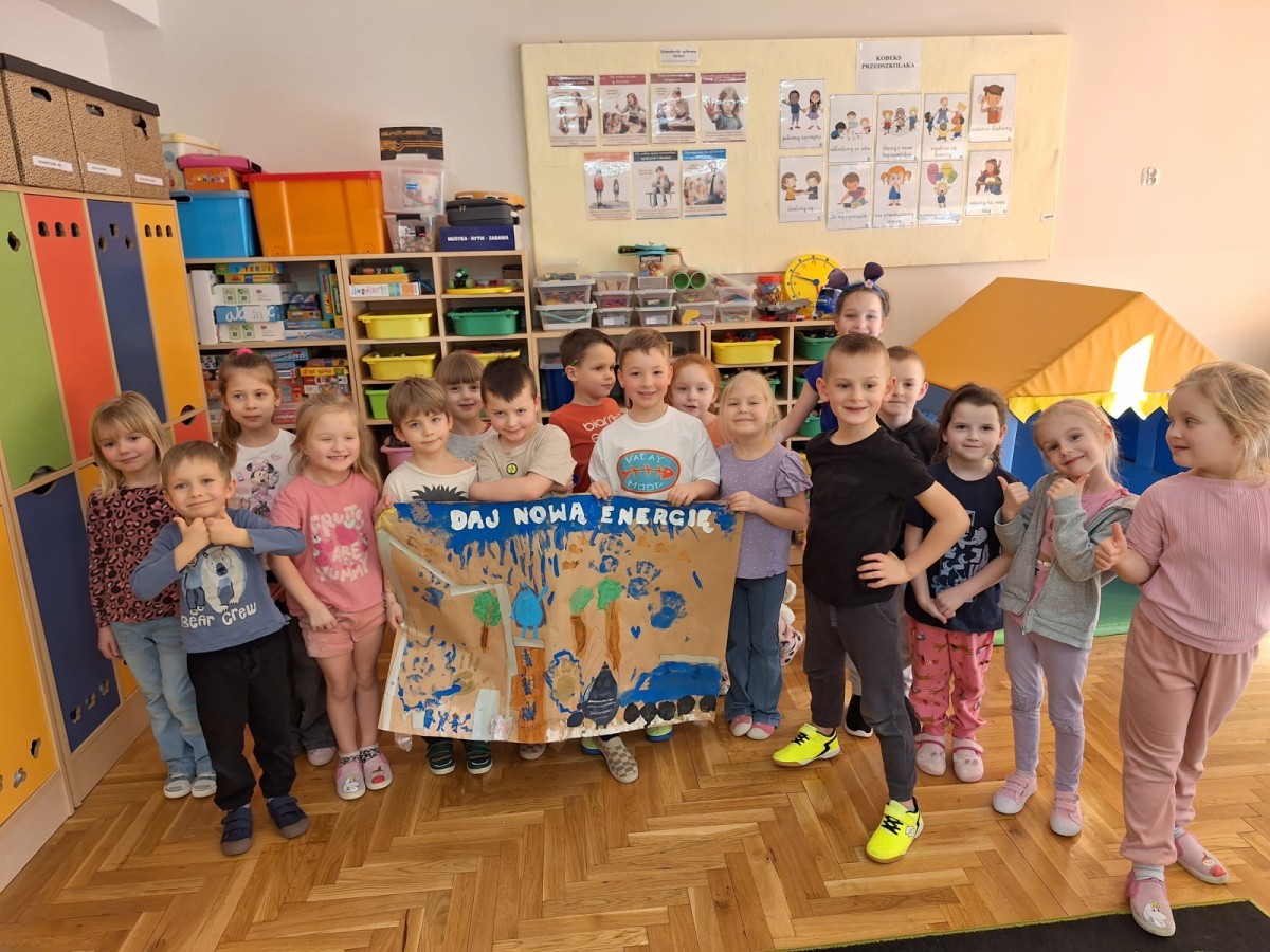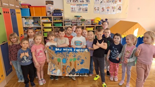 Nasze Jeżyki wykonały plakat edukacyjny o tematyce ekologicznej ,,Dają nową energię'' w ramach Kampanii promocyjno-edukacyjnej ,,Bielsko-Biała Chroni Klimat.