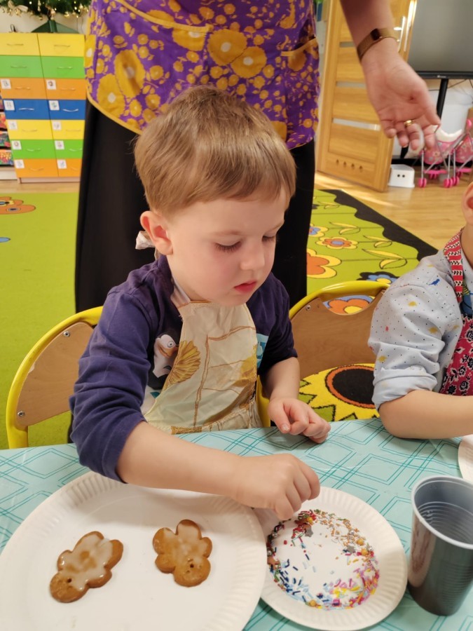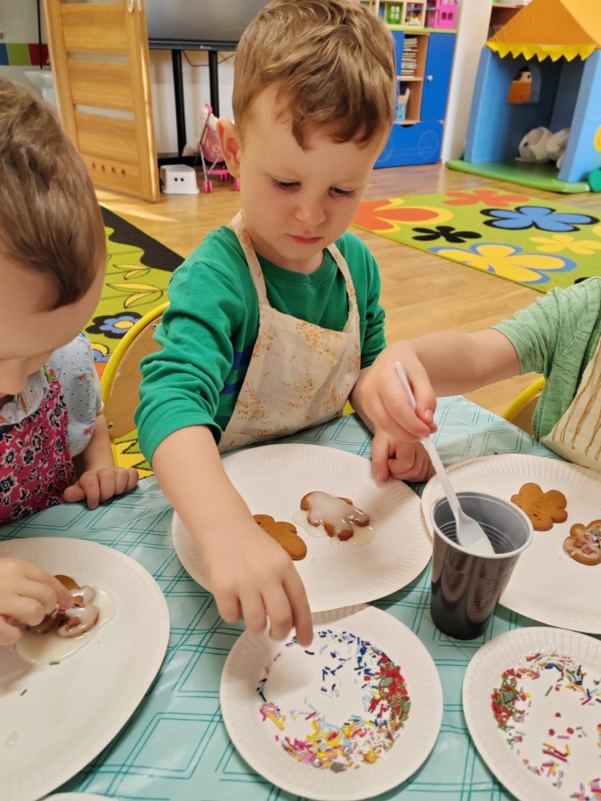 Przedświąteczny czas to doskonała okazja do zajęć kulinarnych podczas których Biedroneczki z radością ozdabiały pierniczki. Najpierw samodzielnie przygotowały lukier, a następnie dekorowały ciasteczka według własnych pomysłów, ćwicząc kreatywność i sprawność manualną. Zajęcia dostarczyły dużo radości i świątecznej atmosfery. Zapraszamy do obejrzenia foto relacji .