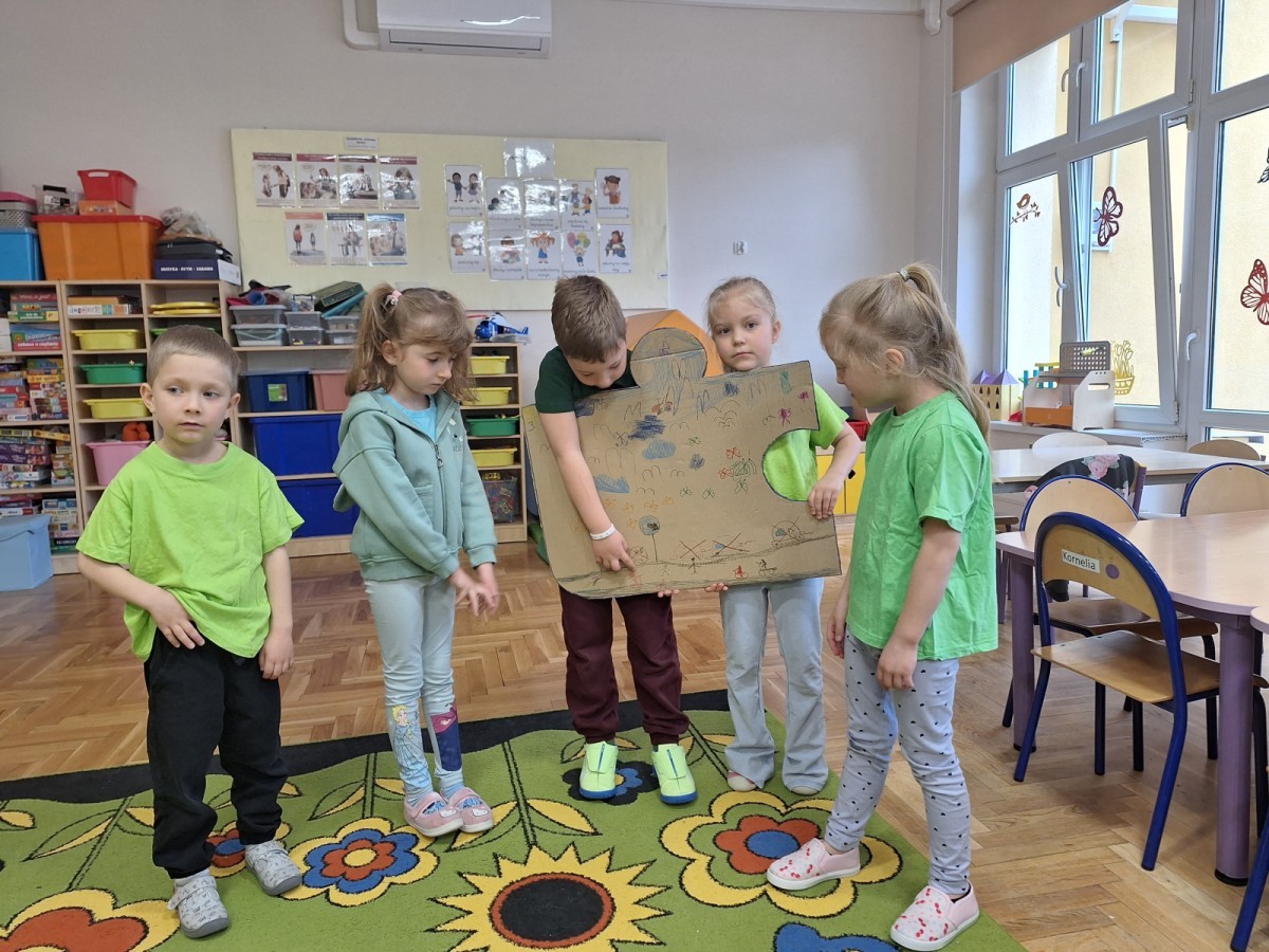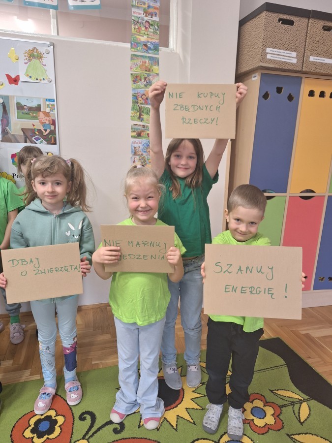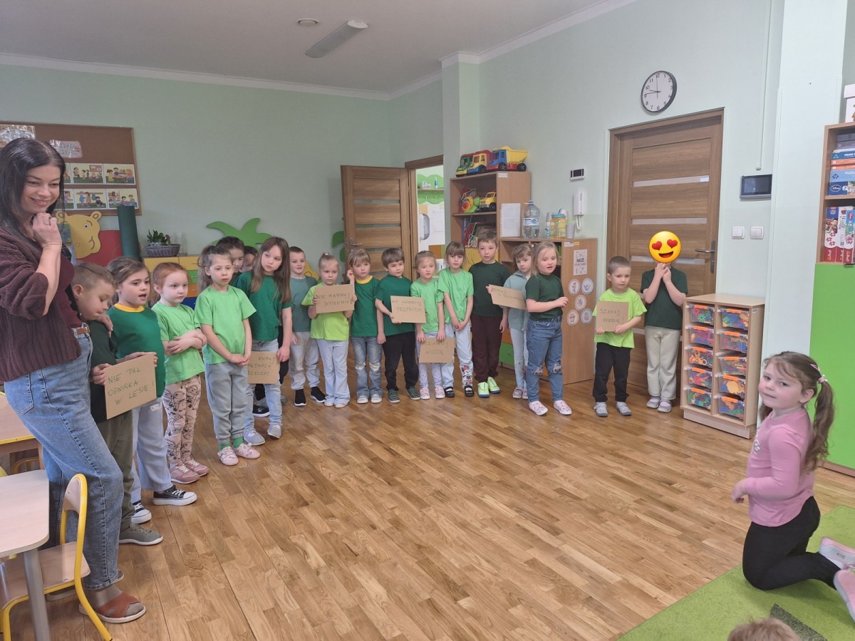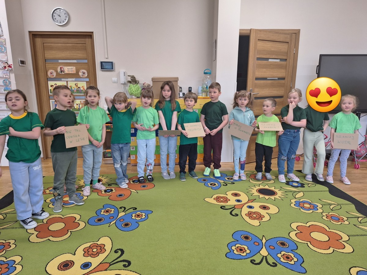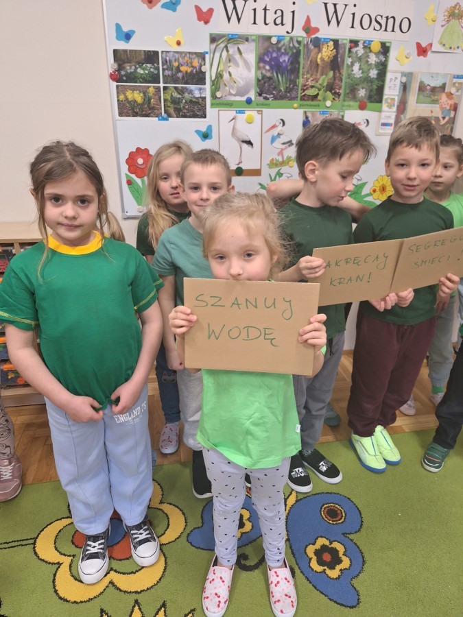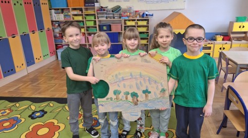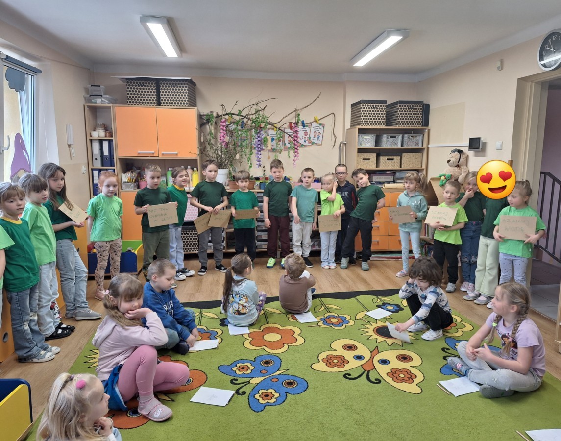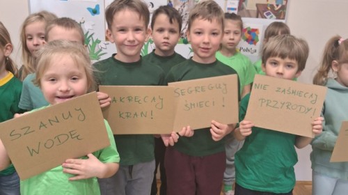 Od września nasze przedszkolaki brały udział w konkursie dla szkół i przedszkoli „Szanuj Energię, Chroń Klimat”. W kolejnych miesiącach wykonywały zadania konkursowe, a zdjęcia i opisy tych wydarzeń można zobaczyć w naszej galerii. 28 marca miało miejsce Eko wydarzenie – czyli podsumowanie wszystkich działań ekologicznych. Dzieci usystematyzowały zdobytą wiedzę na temat ekologii, zrobiły eko puzzle obrazujące sposoby ochrony i dbania o przyrodę, zaprezentowały swoje prace, odśpiewały wymyśloną wspólnie piosenkę o wodzie( jej znaczeniu i sposobach jej oszczędzania), wymyślały eko hasła , a następnie przeszły ekologicznym marszem do wszystkich grup przedszkolnych promując ekologiczny styl życia i zachęcając do dbania o przyrodę.