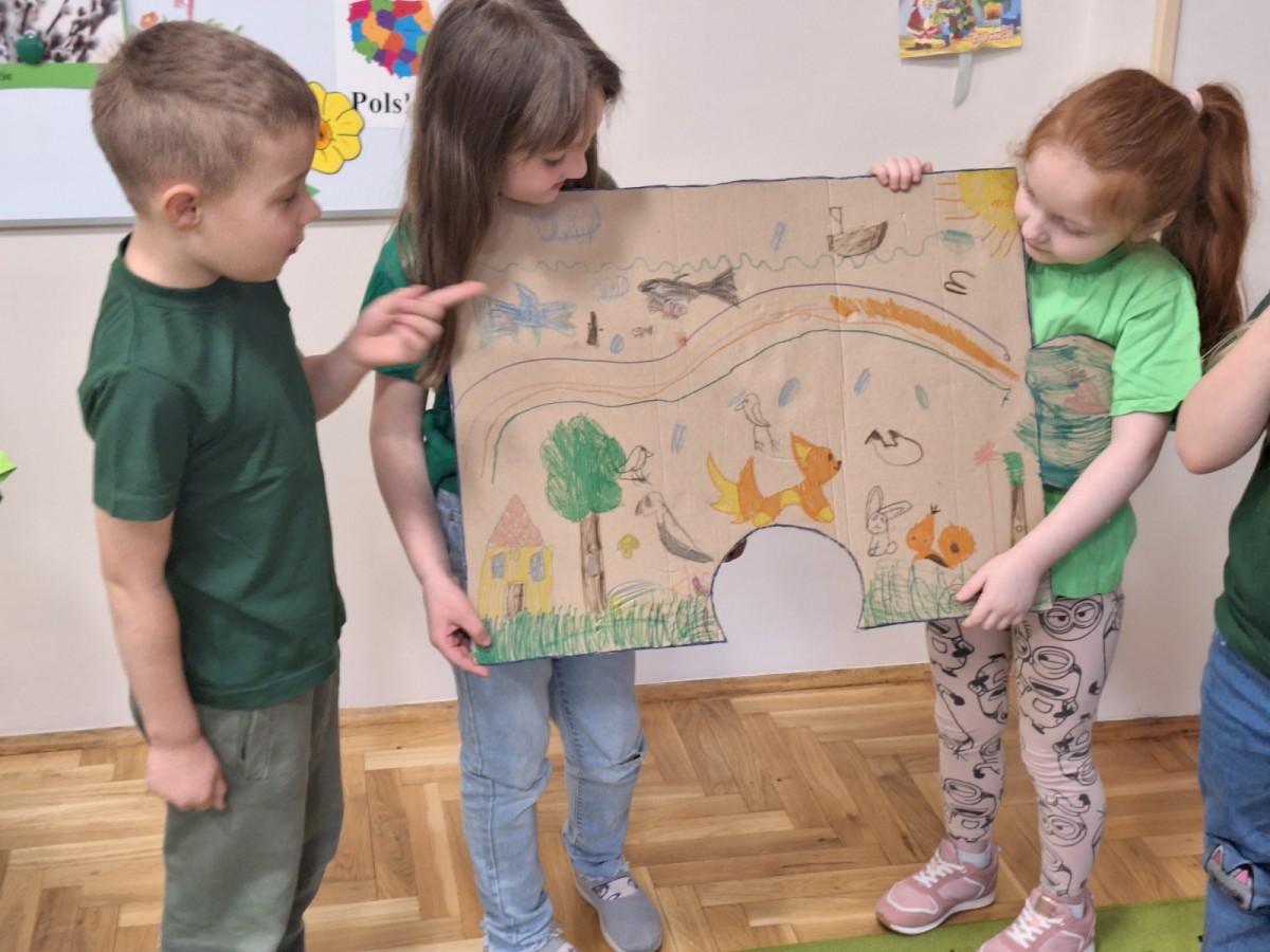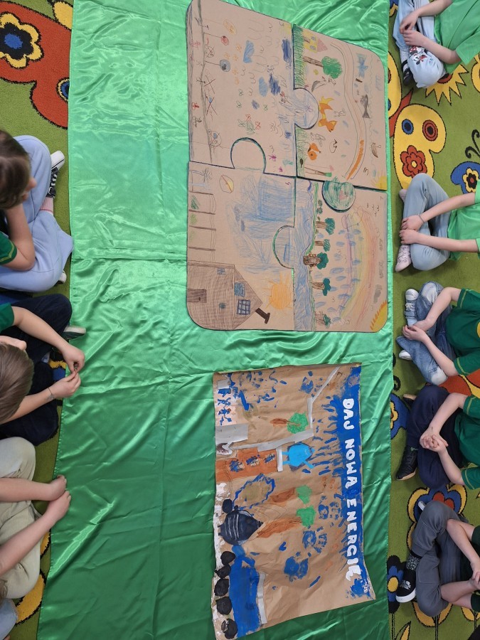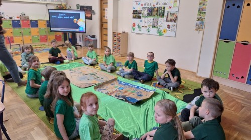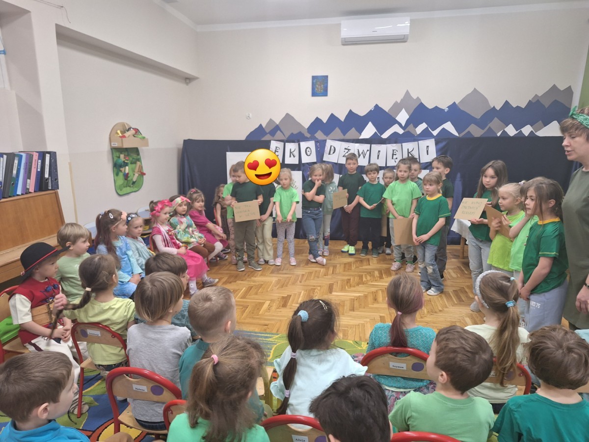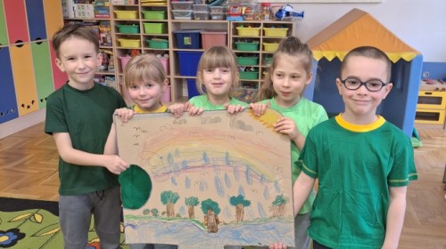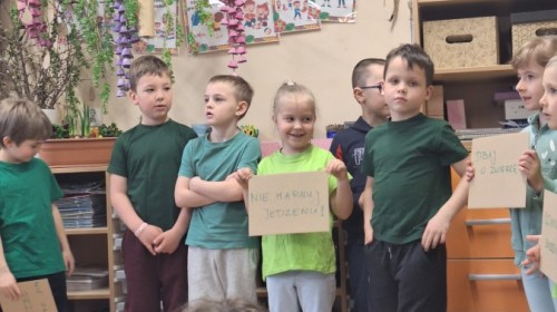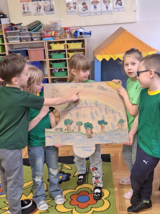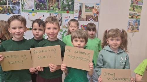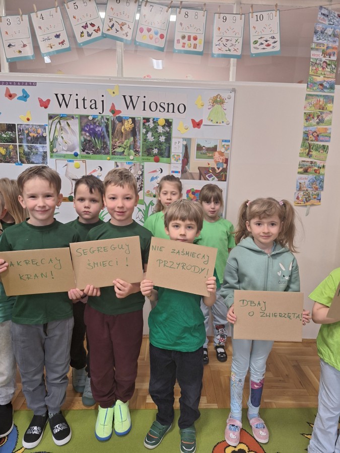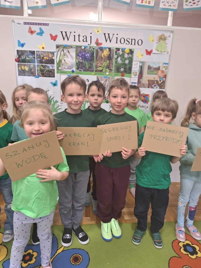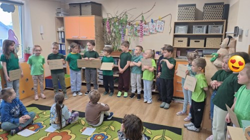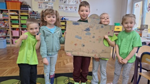 Od września nasze przedszkolaki brały udział w konkursie dla szkół i przedszkoli „Szanuj Energię, Chroń Klimat”. W kolejnych miesiącach wykonywały zadania konkursowe, a zdjęcia i opisy tych wydarzeń można zobaczyć w naszej galerii. 28 marca miało miejsce Eko wydarzenie – czyli podsumowanie wszystkich działań ekologicznych. Dzieci usystematyzowały zdobytą wiedzę na temat ekologii, zrobiły eko puzzle obrazujące sposoby ochrony i dbania o przyrodę, zaprezentowały swoje prace, odśpiewały wymyśloną wspólnie piosenkę o wodzie( jej znaczeniu i sposobach jej oszczędzania), wymyślały eko hasła , a następnie przeszły ekologicznym marszem do wszystkich grup przedszkolnych promując ekologiczny styl życia i zachęcając do dbania o przyrodę.