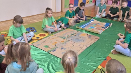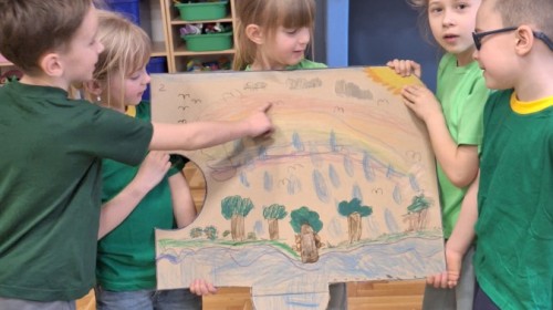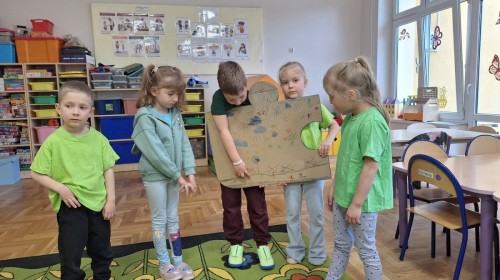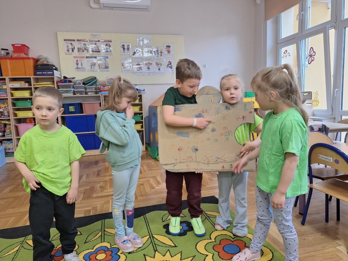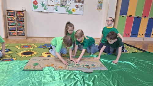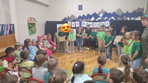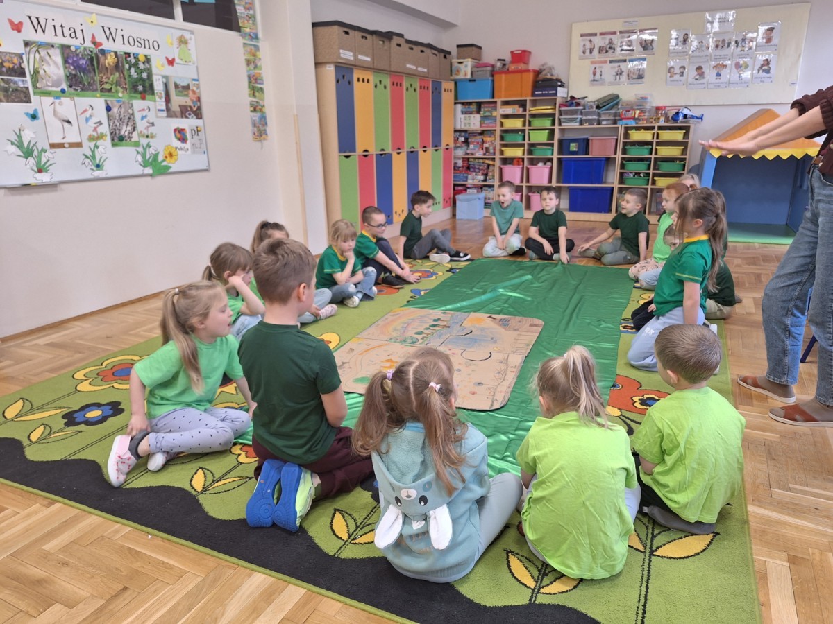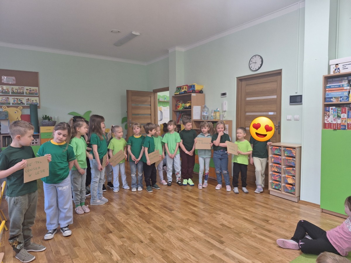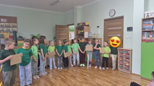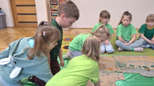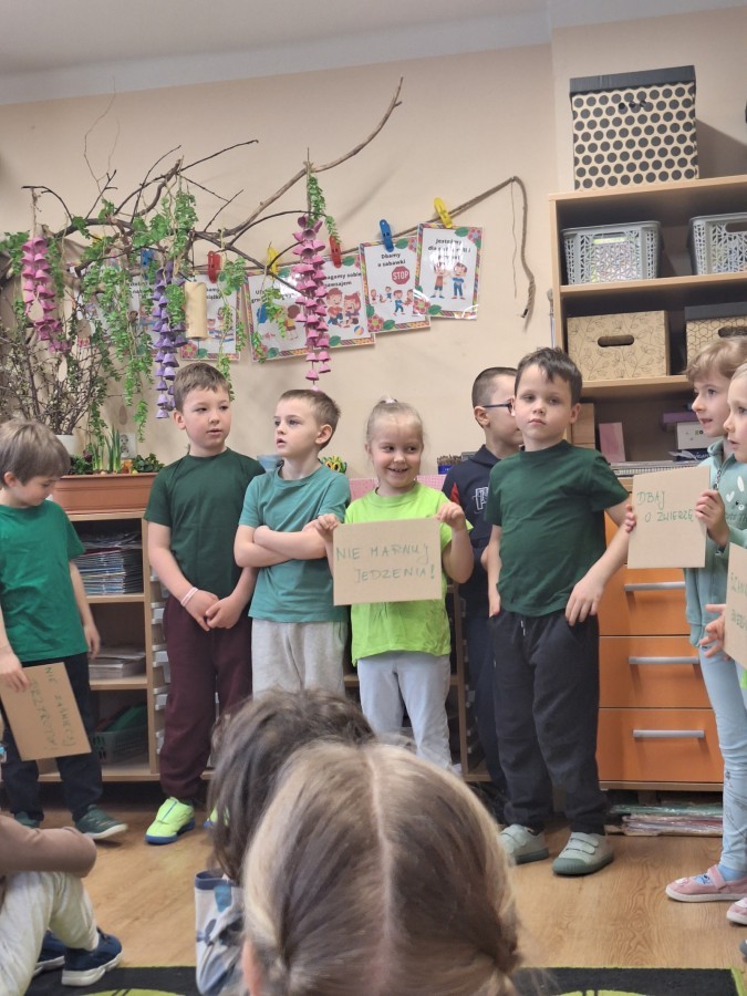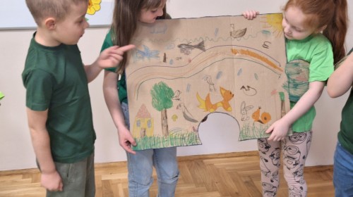 Od września nasze przedszkolaki brały udział w konkursie dla szkół i przedszkoli „Szanuj Energię, Chroń Klimat”. W kolejnych miesiącach wykonywały zadania konkursowe, a zdjęcia i opisy tych wydarzeń można zobaczyć w naszej galerii. 28 marca miało miejsce Eko wydarzenie – czyli podsumowanie wszystkich działań ekologicznych. Dzieci usystematyzowały zdobytą wiedzę na temat ekologii, zrobiły eko puzzle obrazujące sposoby ochrony i dbania o przyrodę, zaprezentowały swoje prace, odśpiewały wymyśloną wspólnie piosenkę o wodzie( jej znaczeniu i sposobach jej oszczędzania), wymyślały eko hasła , a następnie przeszły ekologicznym marszem do wszystkich grup przedszkolnych promując ekologiczny styl życia i zachęcając do dbania o przyrodę.