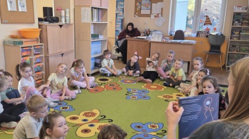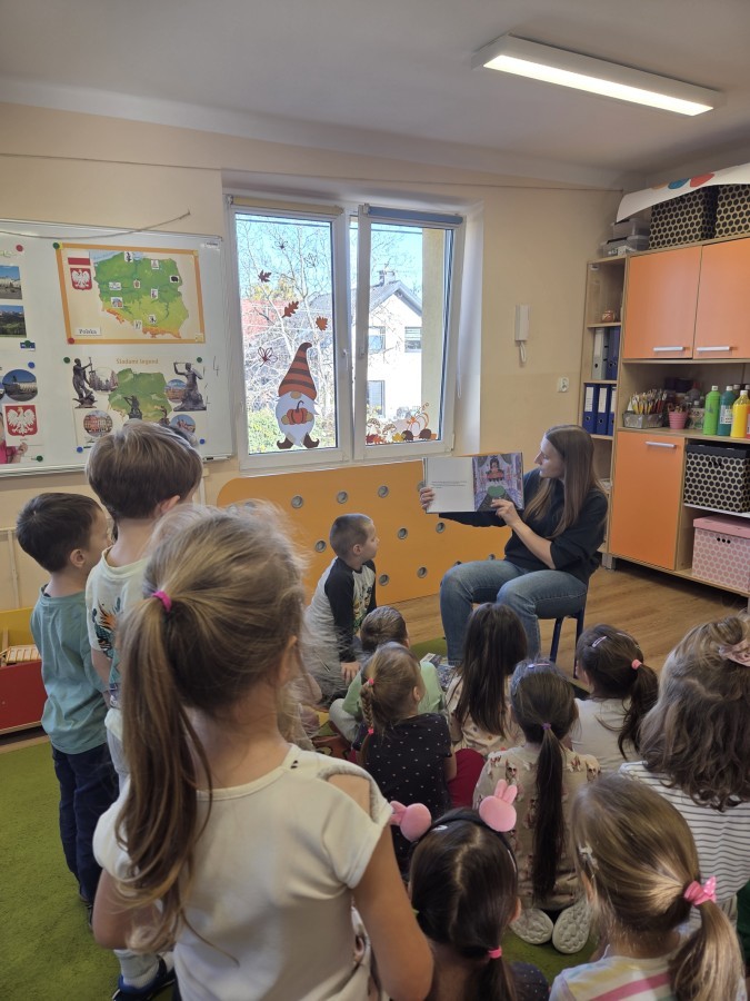 4 listopada odwiedziła nasze przedszkole pani bibliotekarka z Książnicy Beskidzkiej. Dzieci wzięły udział w zajęciach bibliotecznych promujących czytelnictwo.