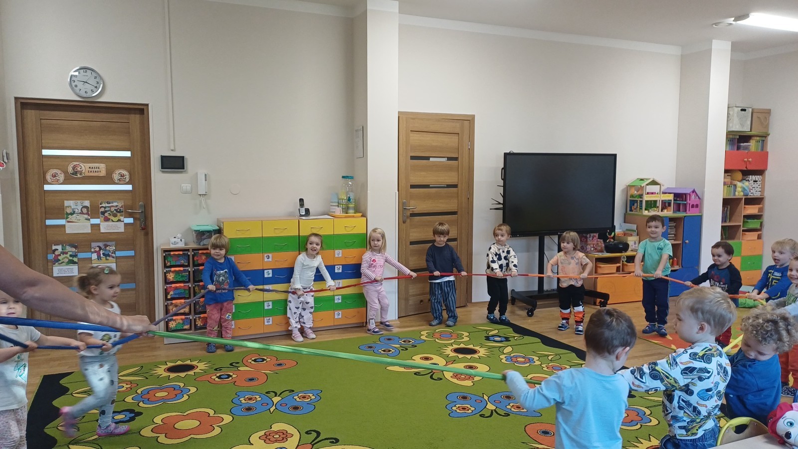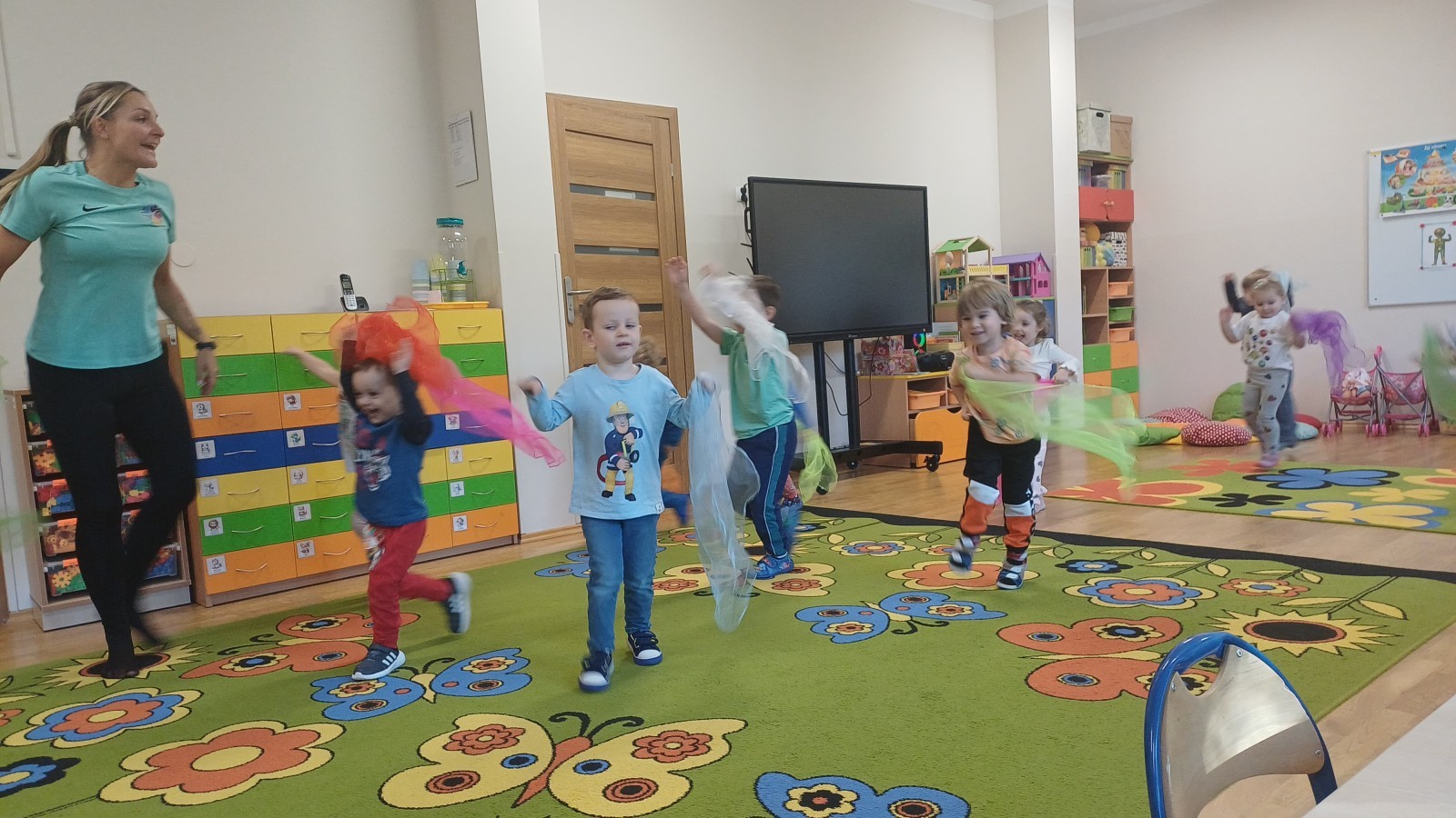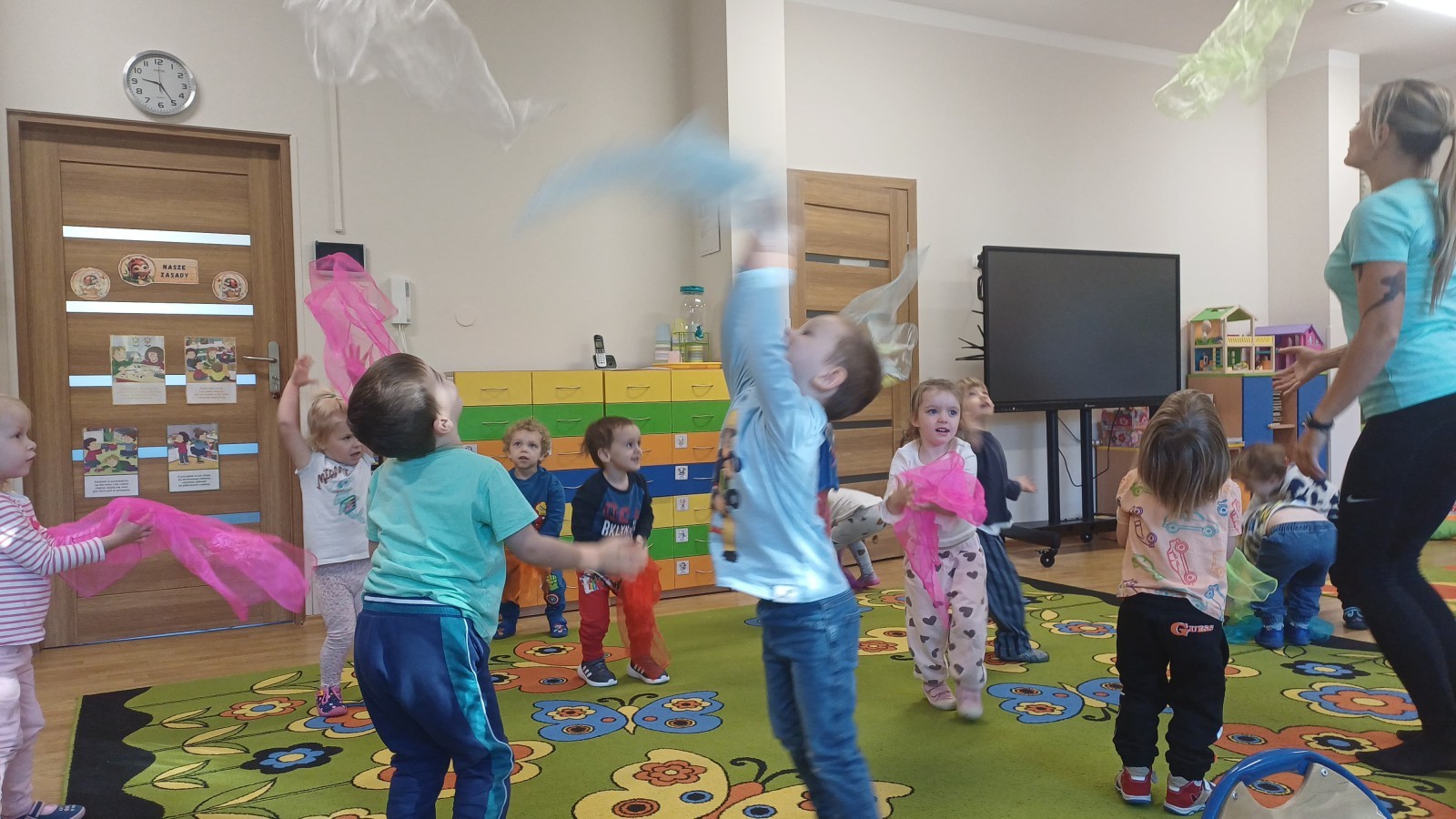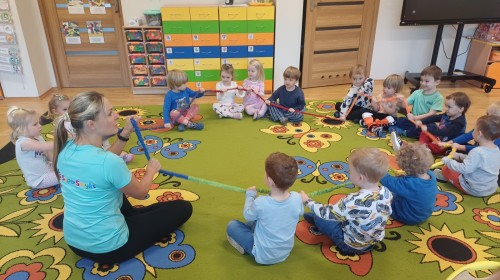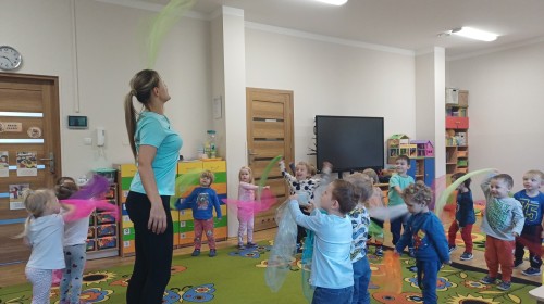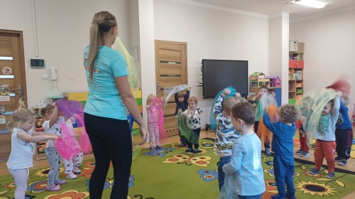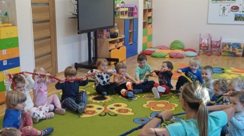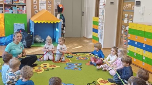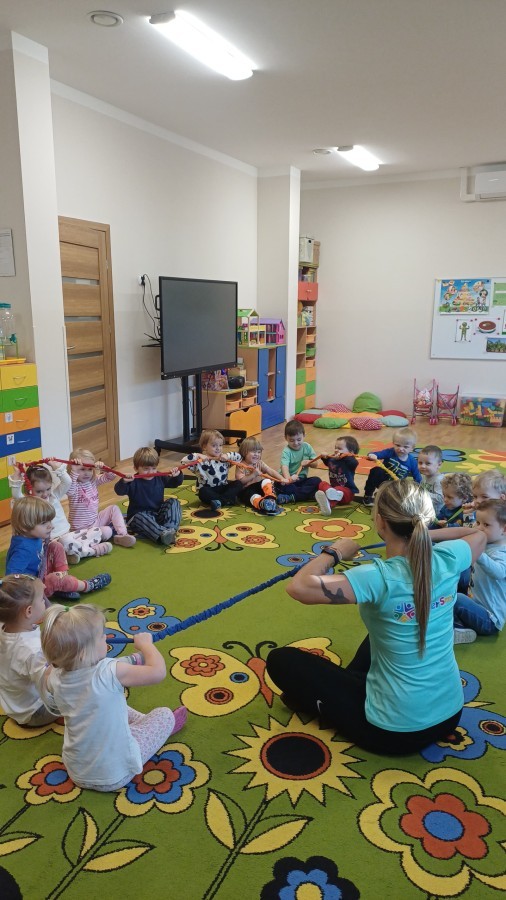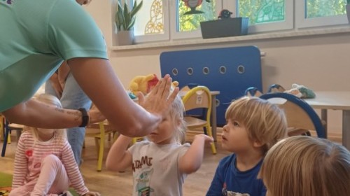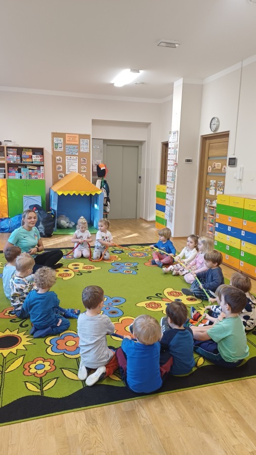 W dniu 20.10.2025 w grupie "Biedroneczek" odbyły się pokazowe zajęcia sportowe SUPER SMYKI. Pani Jagódka zorganizowała świetny tor przeszkód, dzieci bawiły się z gumą animacyjną, chustami animacyjnymi i mierzyły się z innymi sportowymi konkurencjami. Zajęcia w ruchu to aktywność, którą maluszki uwielbiają ;)