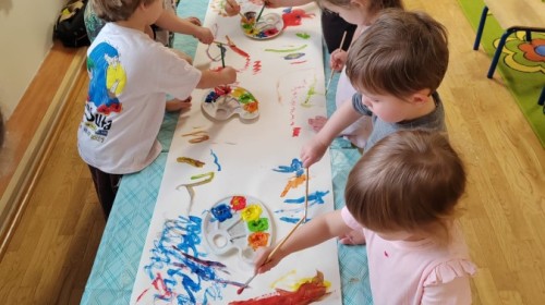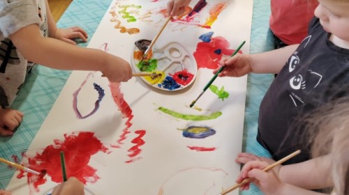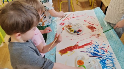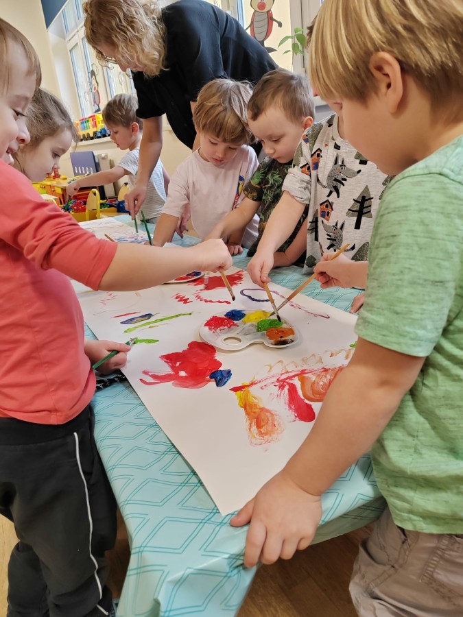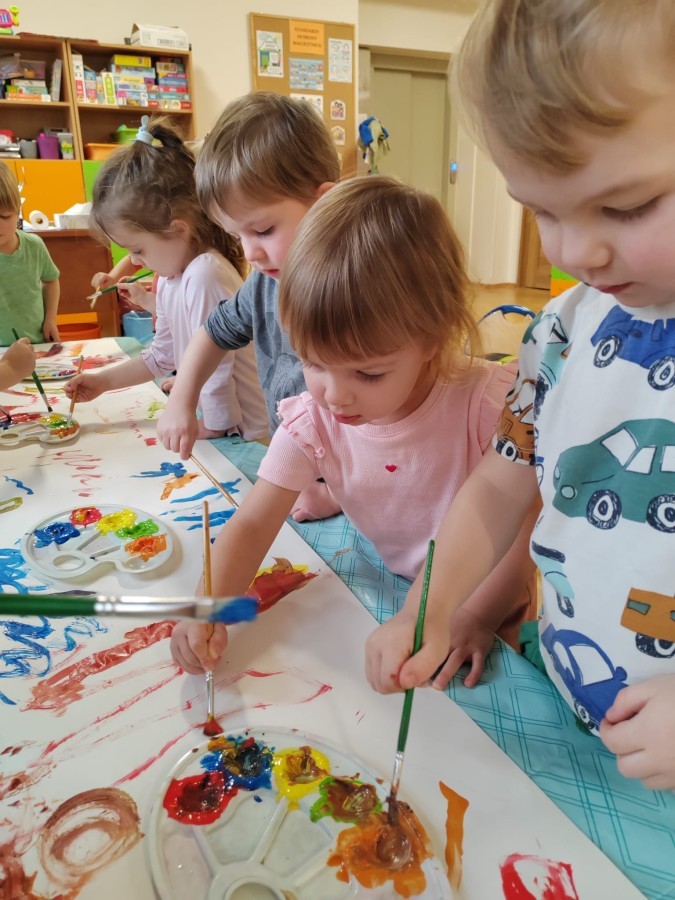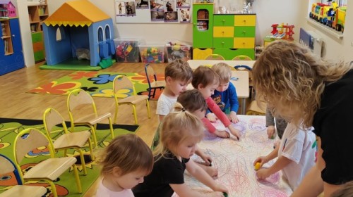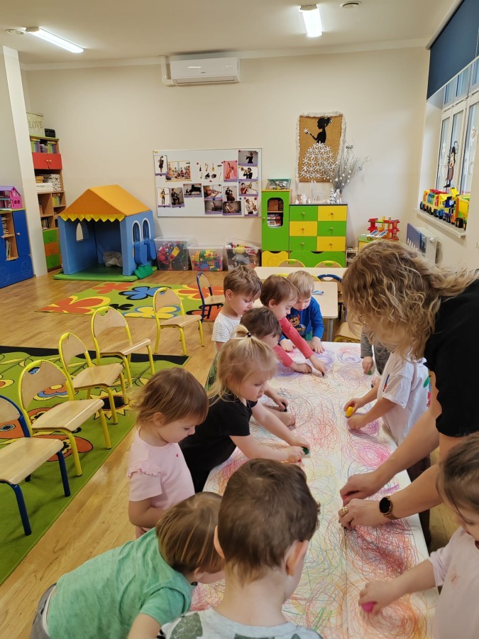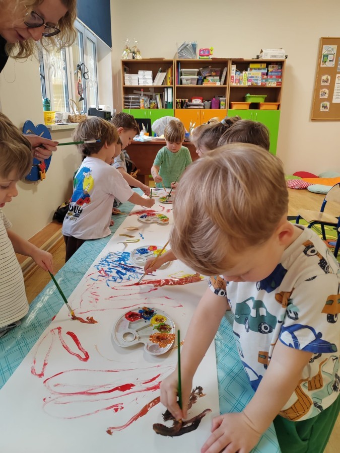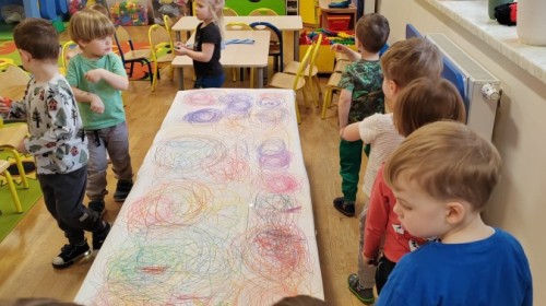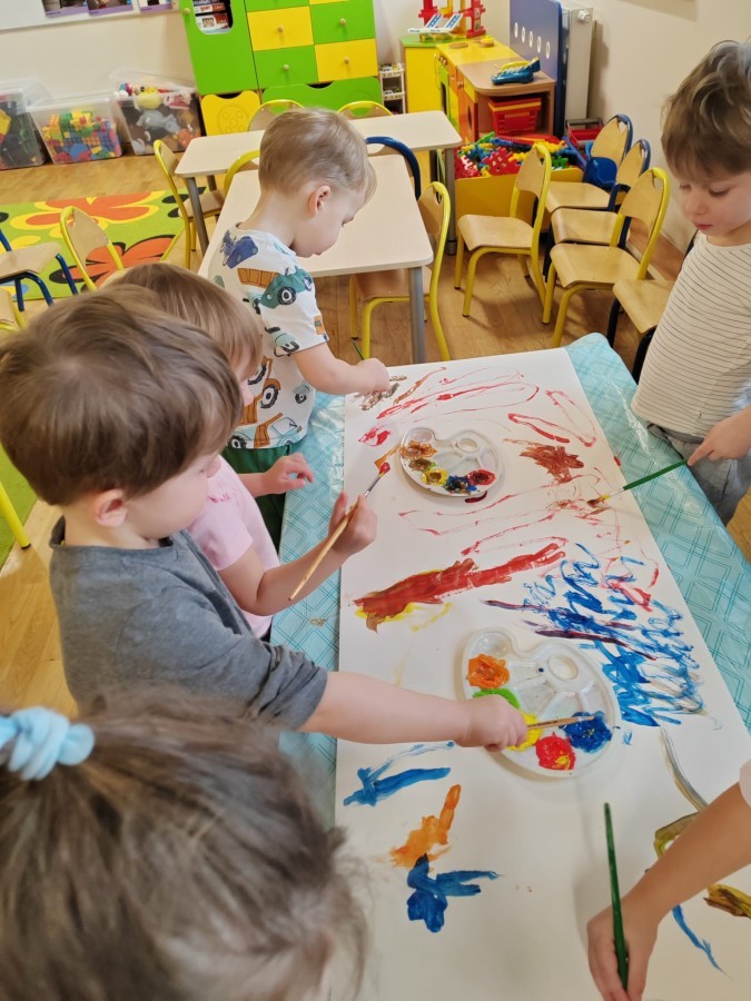 Grupa Biedronki w tym tygodniu przybliża się do pojęcia "muzyki". W dniu dzisiejszym dzieci słuchały utworów, a następnie łączyły słuchanie muzyki z ekspresją plastyczną. Jest to jedna z najskuteczniejszych metod rozwijania