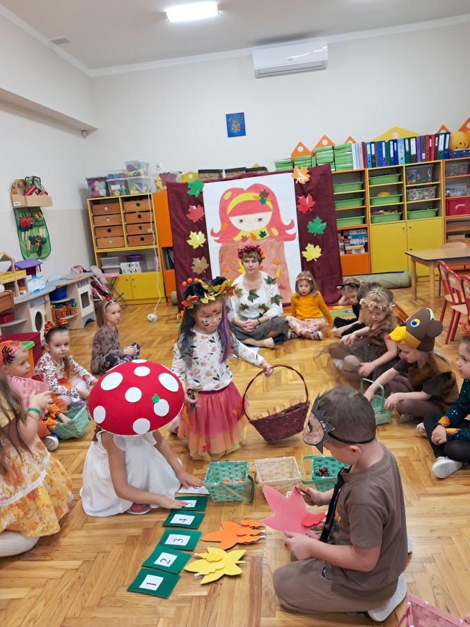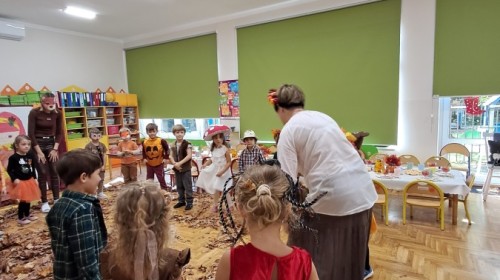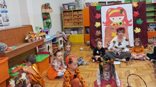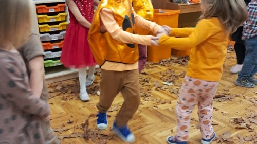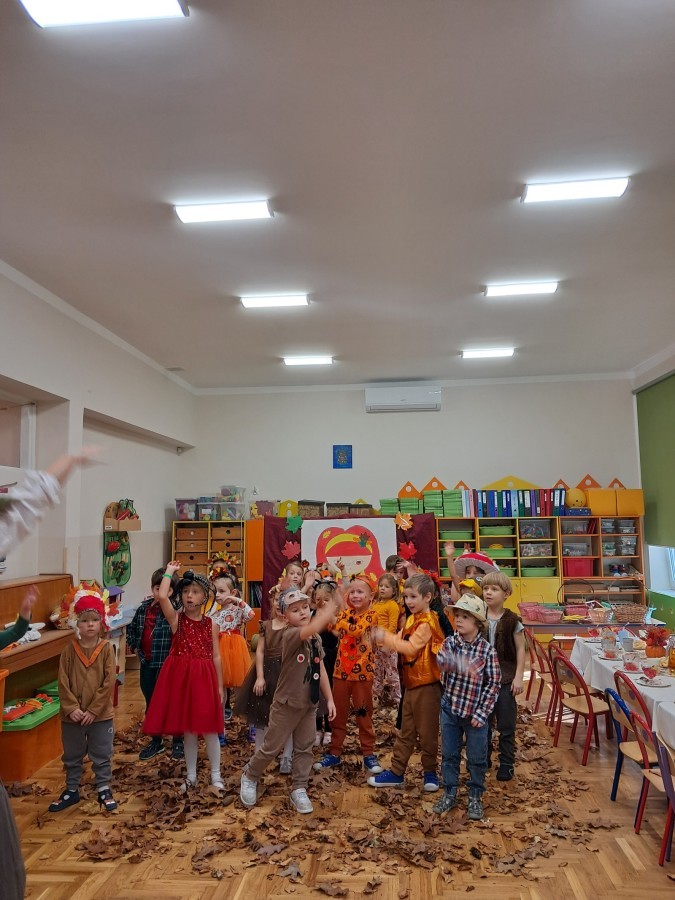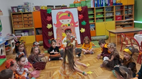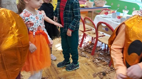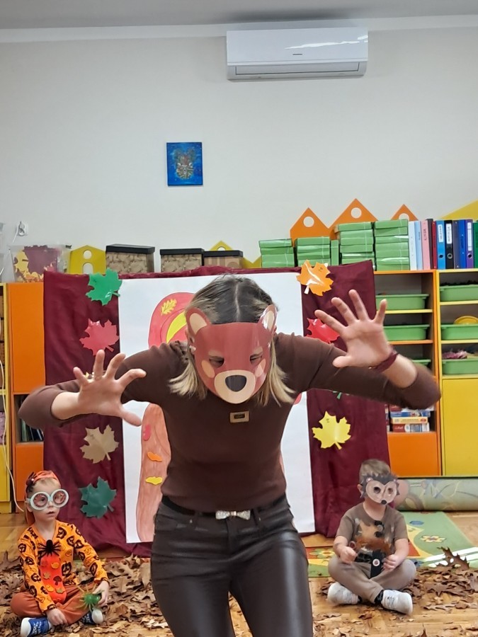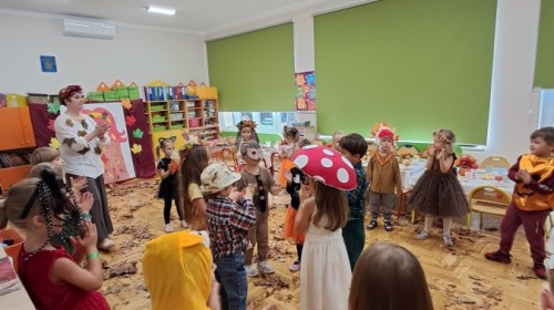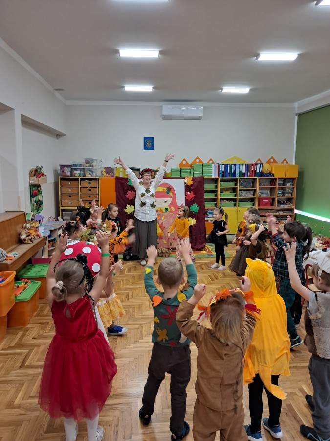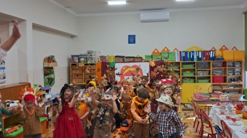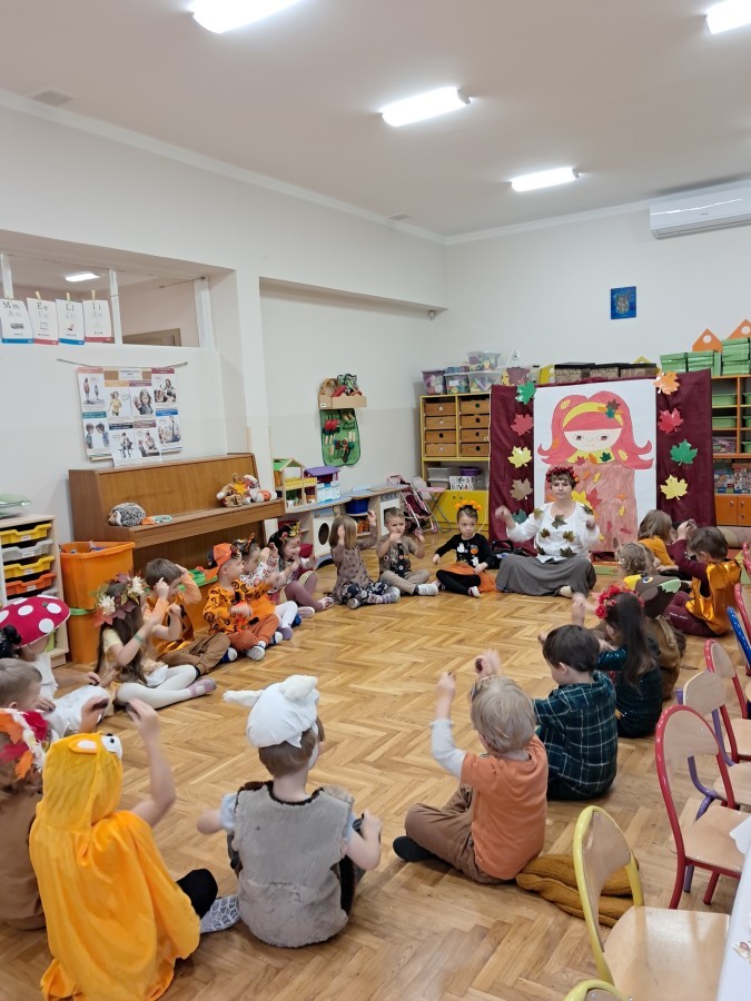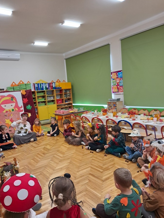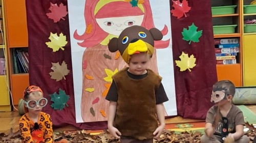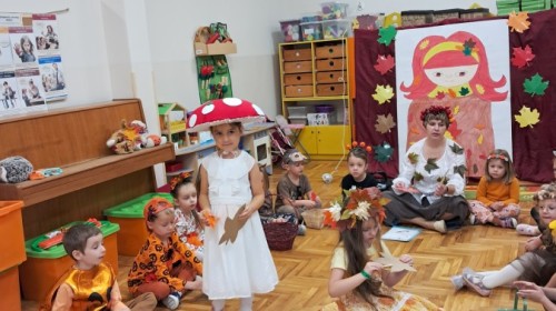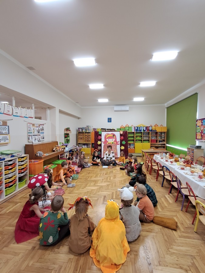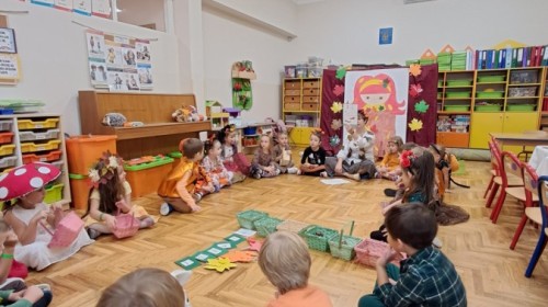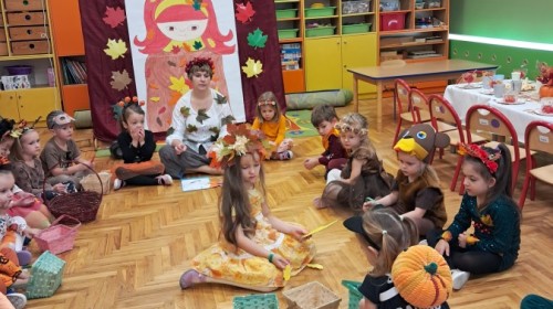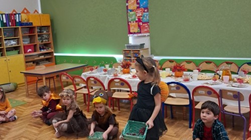 Wśród szeleszczących liści i przy dźwiękach jesiennych piosenek odbył się bal Lisków. Przygotowane zostały pyszne deserki z kolorową galaretką, pokaz mody jesiennej oraz zabawa taneczna. Liski policzyły skarby z koszyka Pani Jesieni, zagrały na kasztankach, pięknie zaprezentowały swoje stroje na wybiegu oraz super się bawiły. Kręciły piruety z Leśną Wróżką, ruszały skrzydełkami do Kaczuszek, tańczyły z Pszczółką Mają, a na koniec wsiadły do jesiennego pociągu i dojechały do stacji: Deserkowo.