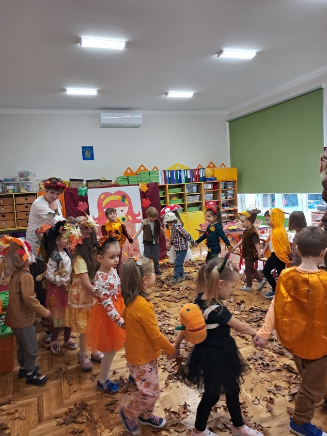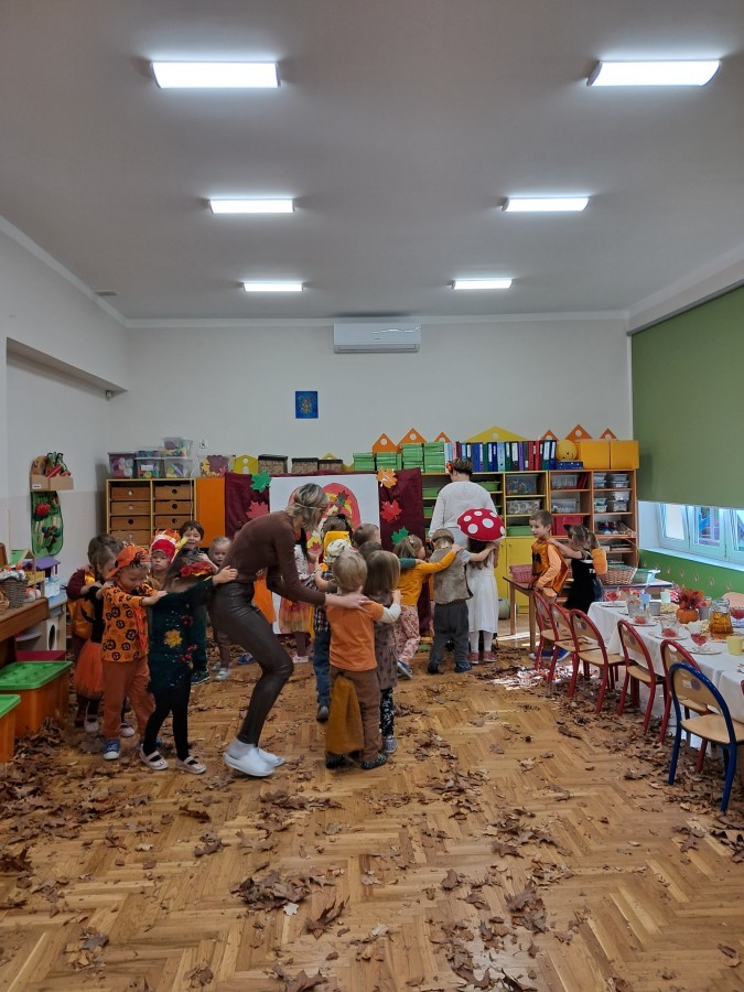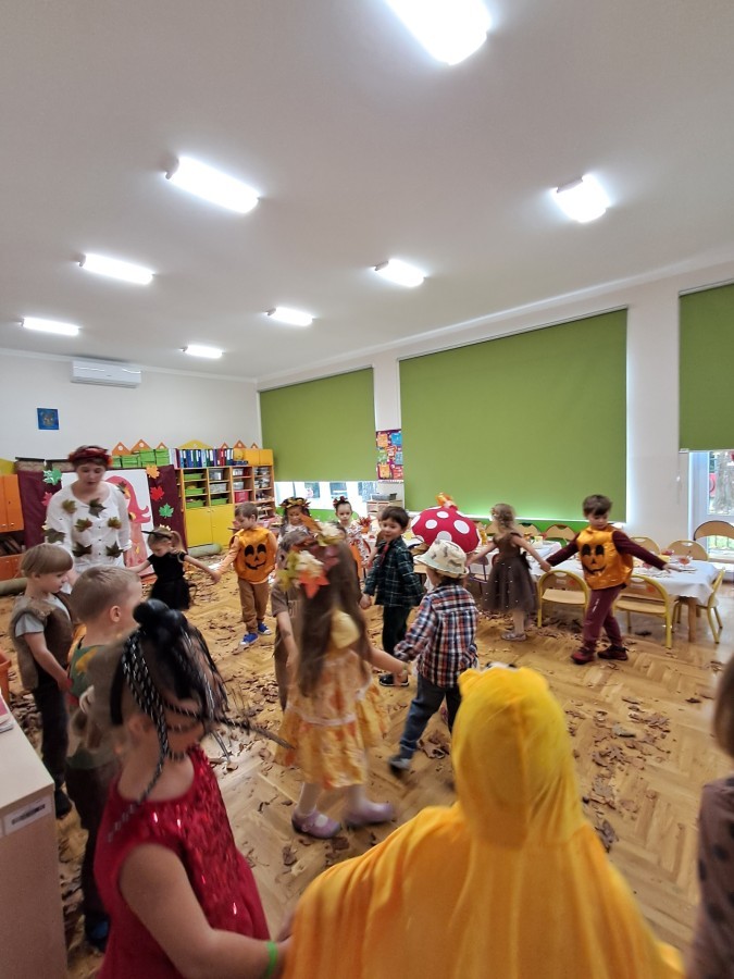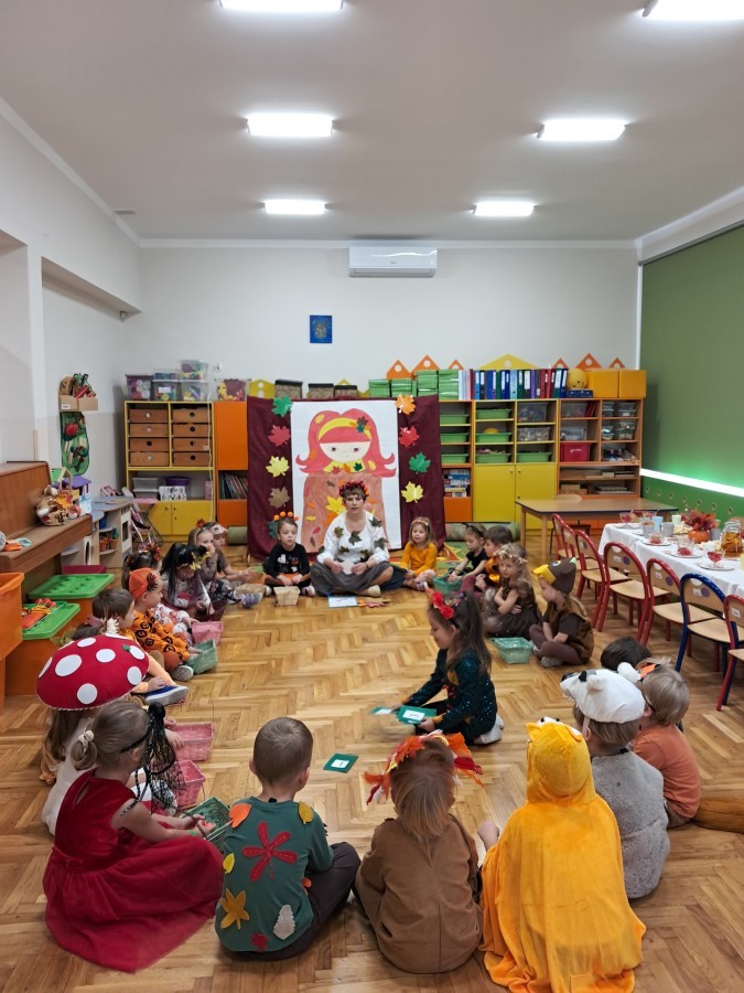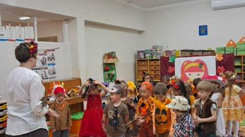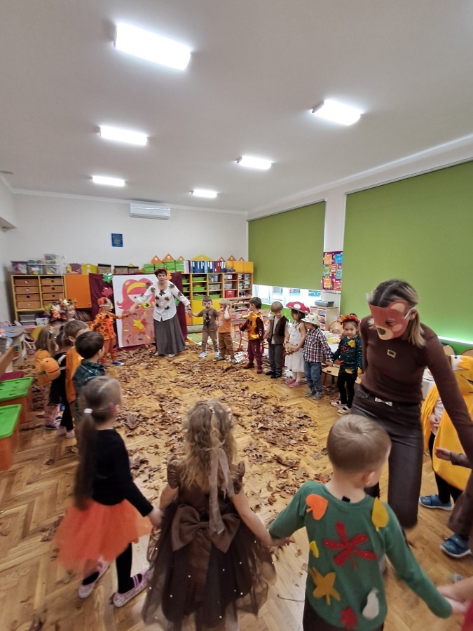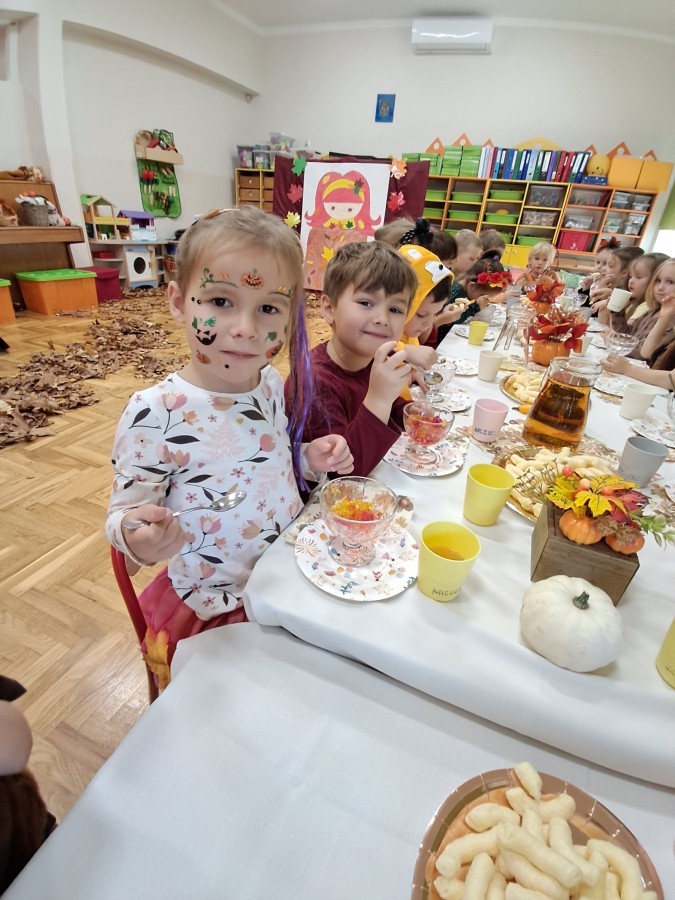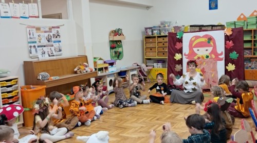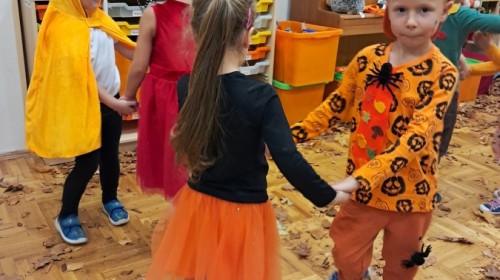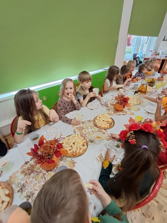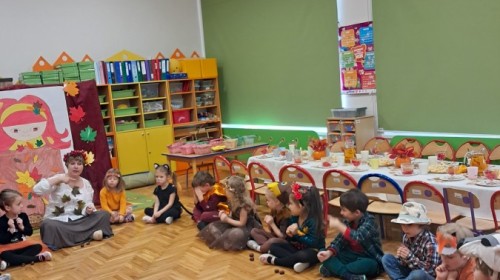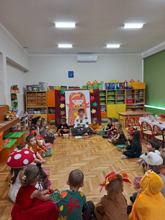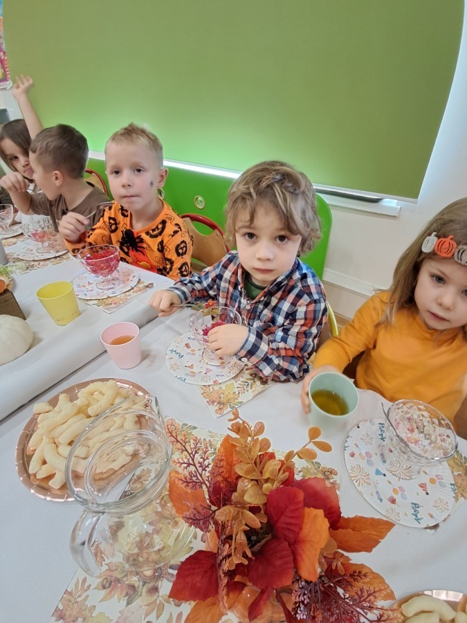 Wśród szeleszczących liści i przy dźwiękach jesiennych piosenek odbył się bal Lisków. Przygotowane zostały pyszne deserki z kolorową galaretką, pokaz mody jesiennej oraz zabawa taneczna. Liski policzyły skarby z koszyka Pani Jesieni, zagrały na kasztankach, pięknie zaprezentowały swoje stroje na wybiegu oraz super się bawiły. Kręciły piruety z Leśną Wróżką, ruszały skrzydełkami do Kaczuszek, tańczyły z Pszczółką Mają, a na koniec wsiadły do jesiennego pociągu i dojechały do stacji: Deserkowo.