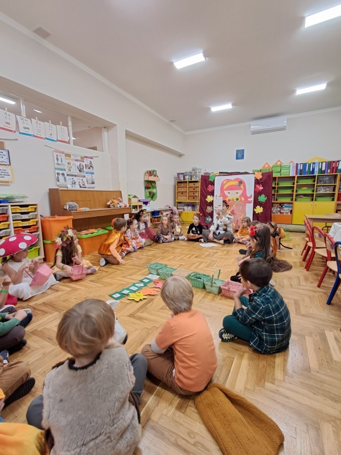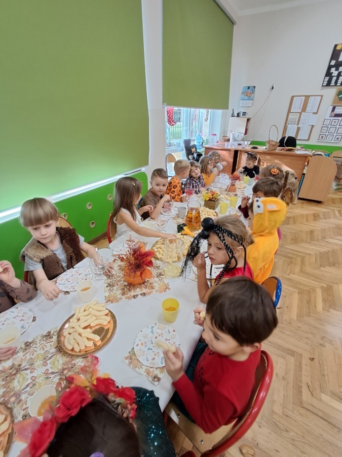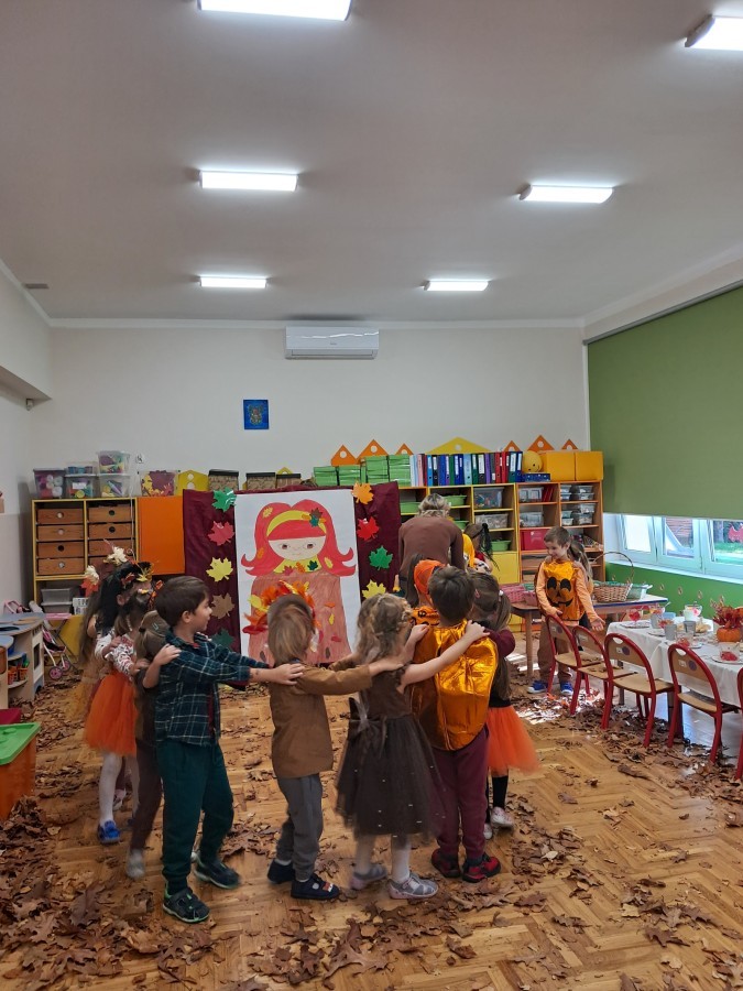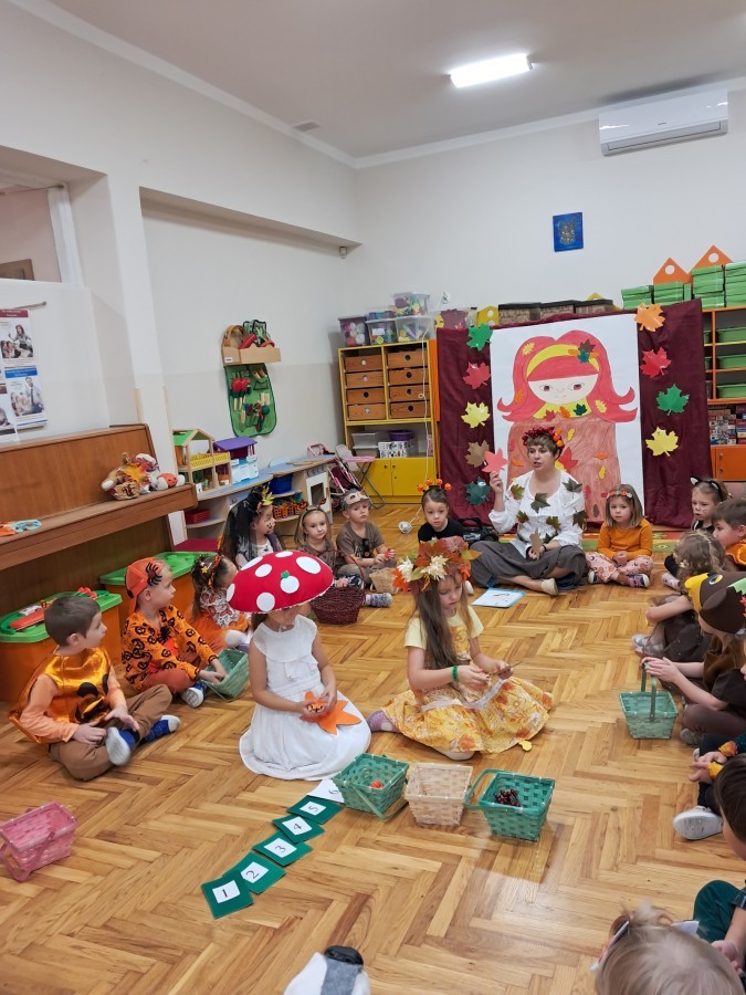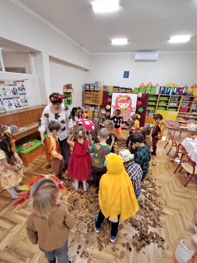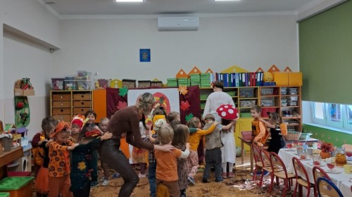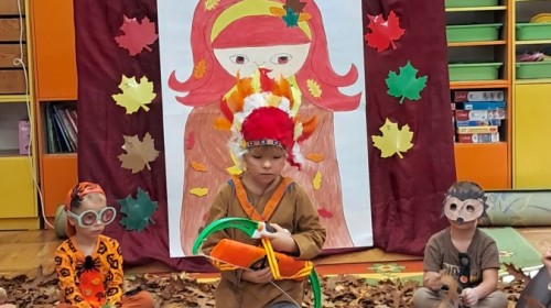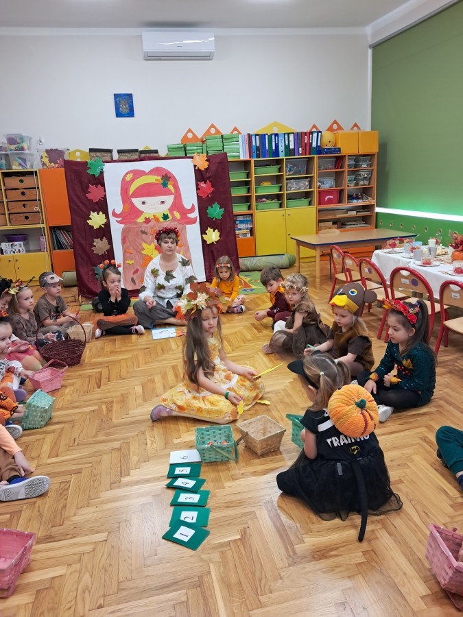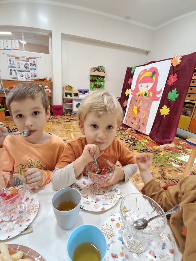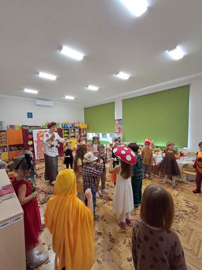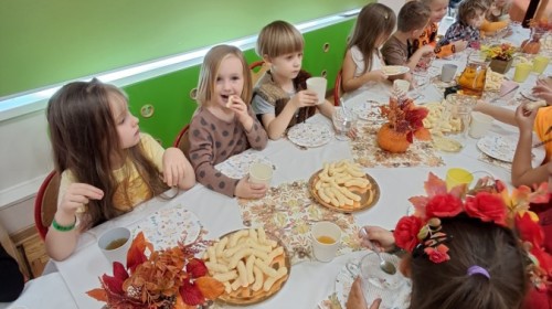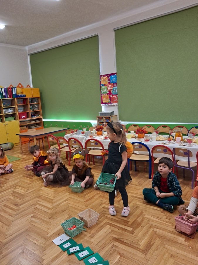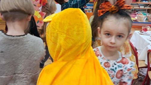 Wśród szeleszczących liści i przy dźwiękach jesiennych piosenek odbył się bal Lisków. Przygotowane zostały pyszne deserki z kolorową galaretką, pokaz mody jesiennej oraz zabawa taneczna. Liski policzyły skarby z koszyka Pani Jesieni, zagrały na kasztankach, pięknie zaprezentowały swoje stroje na wybiegu oraz super się bawiły. Kręciły piruety z Leśną Wróżką, ruszały skrzydełkami do Kaczuszek, tańczyły z Pszczółką Mają, a na koniec wsiadły do jesiennego pociągu i dojechały do stacji: Deserkowo.