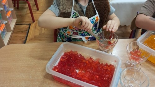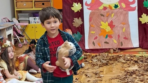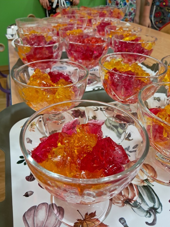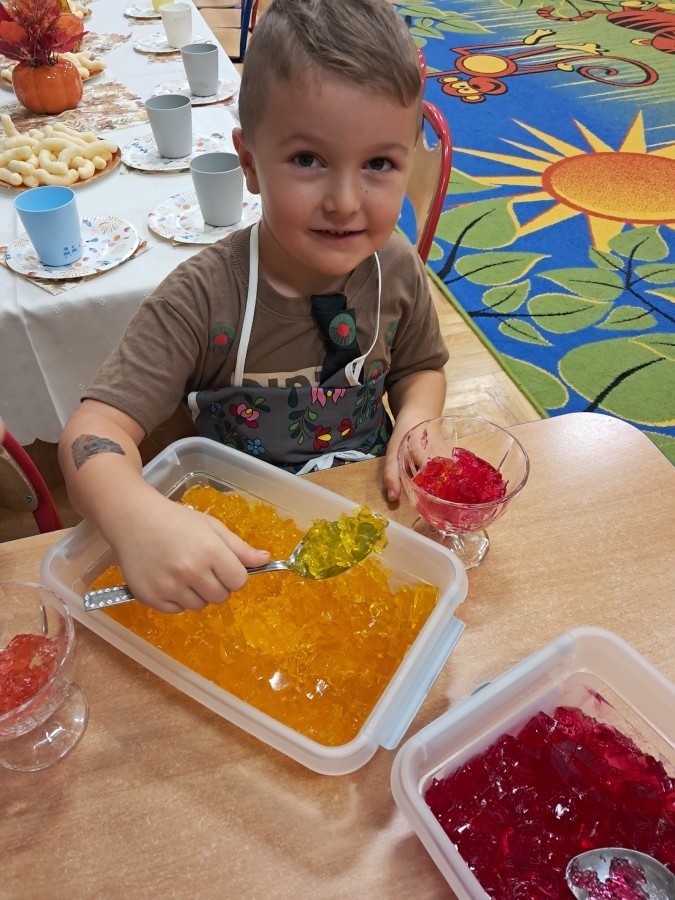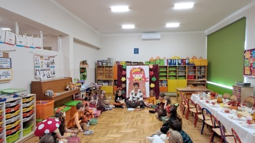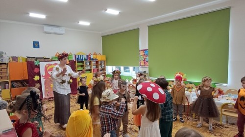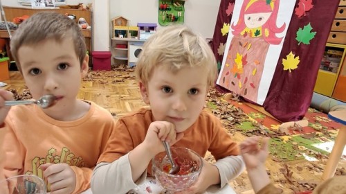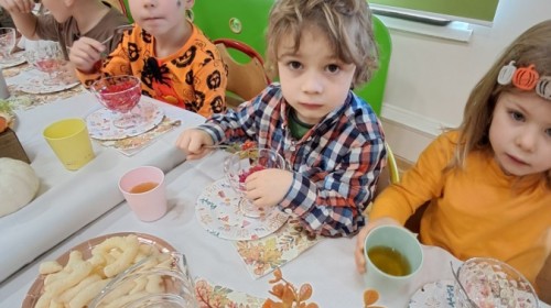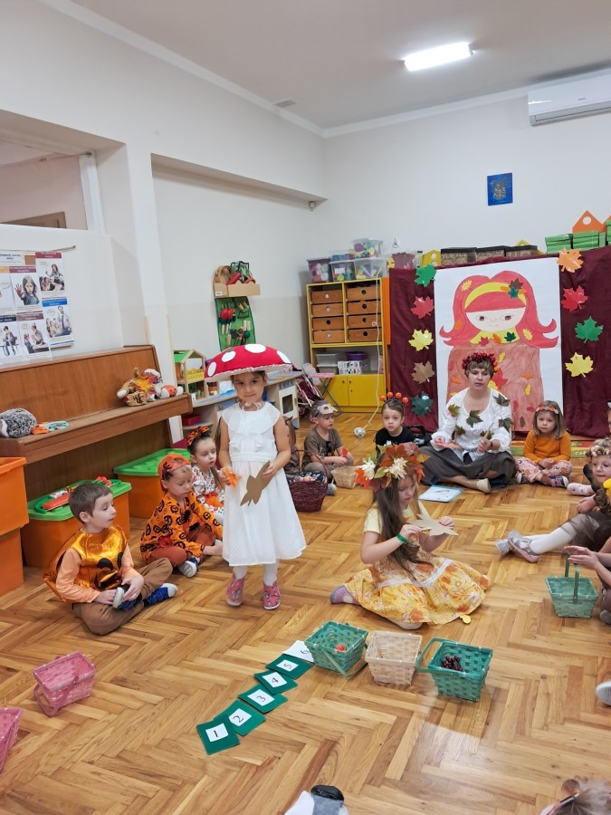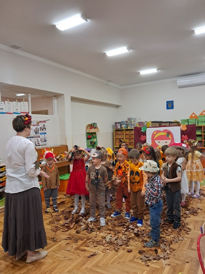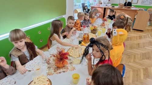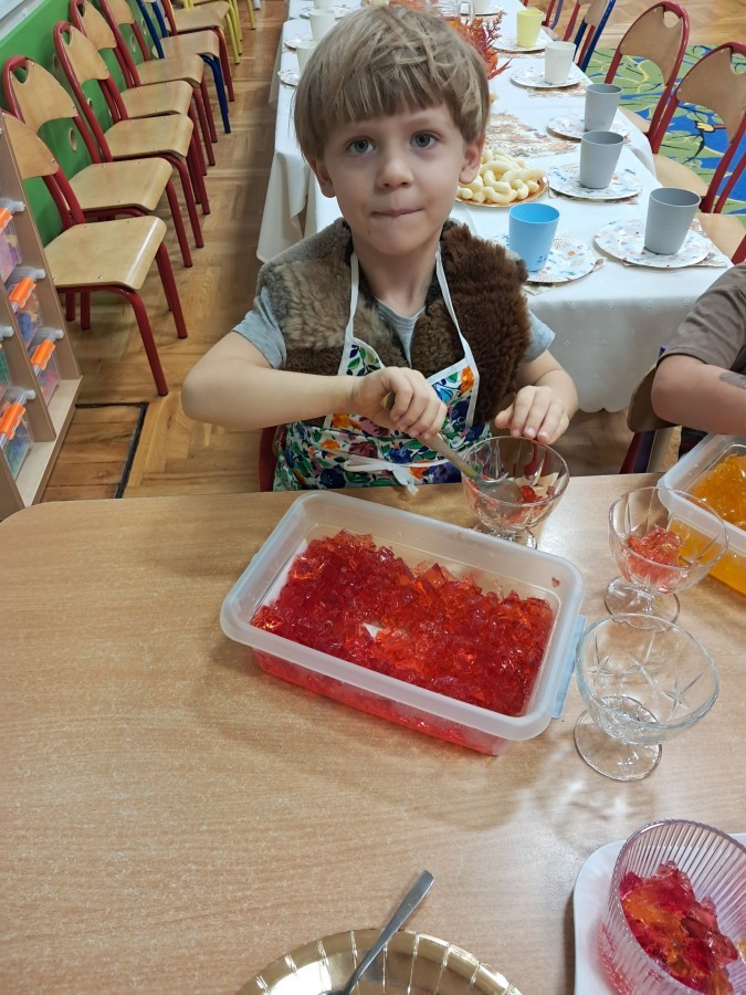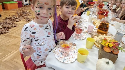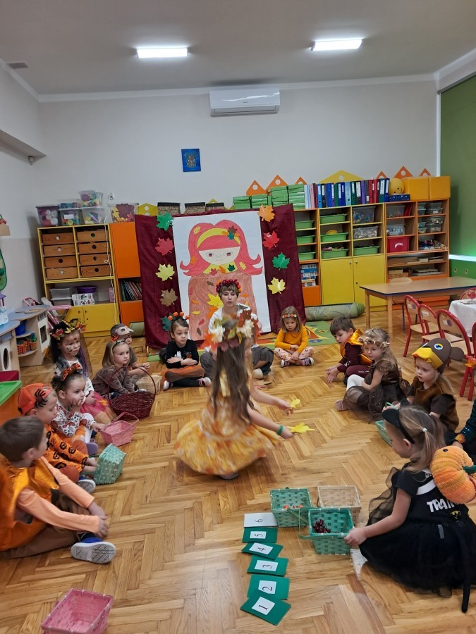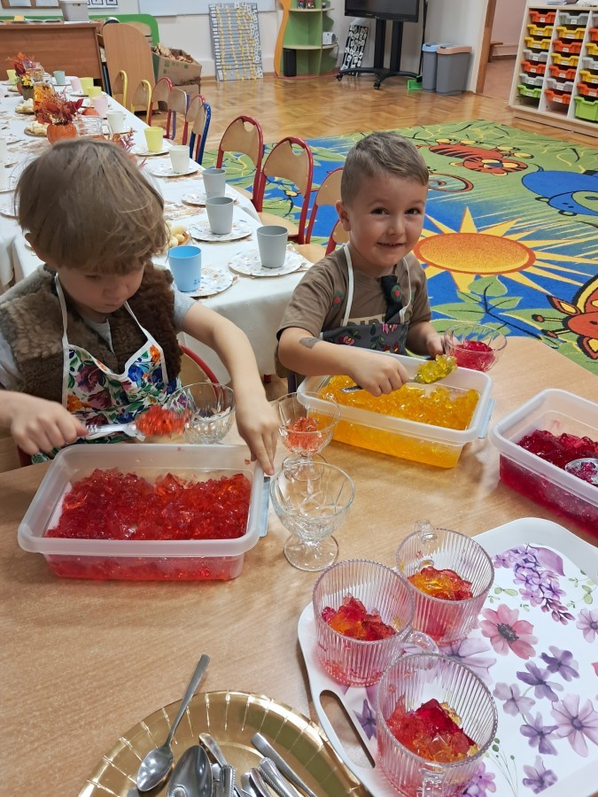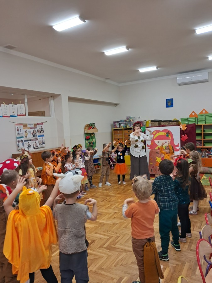 Wśród szeleszczących liści i przy dźwiękach jesiennych piosenek odbył się bal Lisków. Przygotowane zostały pyszne deserki z kolorową galaretką, pokaz mody jesiennej oraz zabawa taneczna. Liski policzyły skarby z koszyka Pani Jesieni, zagrały na kasztankach, pięknie zaprezentowały swoje stroje na wybiegu oraz super się bawiły. Kręciły piruety z Leśną Wróżką, ruszały skrzydełkami do Kaczuszek, tańczyły z Pszczółką Mają, a na koniec wsiadły do jesiennego pociągu i dojechały do stacji: Deserkowo.