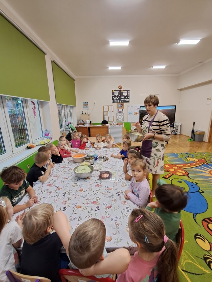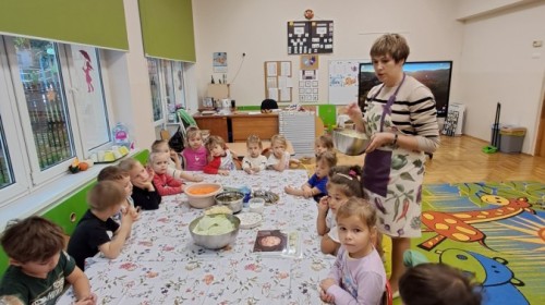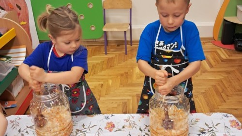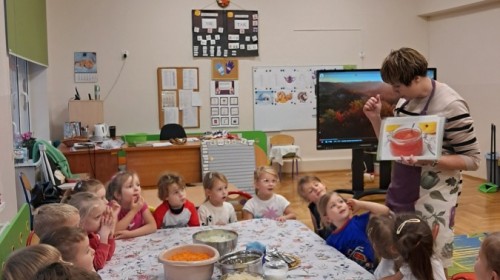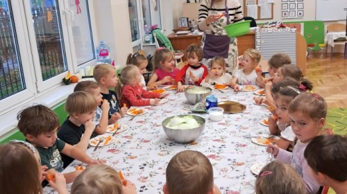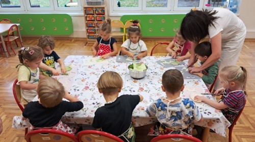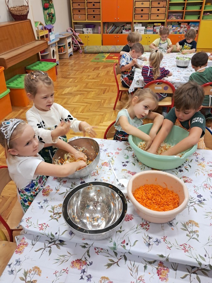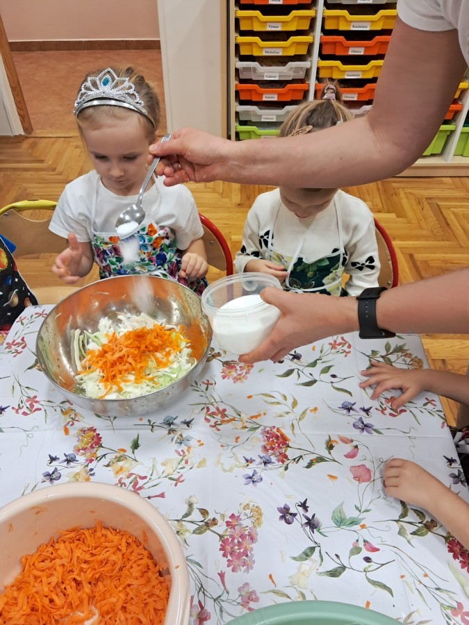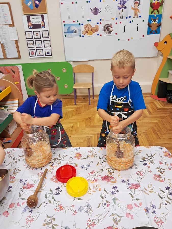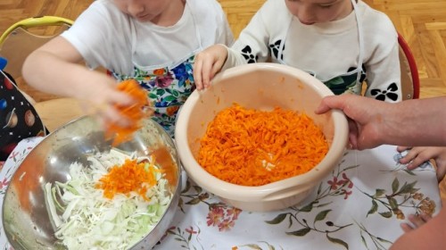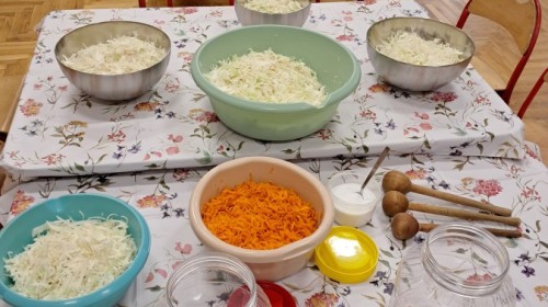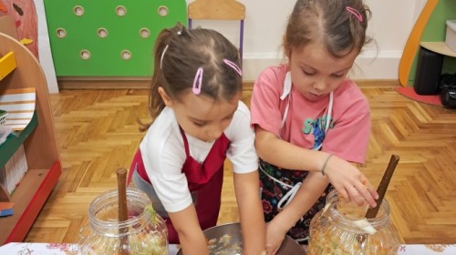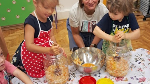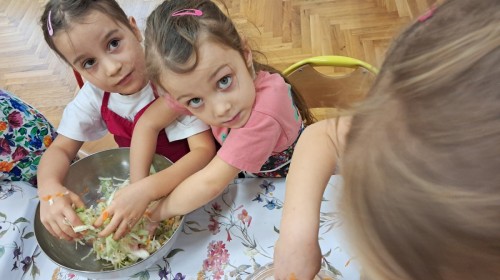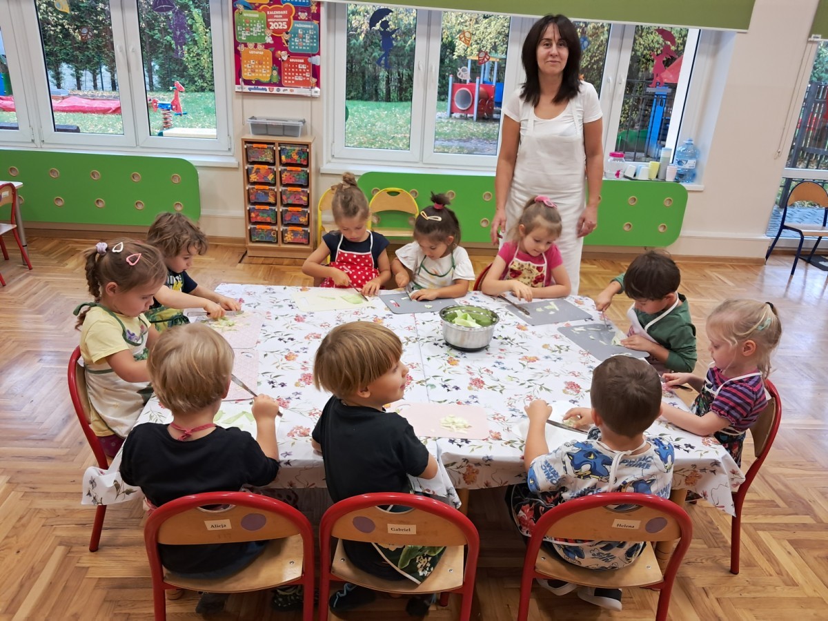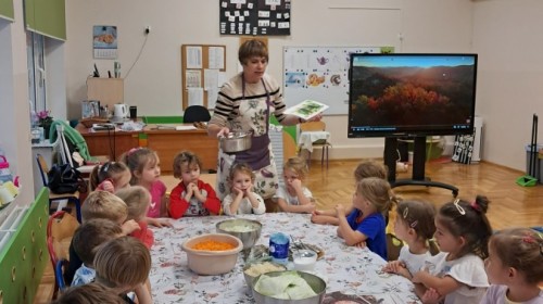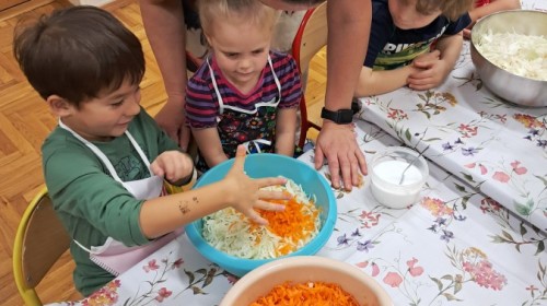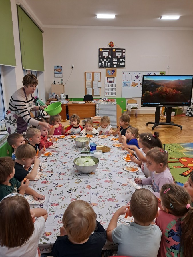 Liski zrealizowały pierwsze zadanie z Ogólnopolskiego Projektu ,,Eko przedszkolaki" pt: ,,Kiszonki-co to takiego?". Dowiedziały się co to są kiszonki, jak smakują, po co kisimy warzywa i pod czujnym okiem Pani Kasi i Iwonki zakisiły kapustę. Dodatkowo zwiedziły kuchnię, gdzie przygotowuje się pyszne przedszkolne posiłki.
