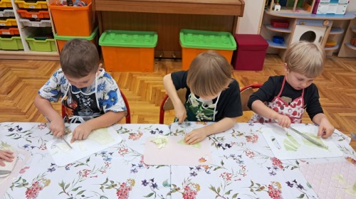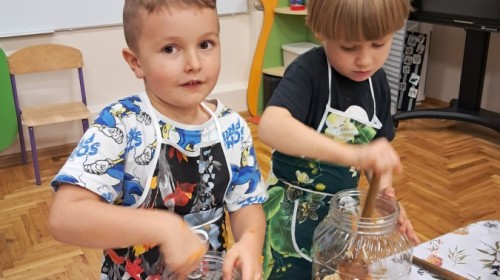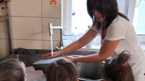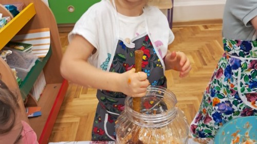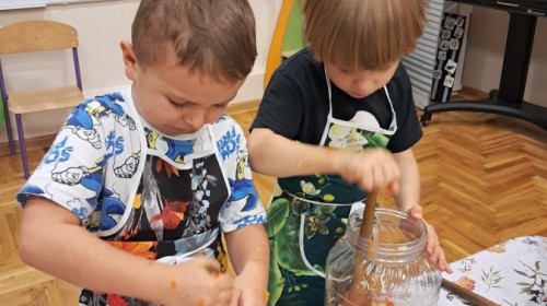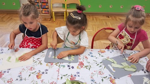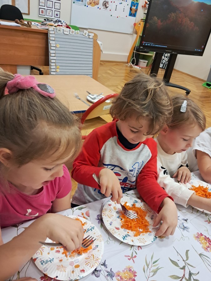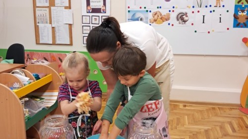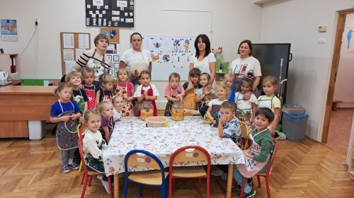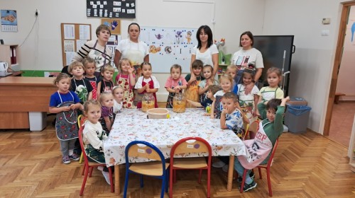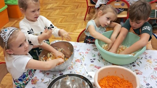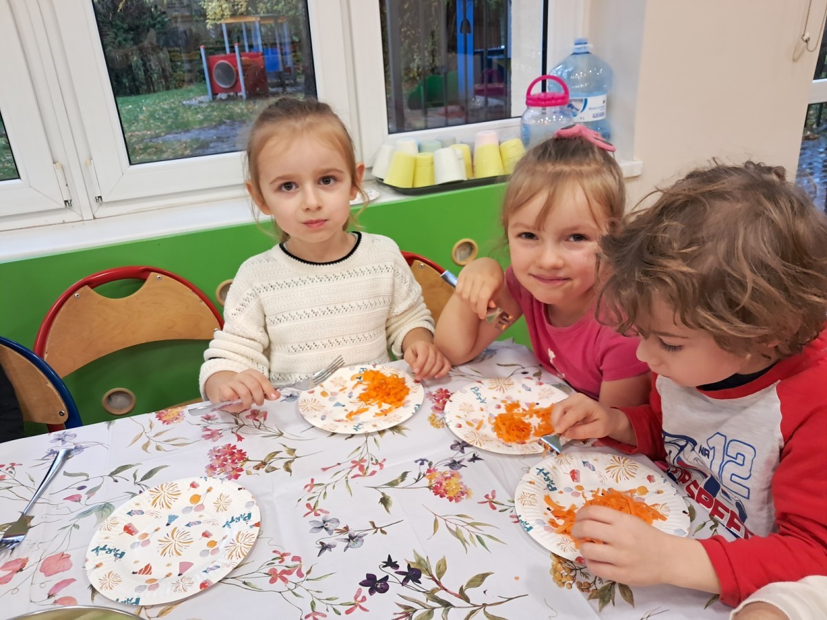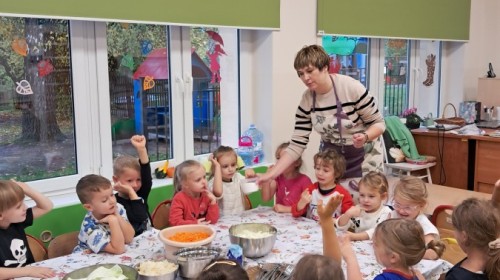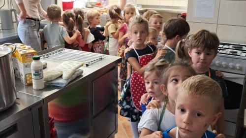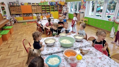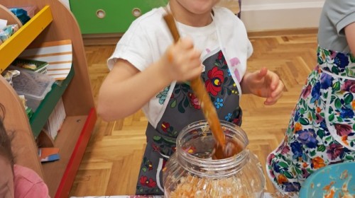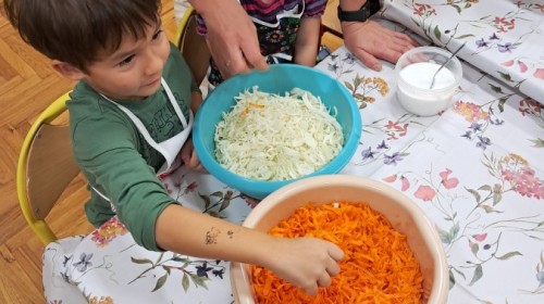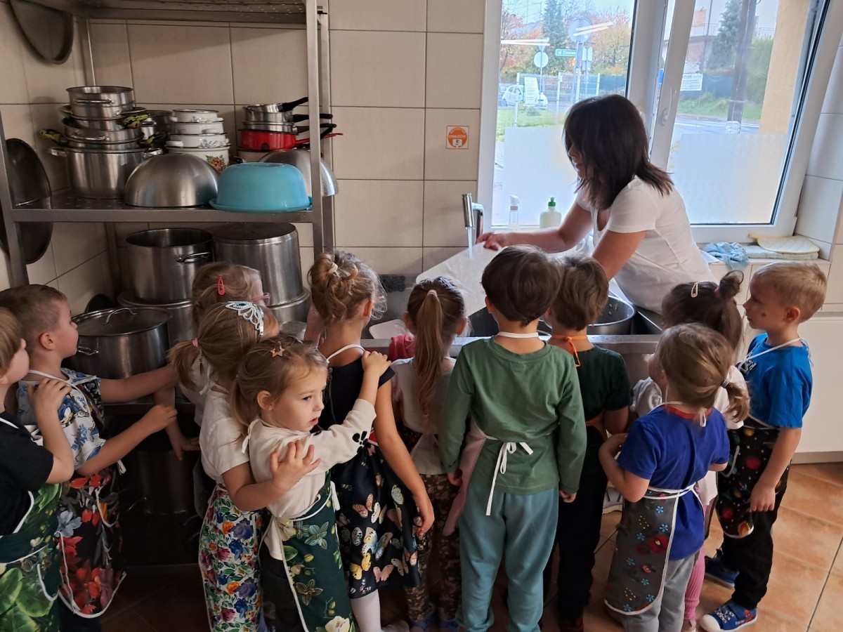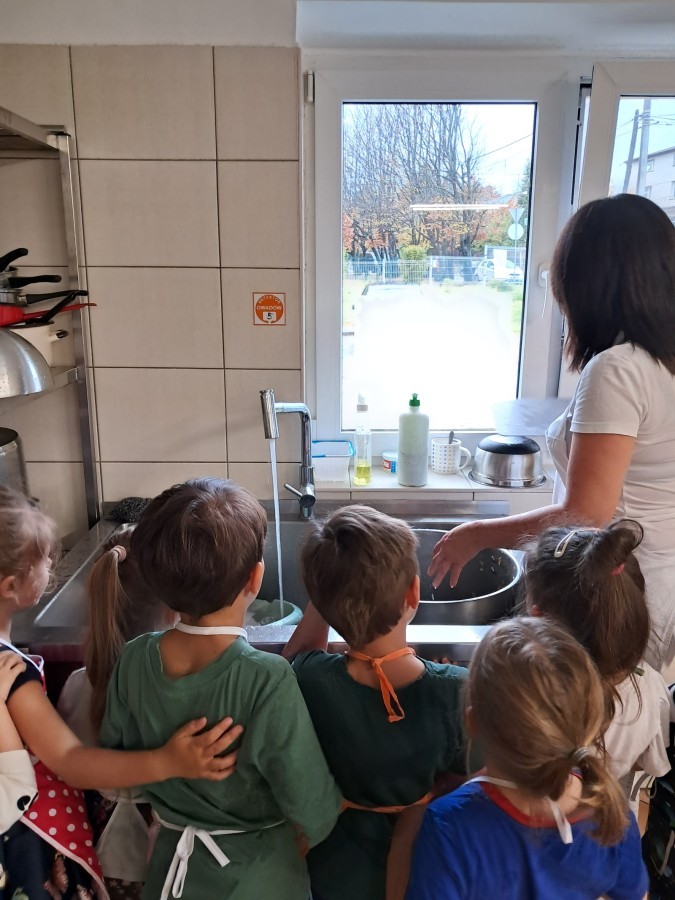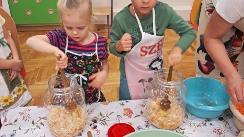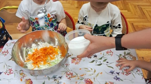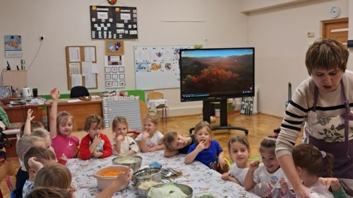 Liski zrealizowały pierwsze zadanie z Ogólnopolskiego Projektu ,,Eko przedszkolaki" pt: ,,Kiszonki-co to takiego?". Dowiedziały się co to są kiszonki, jak smakują, po co kisimy warzywa i pod czujnym okiem Pani Kasi i Iwonki zakisiły kapustę. Dodatkowo zwiedziły kuchnię, gdzie przygotowuje się pyszne przedszkolne posiłki.