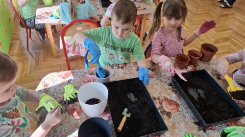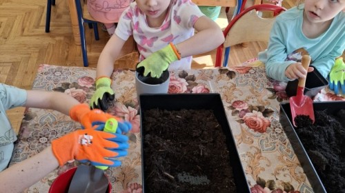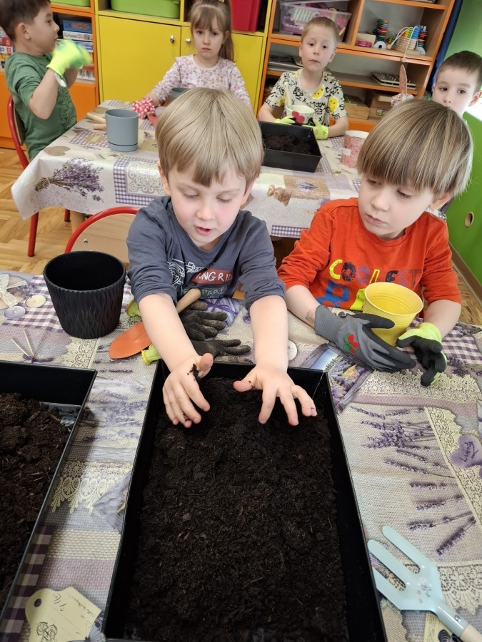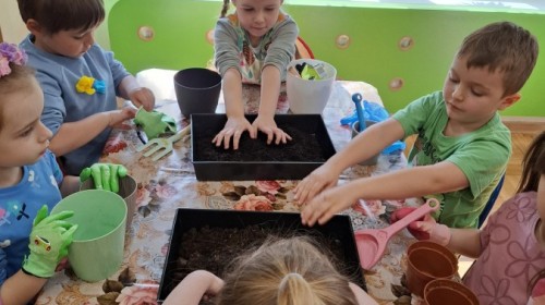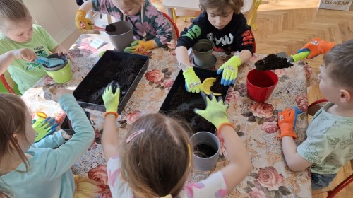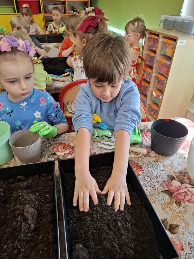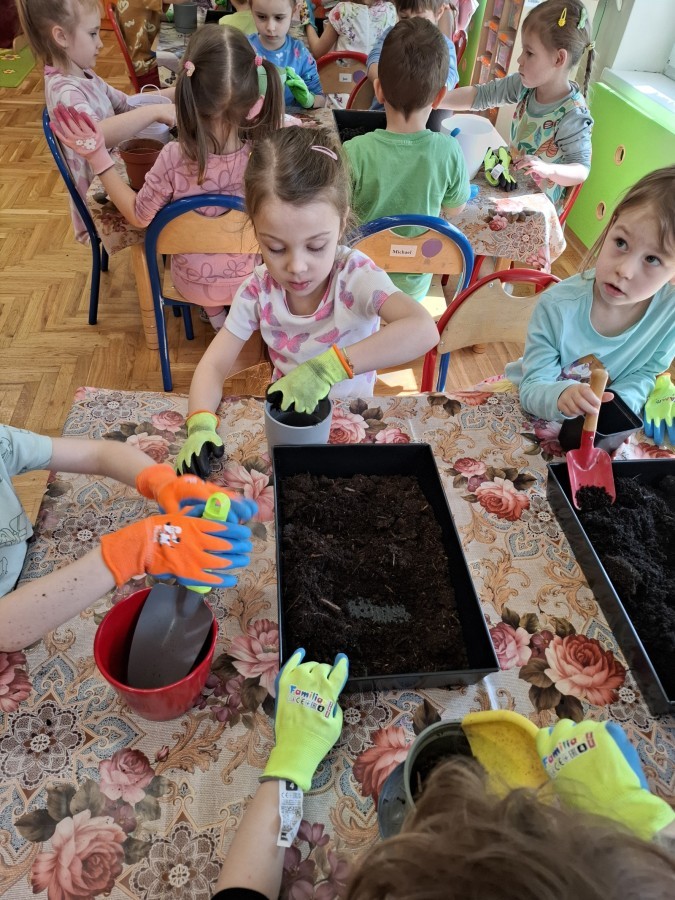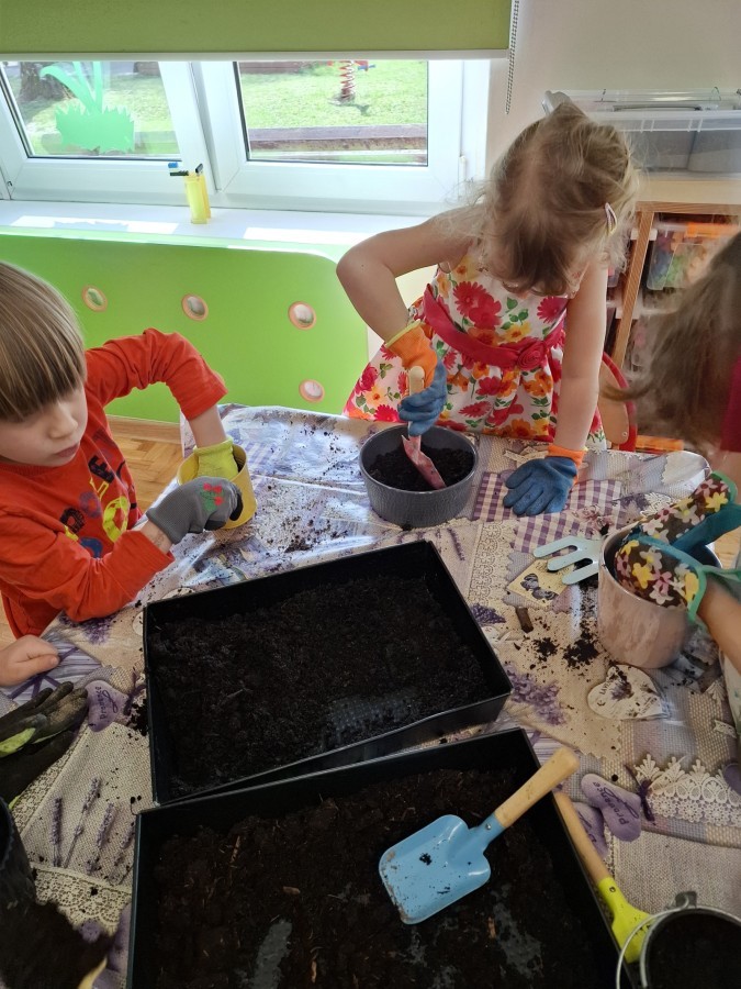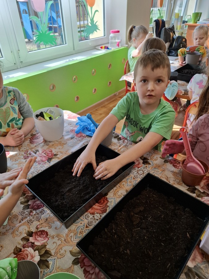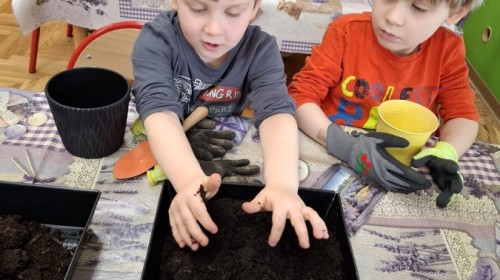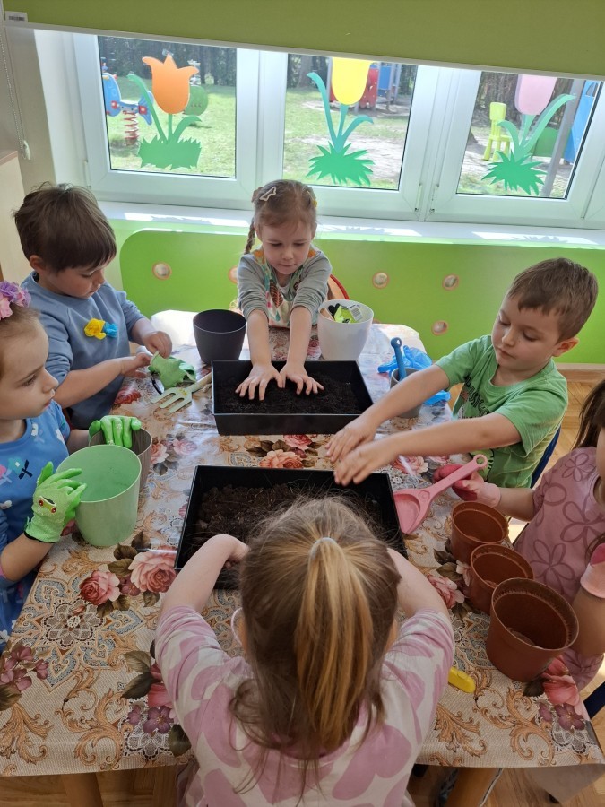 Na zakończenie zajęć każdy mógł poczuć się jak prawdziwy ogrodnik. Liski samodzielnie wysiały w doniczkach szczypiorek, bazylię, miętę oraz koperek. Teraz z niecierpliwością będziemy czekać na pierwsze kiełki.
