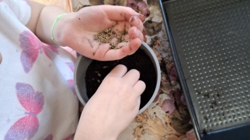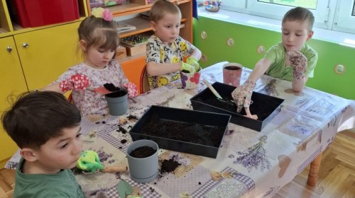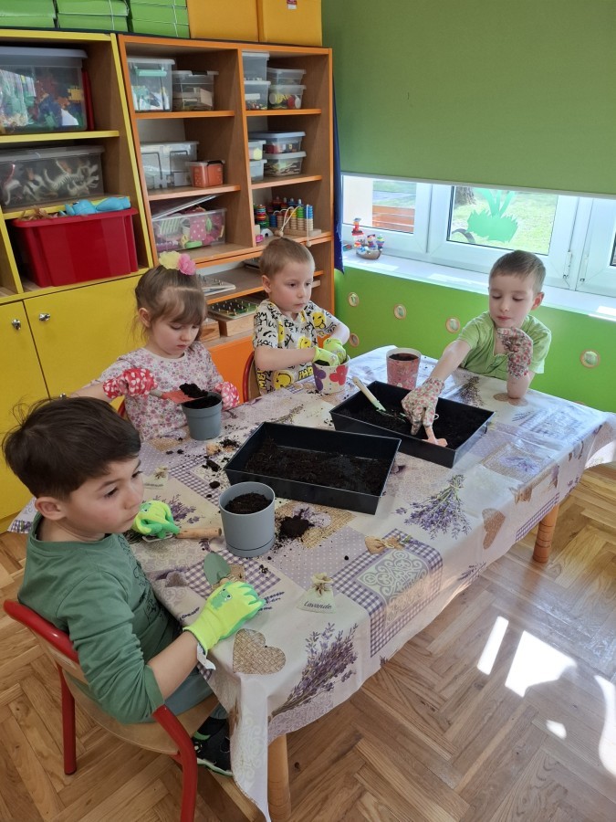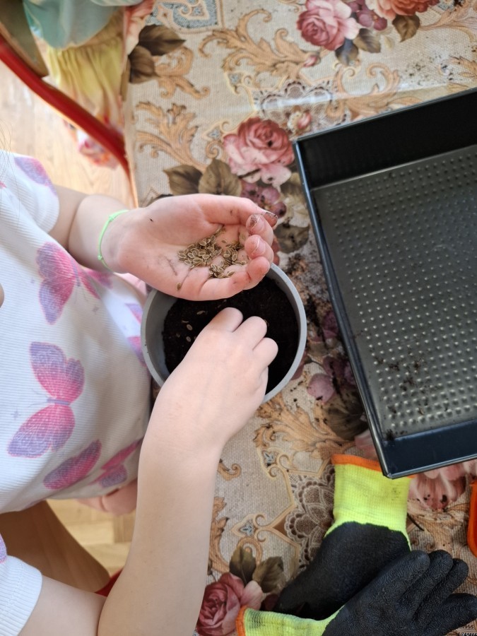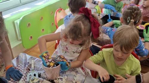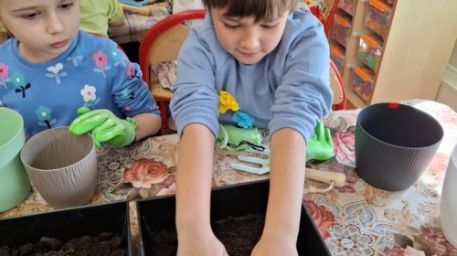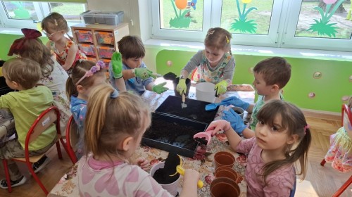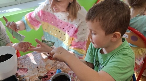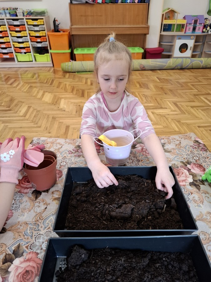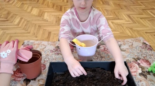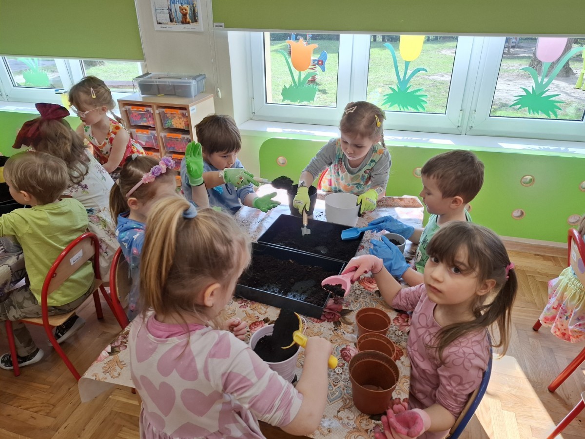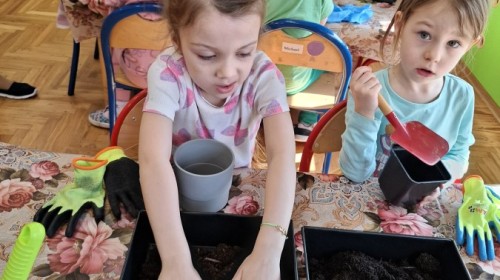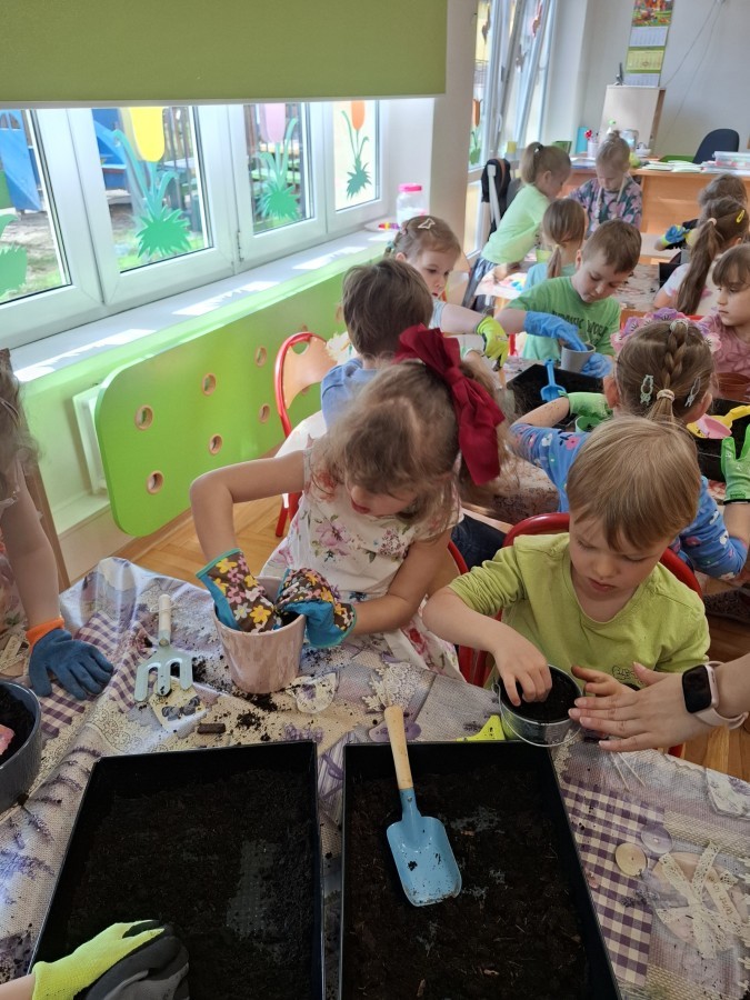 Na zakończenie zajęć każdy mógł poczuć się jak prawdziwy ogrodnik. Liski samodzielnie wysiały w doniczkach szczypiorek, bazylię, miętę oraz koperek. Teraz z niecierpliwością będziemy czekać na pierwsze kiełki.