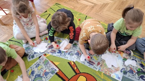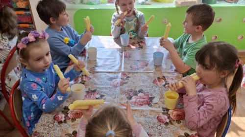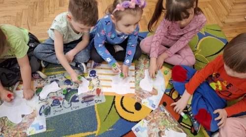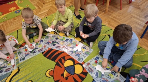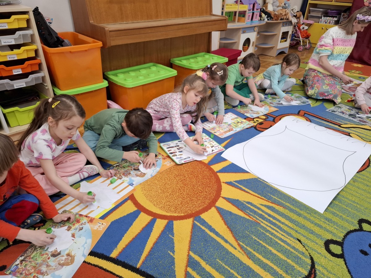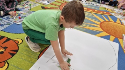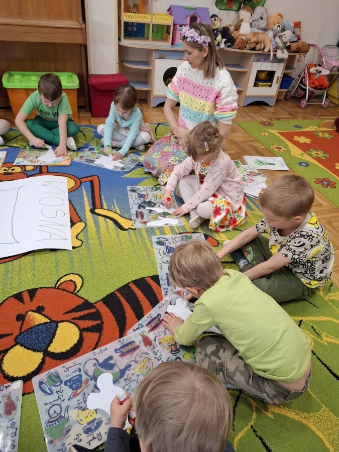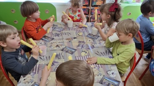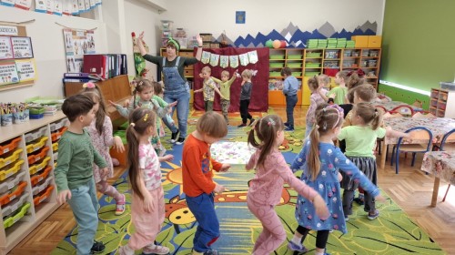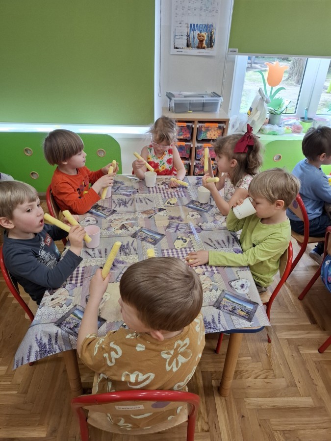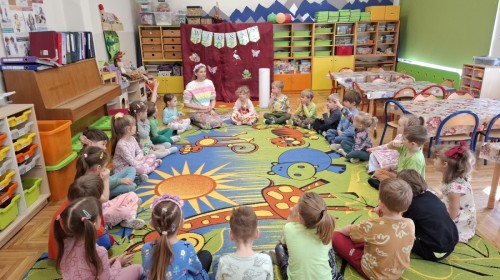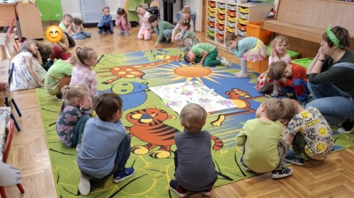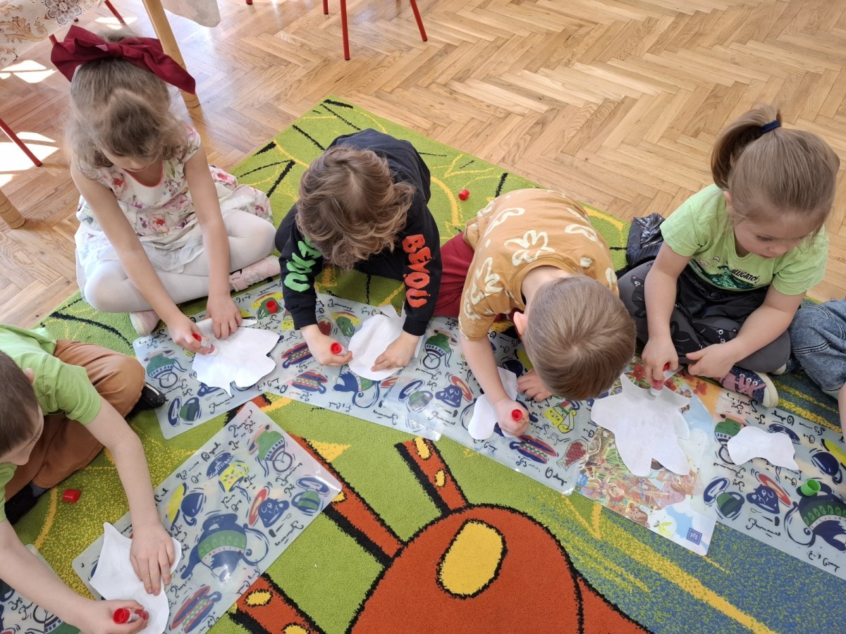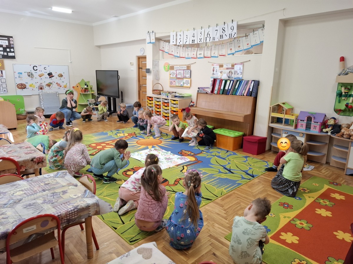 Nie zabrakło również radosnej zabawy! Dzieci bawiły się przy kolorowych motylach, rozwijając swoją wyobraźnię i koordynację ruchową. Wcieliły się w wiosenne ptaszki, które porządkowały swoje gniazda, skakały na skakance i piekły ciasto bananowe- było dużo śmiechu i pozytywnej energii.