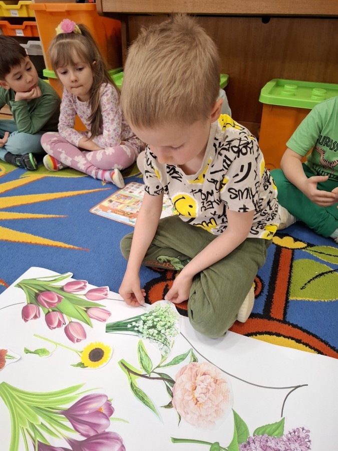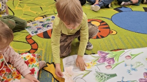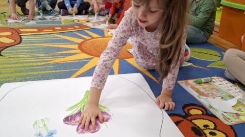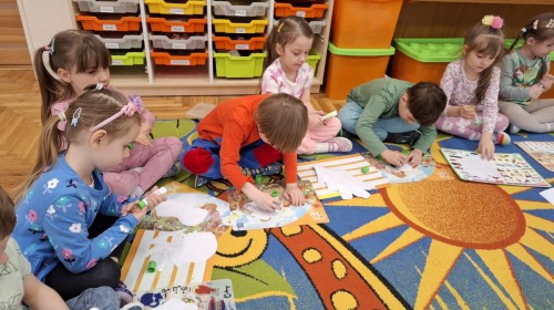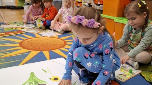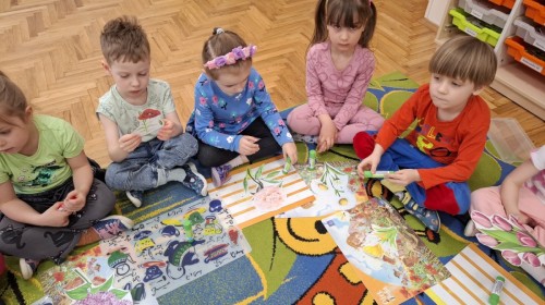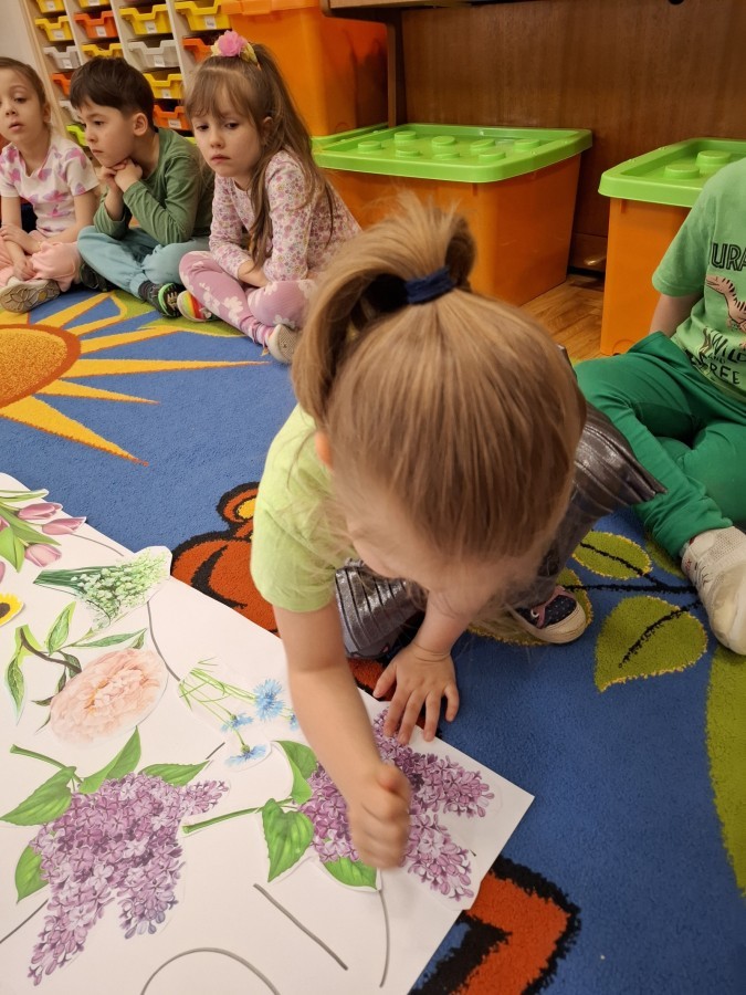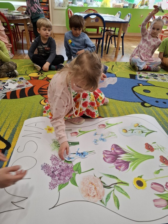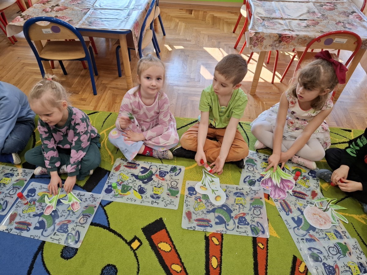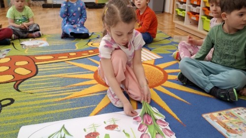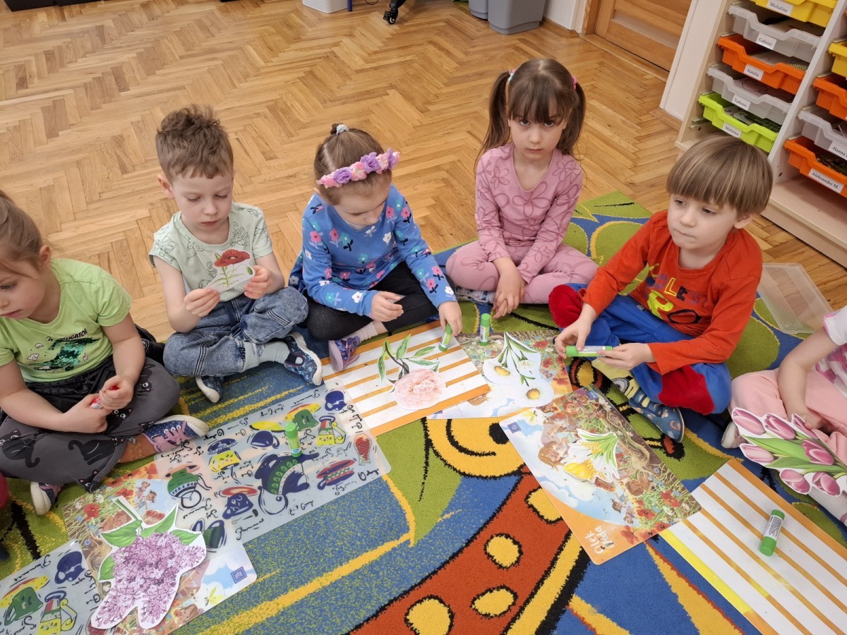 Podczas zajęć Liski utrwaliły wiadomości na temat jej pierwszych zwiastunów i zmian zachodzących w przyrodzie. Pięknie ozdobiły wiosenny wazon kolorowymi kwiatami.