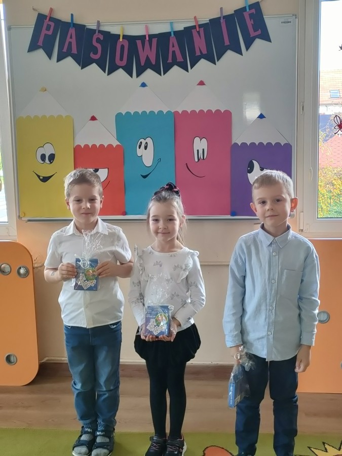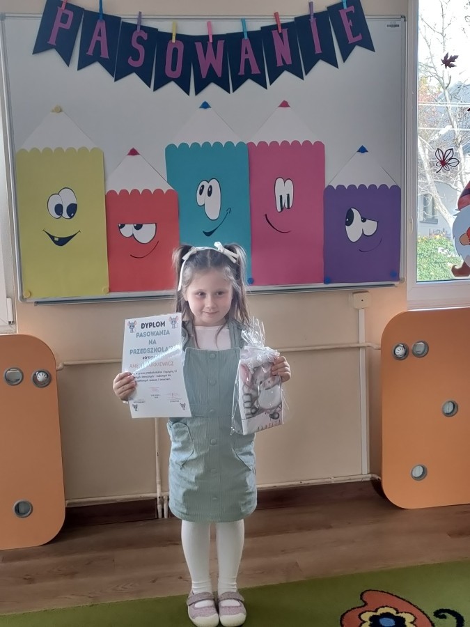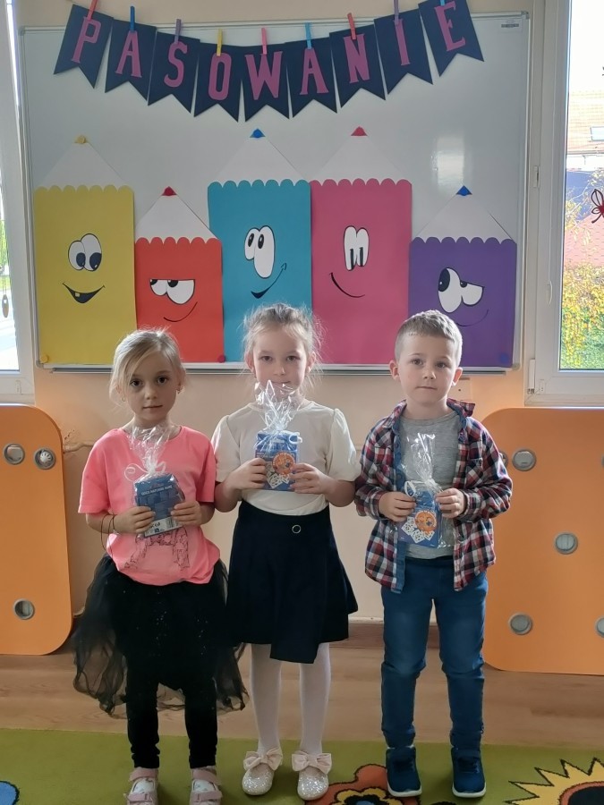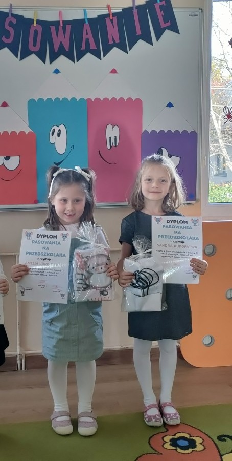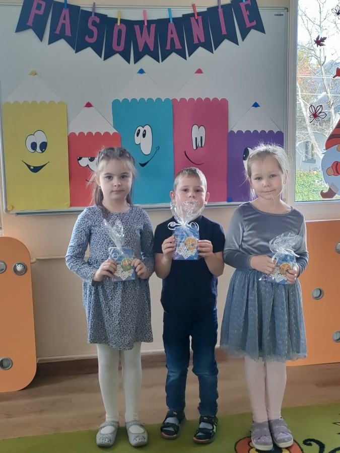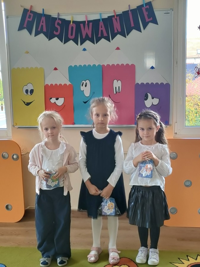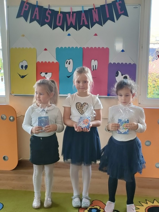 W naszej grupie trzy dziewczynki były pasowane na PRZEDSZKOLAKA.