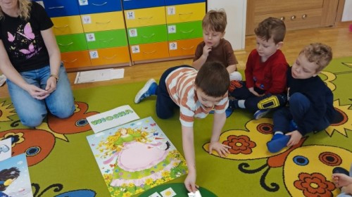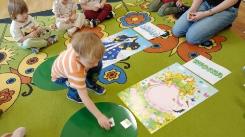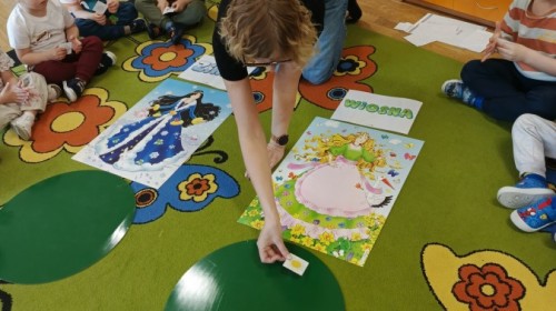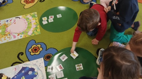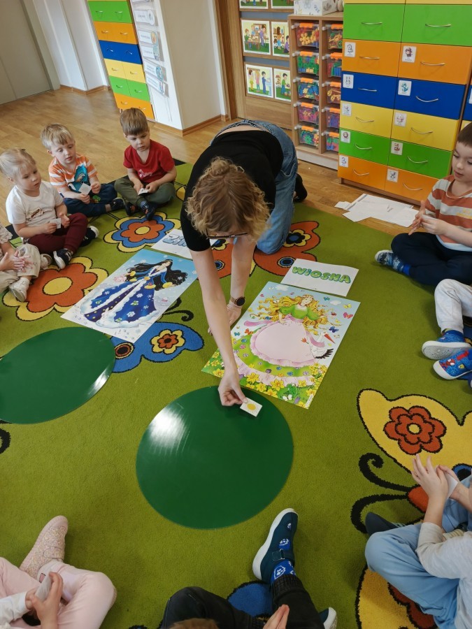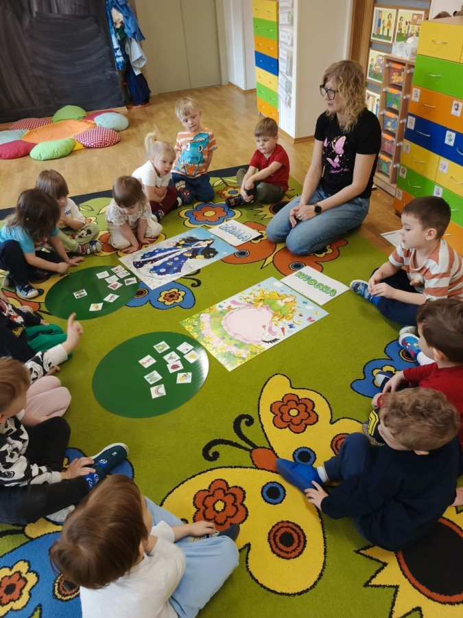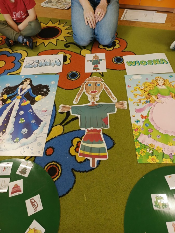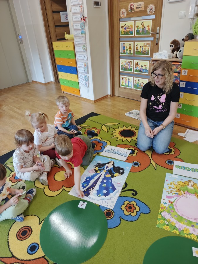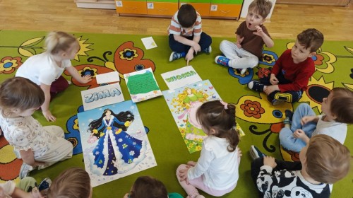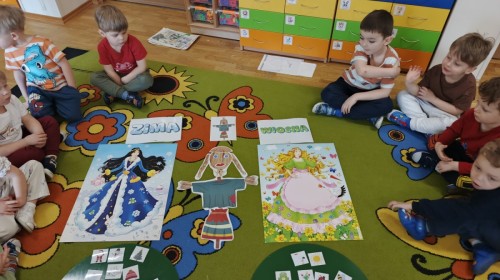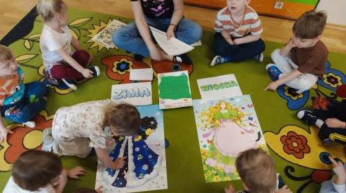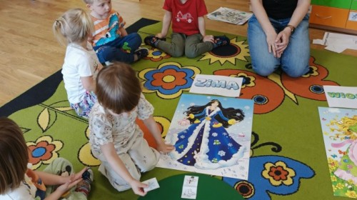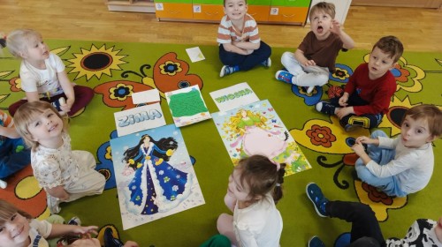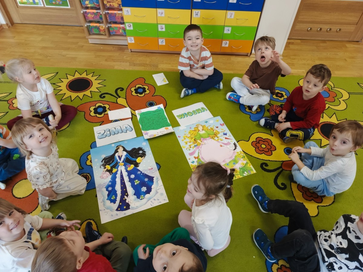Następnie przedszkolaki sprawdzały swoją wiedzę, rozwiązując zagadki dotyczące charakterystycznych cech zimy i wiosny.