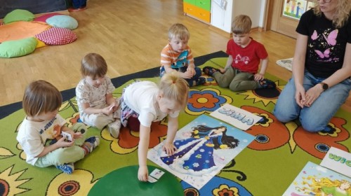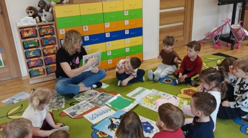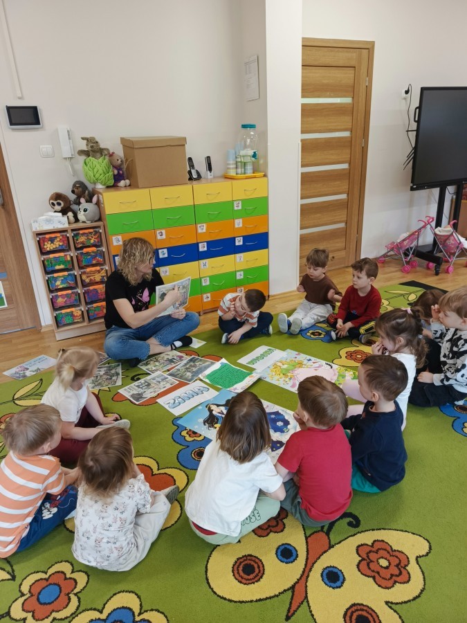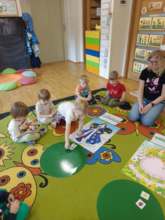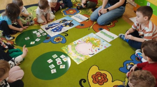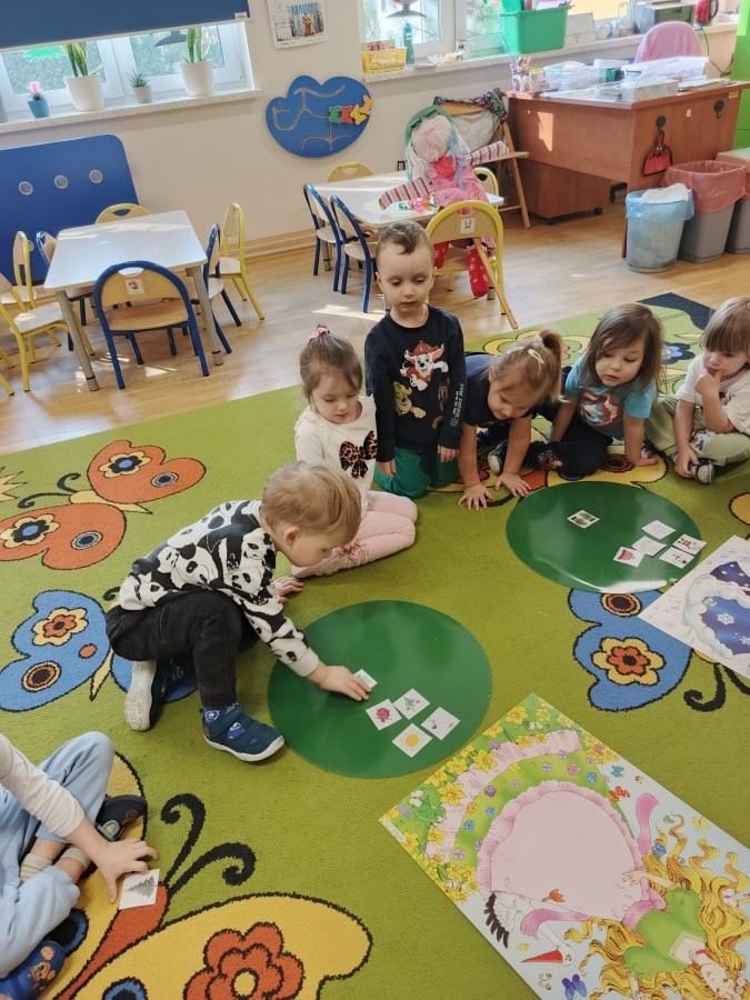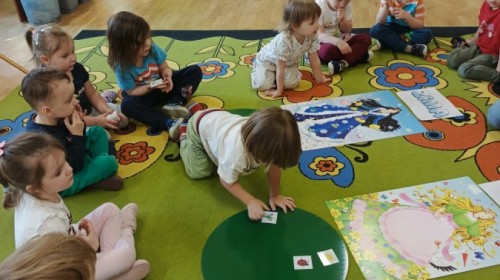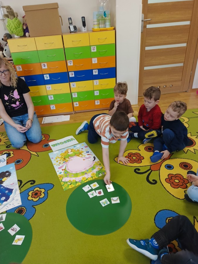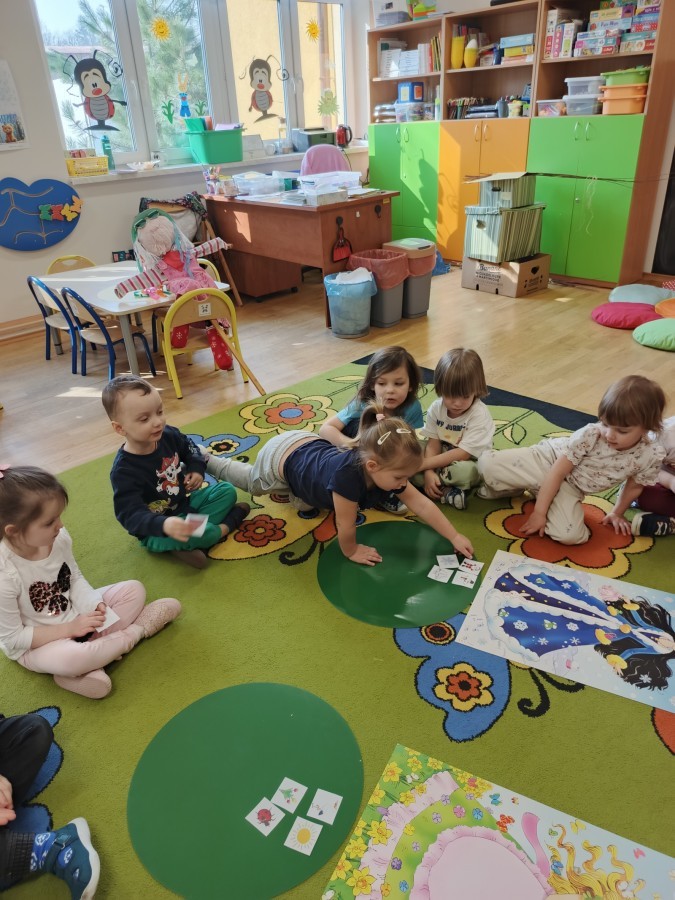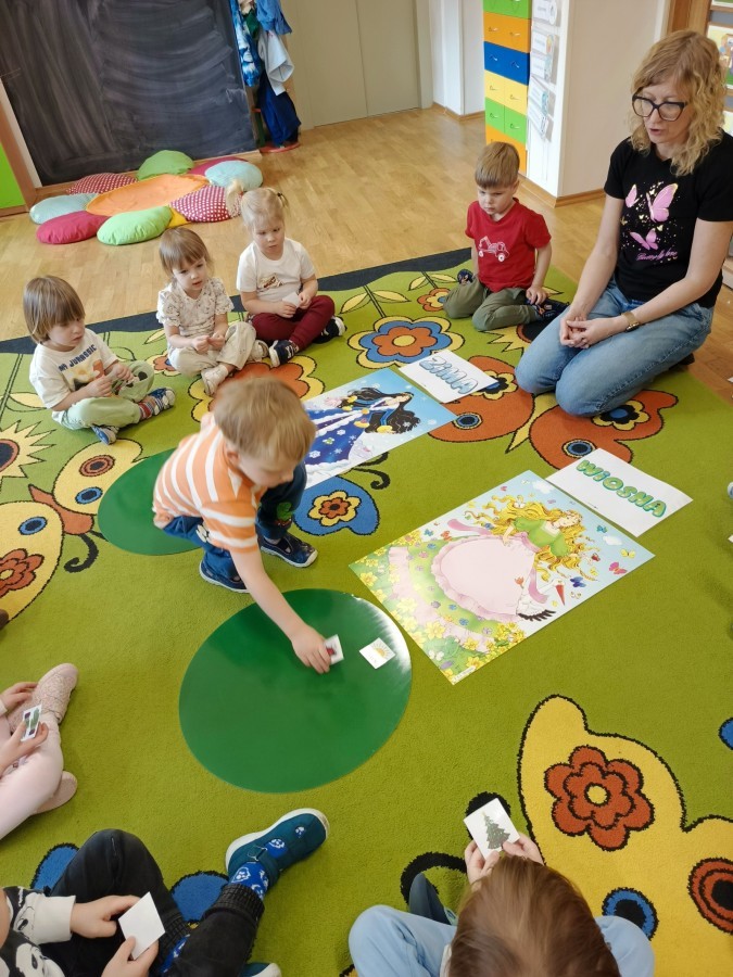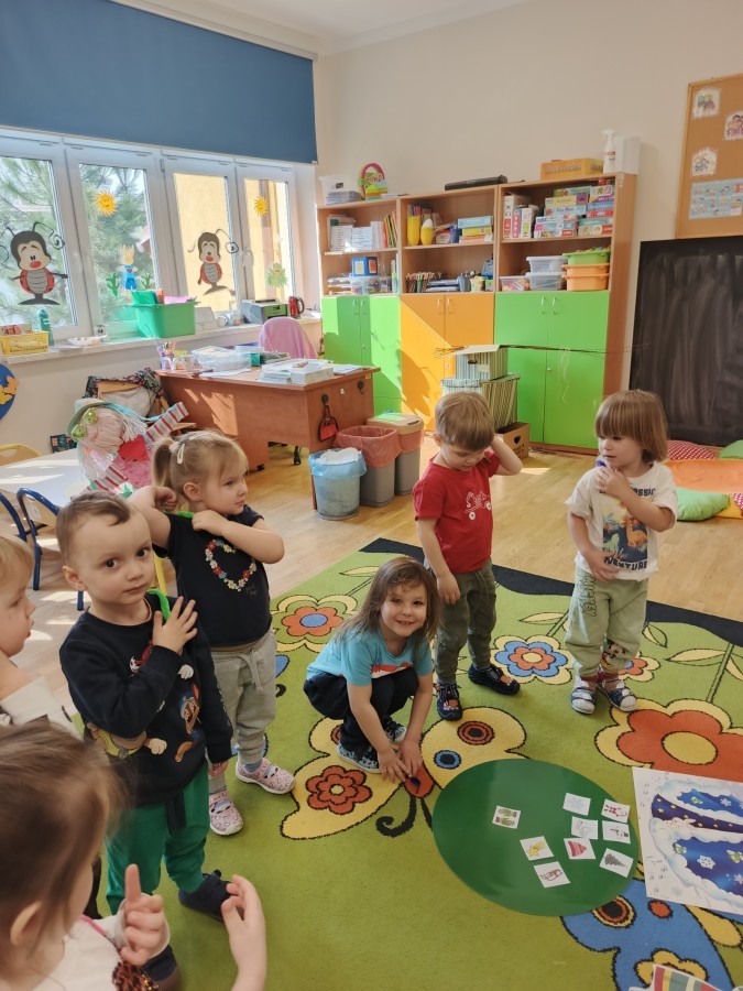Następnie przedszkolaki sprawdzały swoją wiedzę, rozwiązując zagadki dotyczące charakterystycznych cech zimy i wiosny.