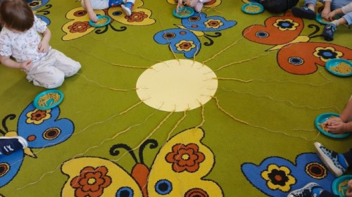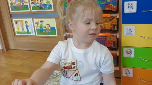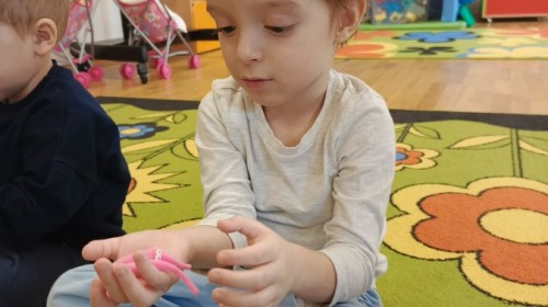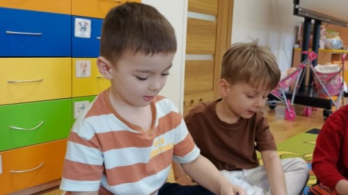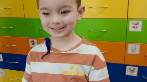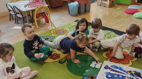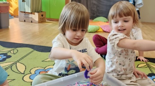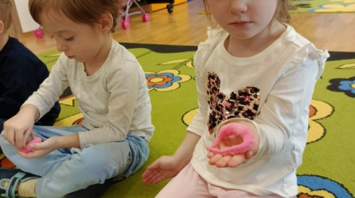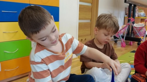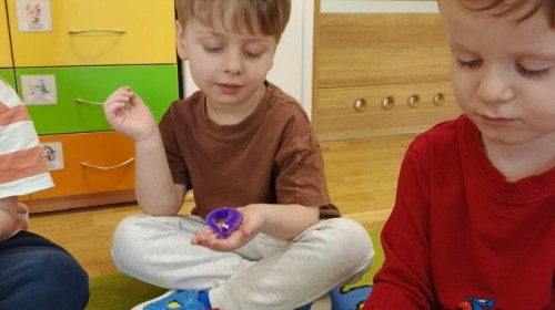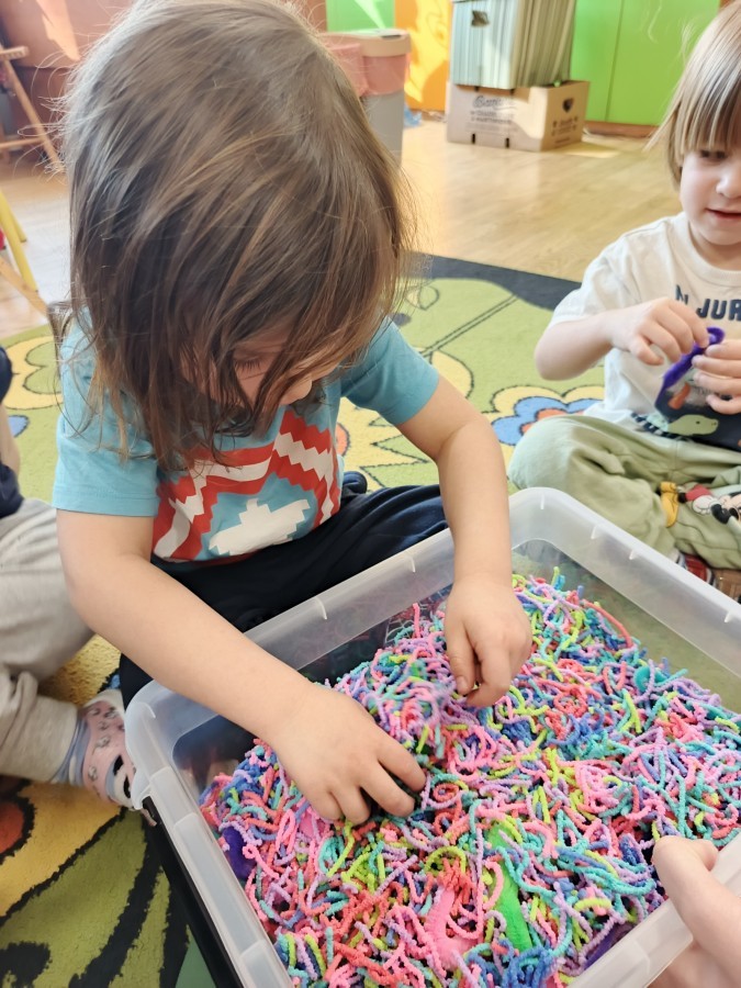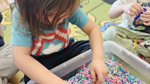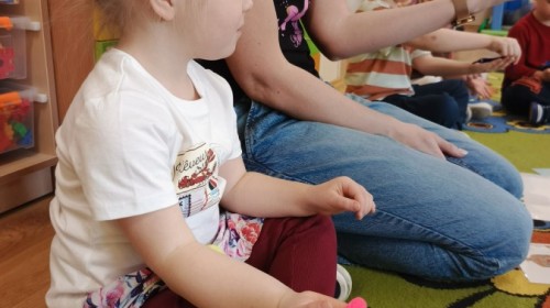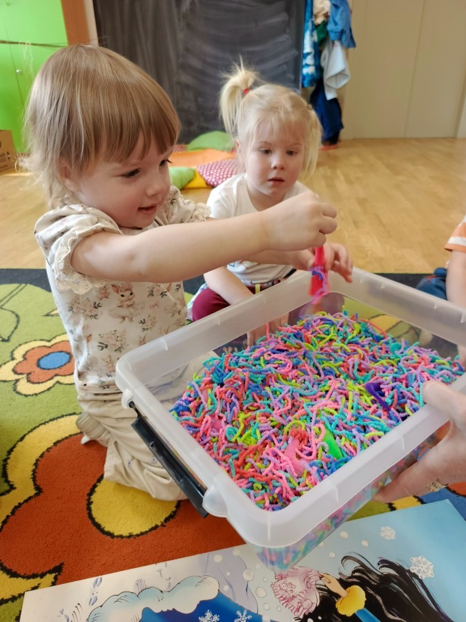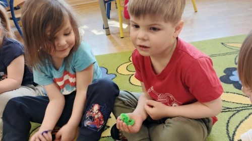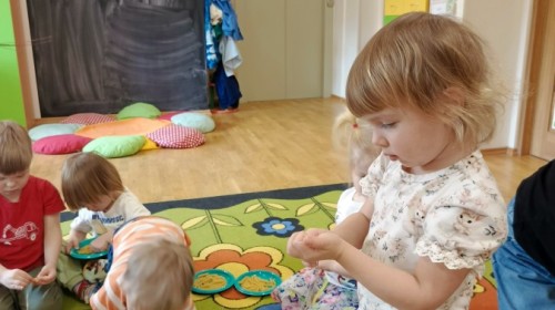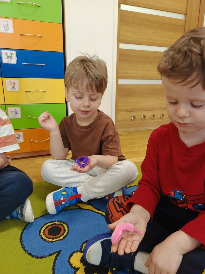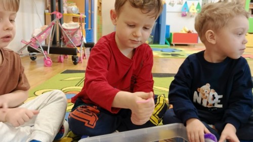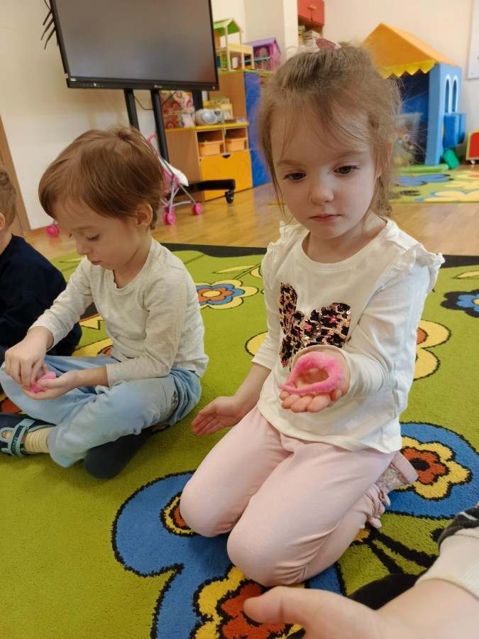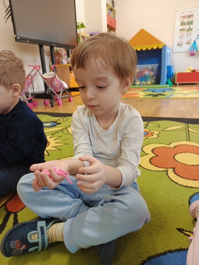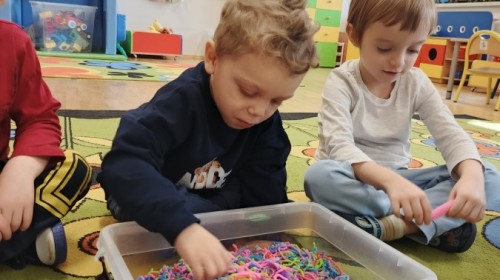 Kolejnym zadaniem było poszukiwanie kolorowych „robaczków”, które sprawiło dzieciom wiele radości i pozwoliło na świetną zabawę sensoryczną