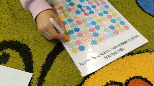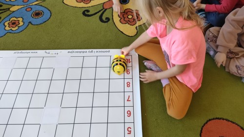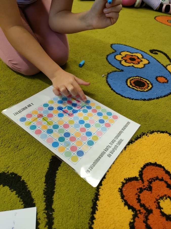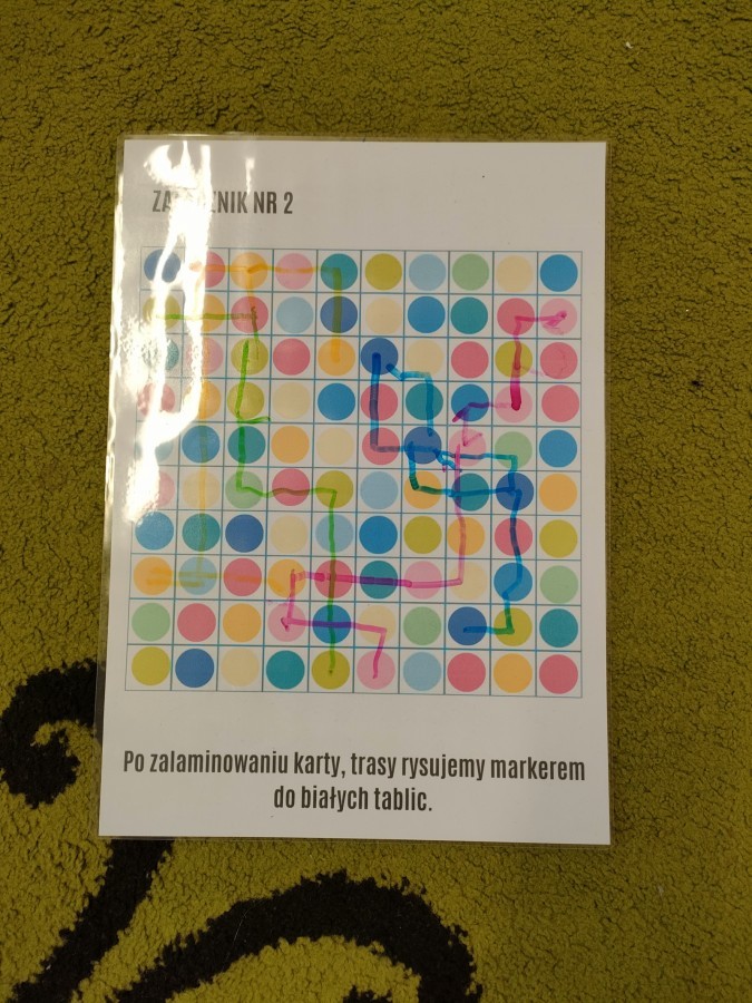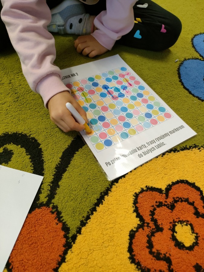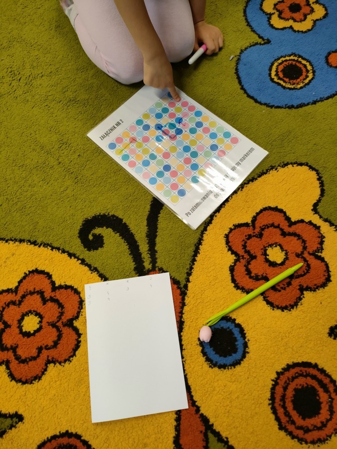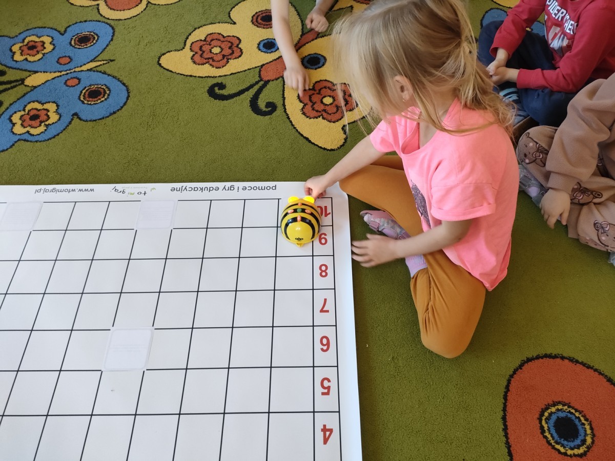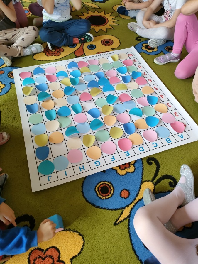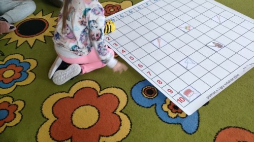 Drugie wyzwanie to gra, z użyciem maty, ucząca dzieci liczenia i logicznego myślenia.