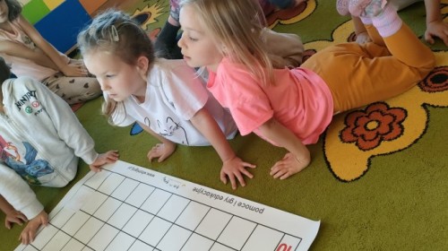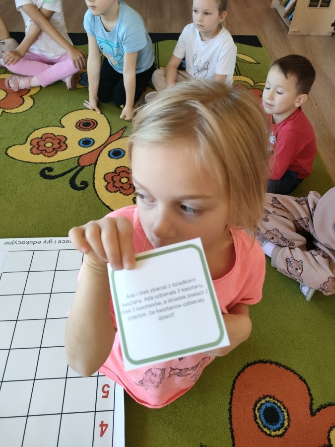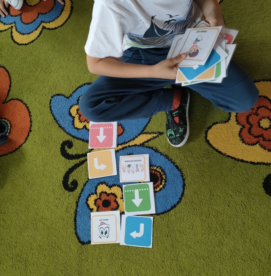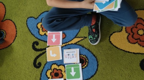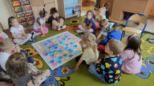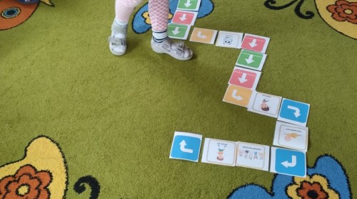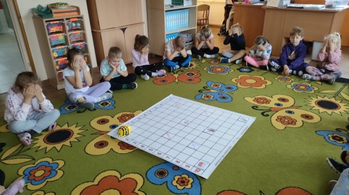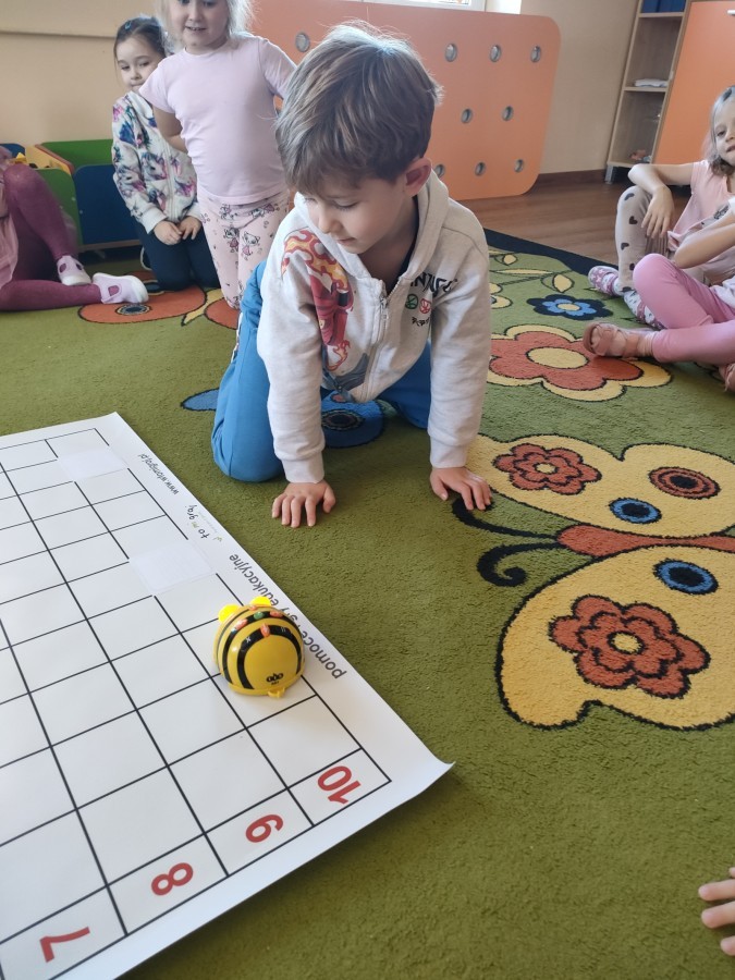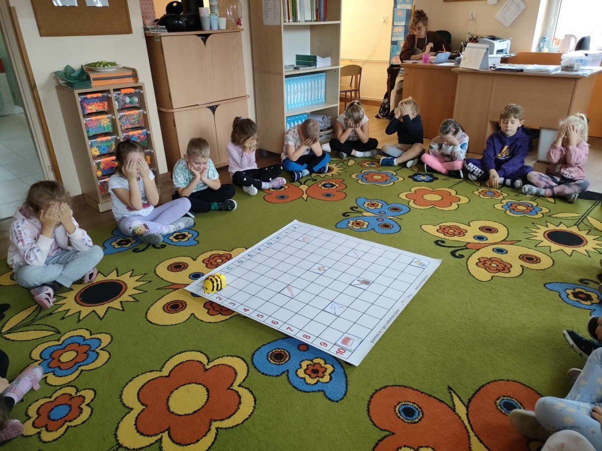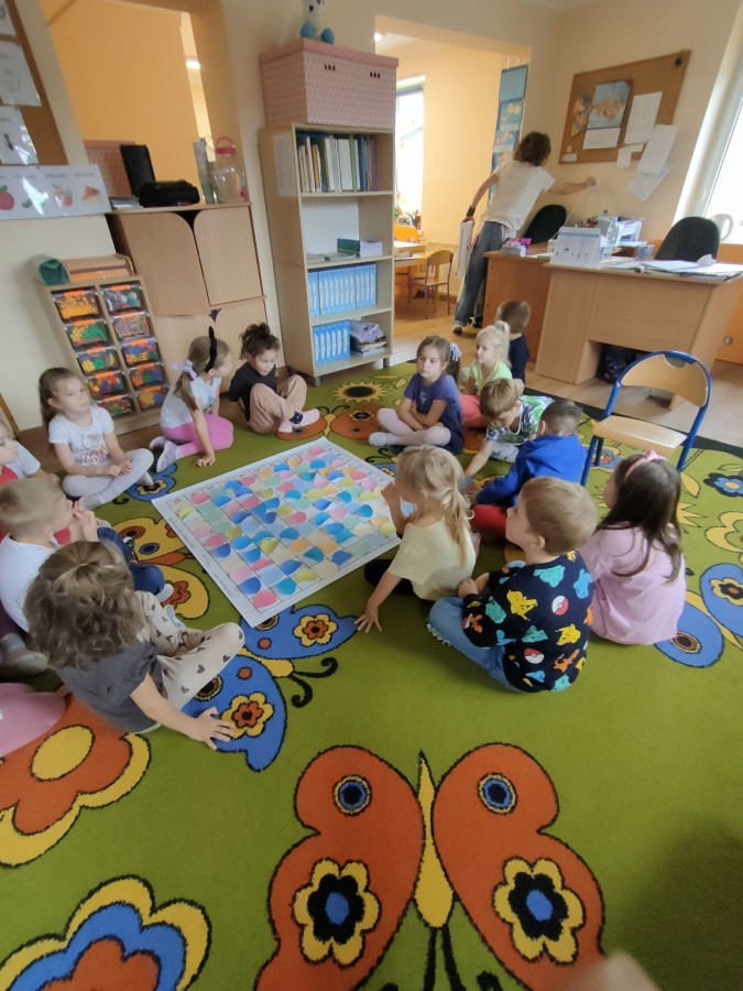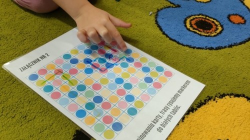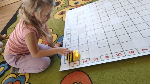 Drugie wyzwanie to gra, z użyciem maty, ucząca dzieci liczenia i logicznego myślenia.