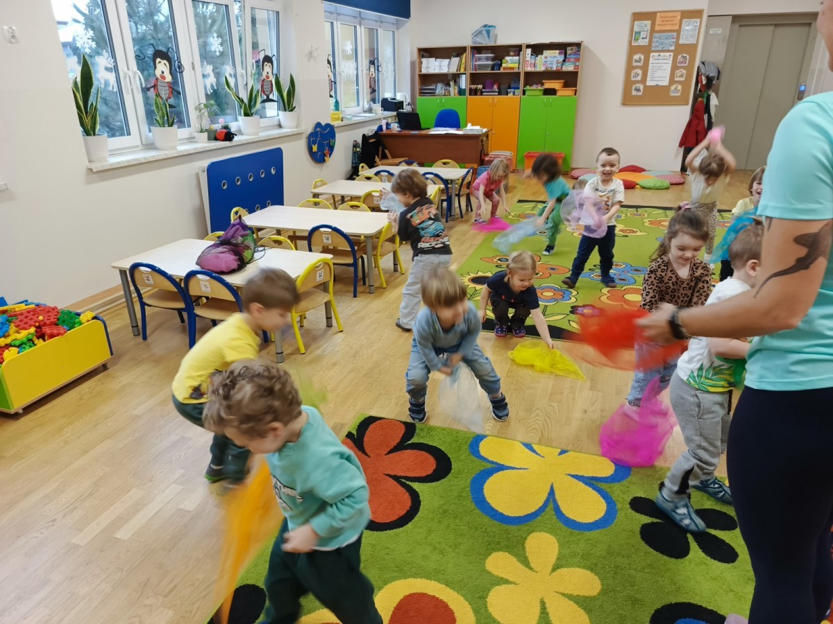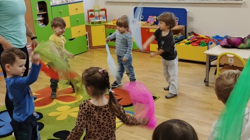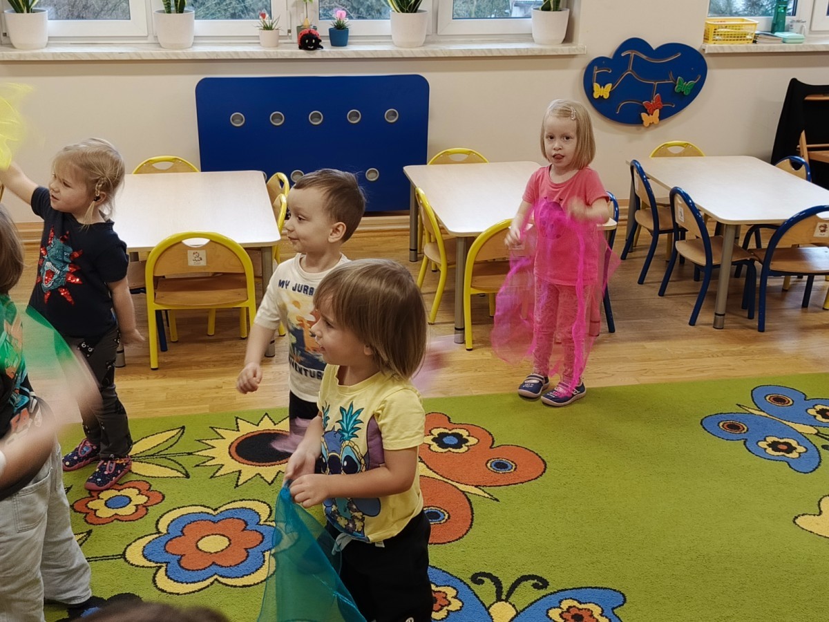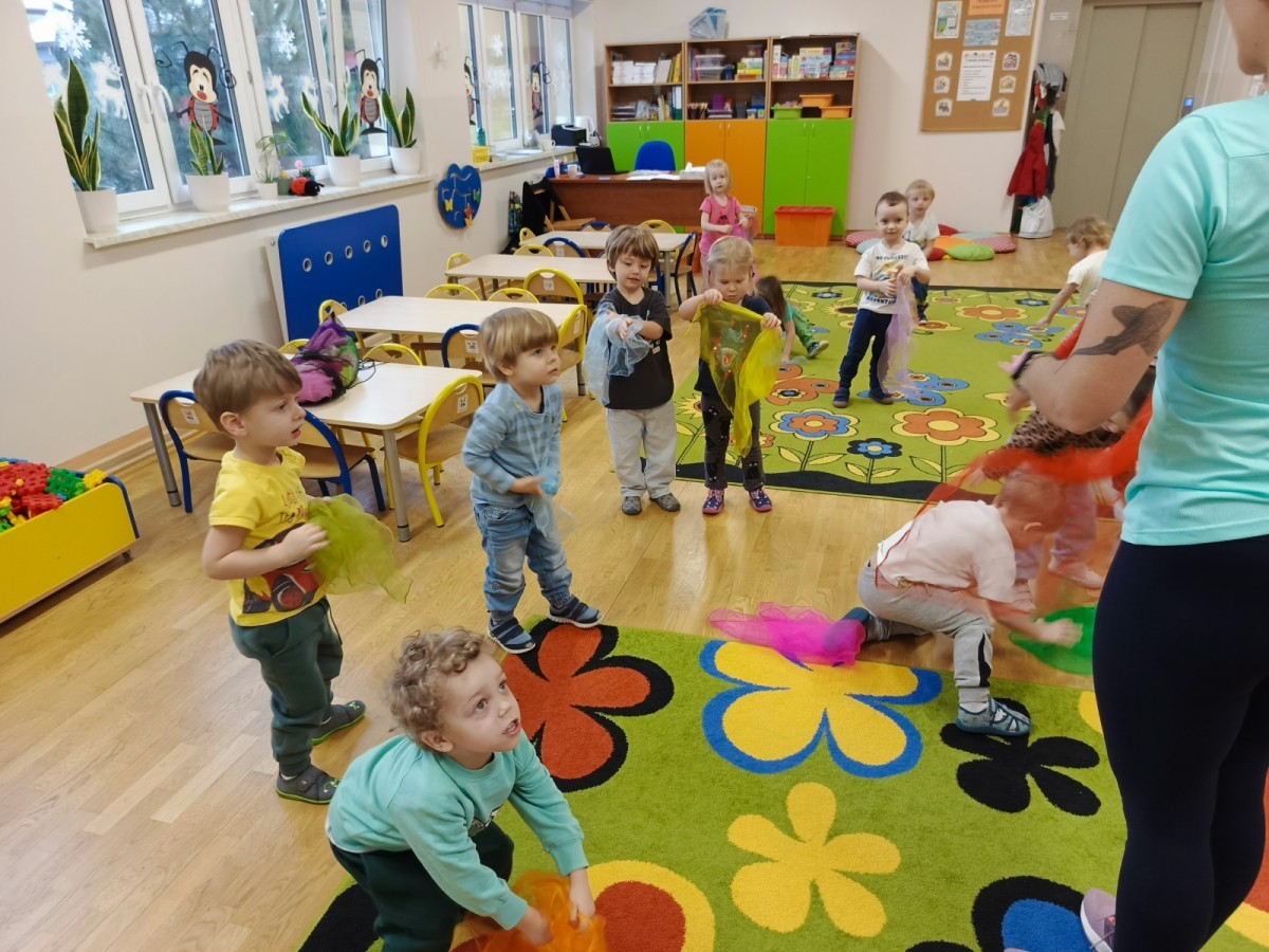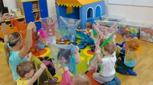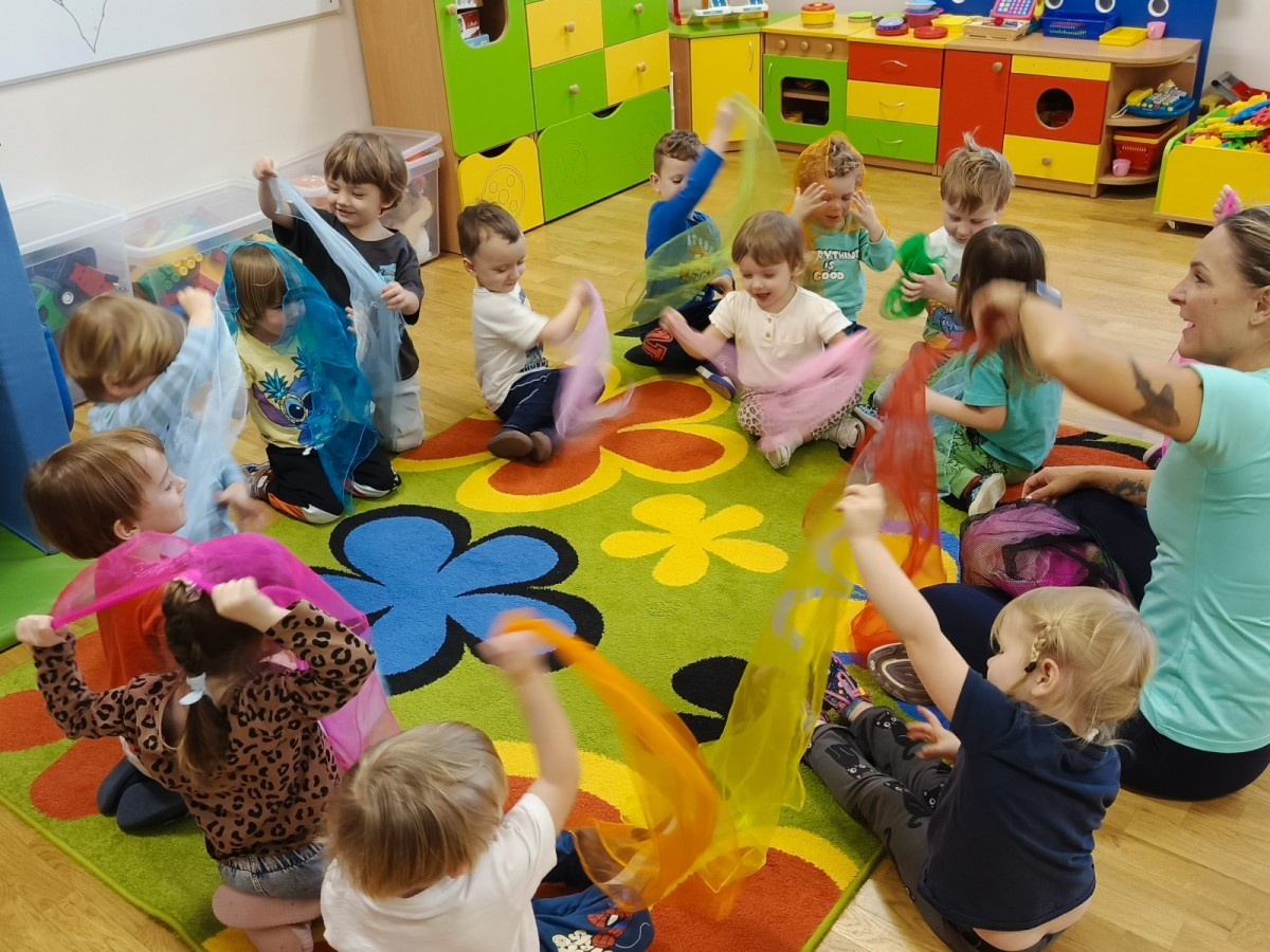 Za nami kolejne spotkanie w ramach zajęć Super Smyki. Tym razem "w roli głównej" kolorowe chustki.